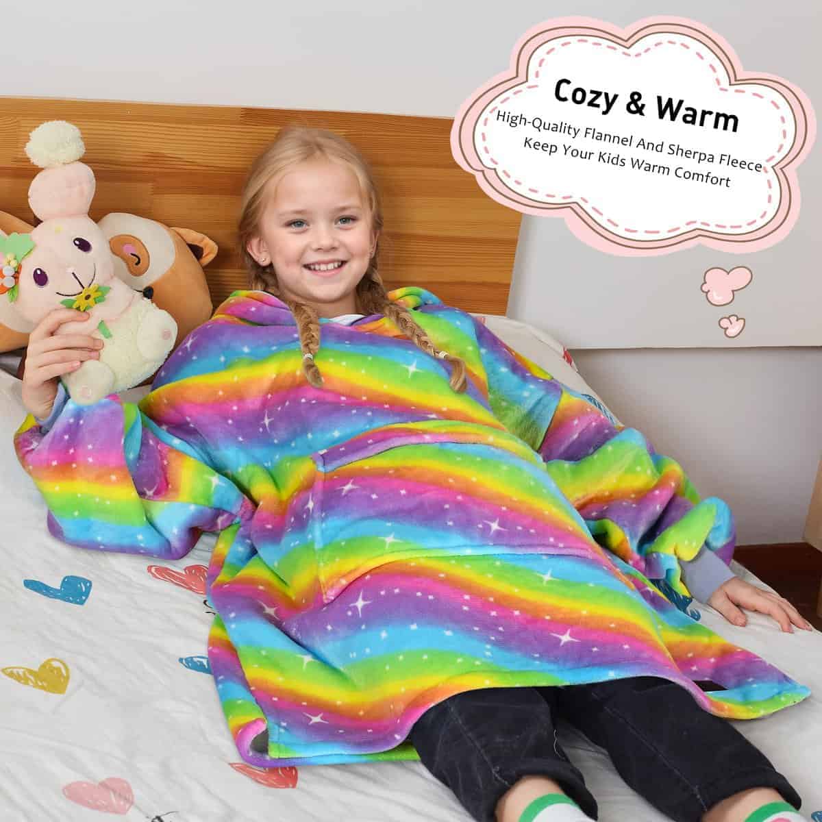 3. Regalo perfecto para todos los niños: Esta suave y acogedora manta gigante con capucha es el mejor regalo para todos los niños, sobrinos o sobrinas en cumpleaños, regreso a clases, graduación, otros festivales o cualquier ocasión especial. Está garantizado que traerá una sonrisa instantánea. ¡Les encantará!.