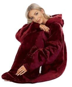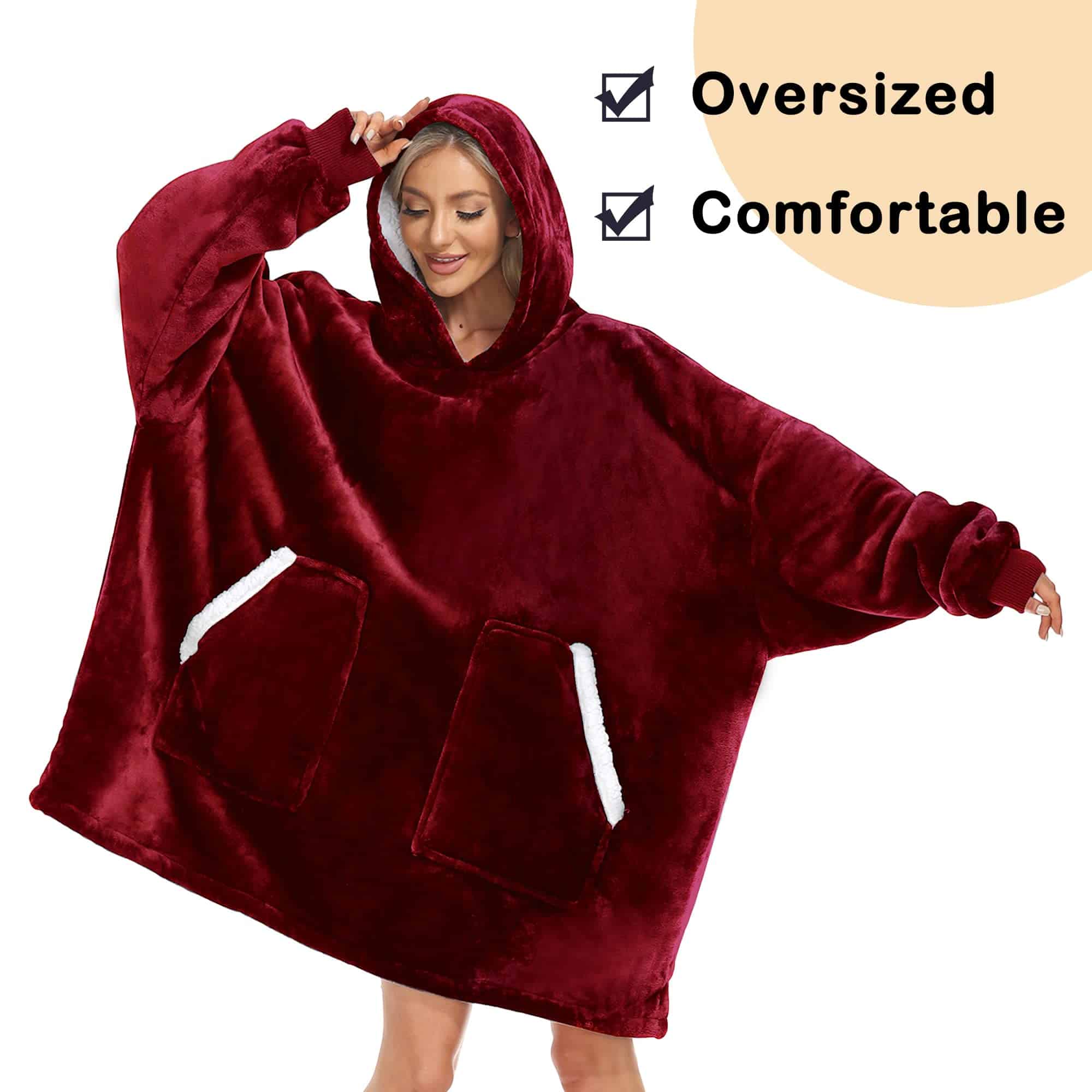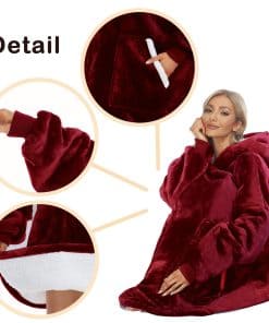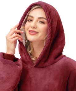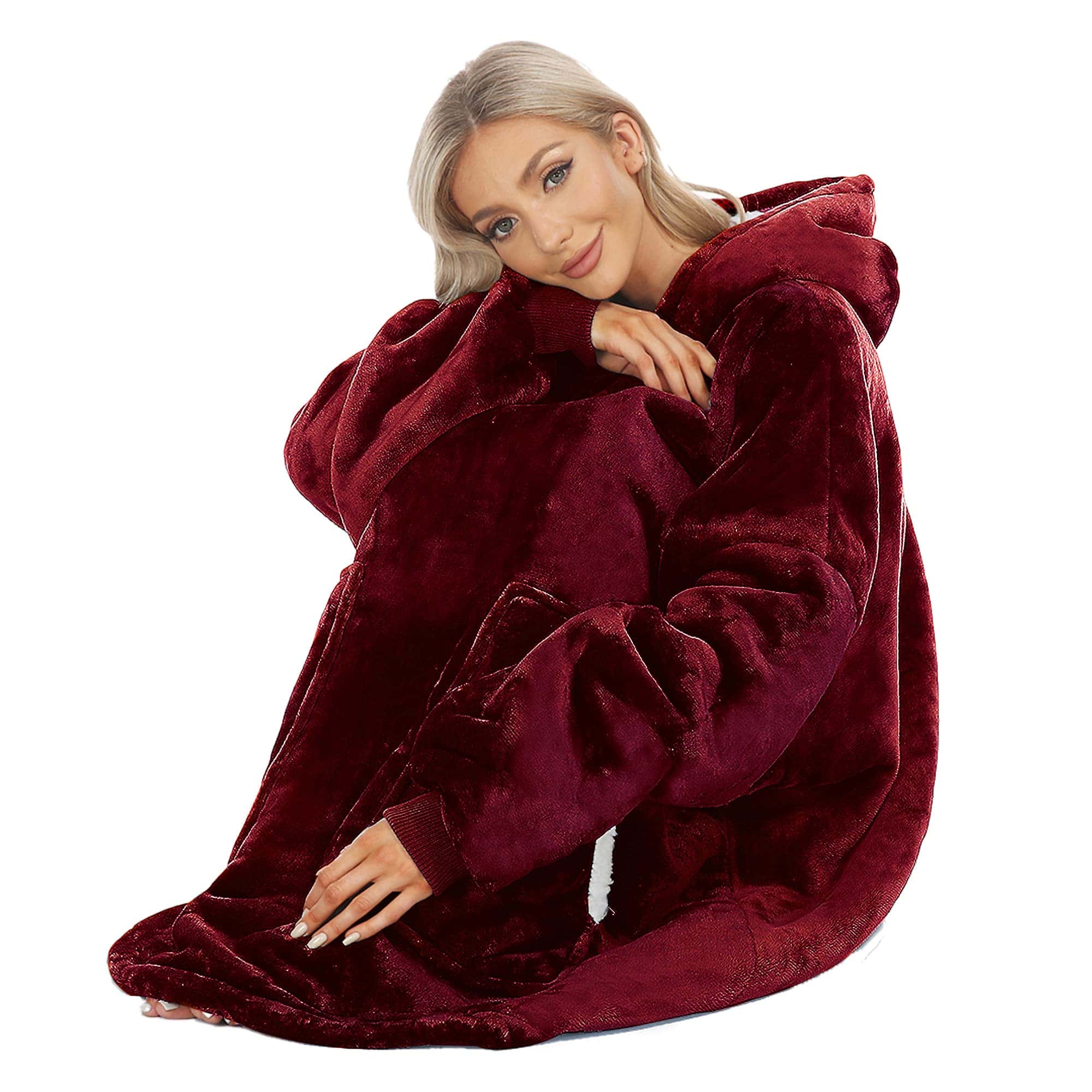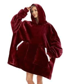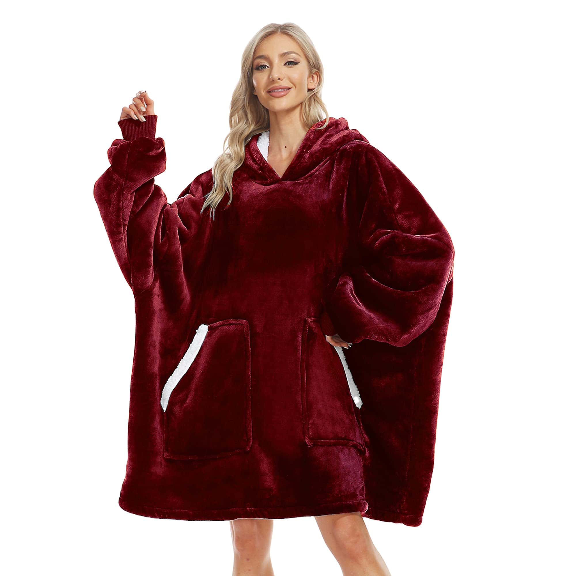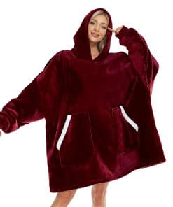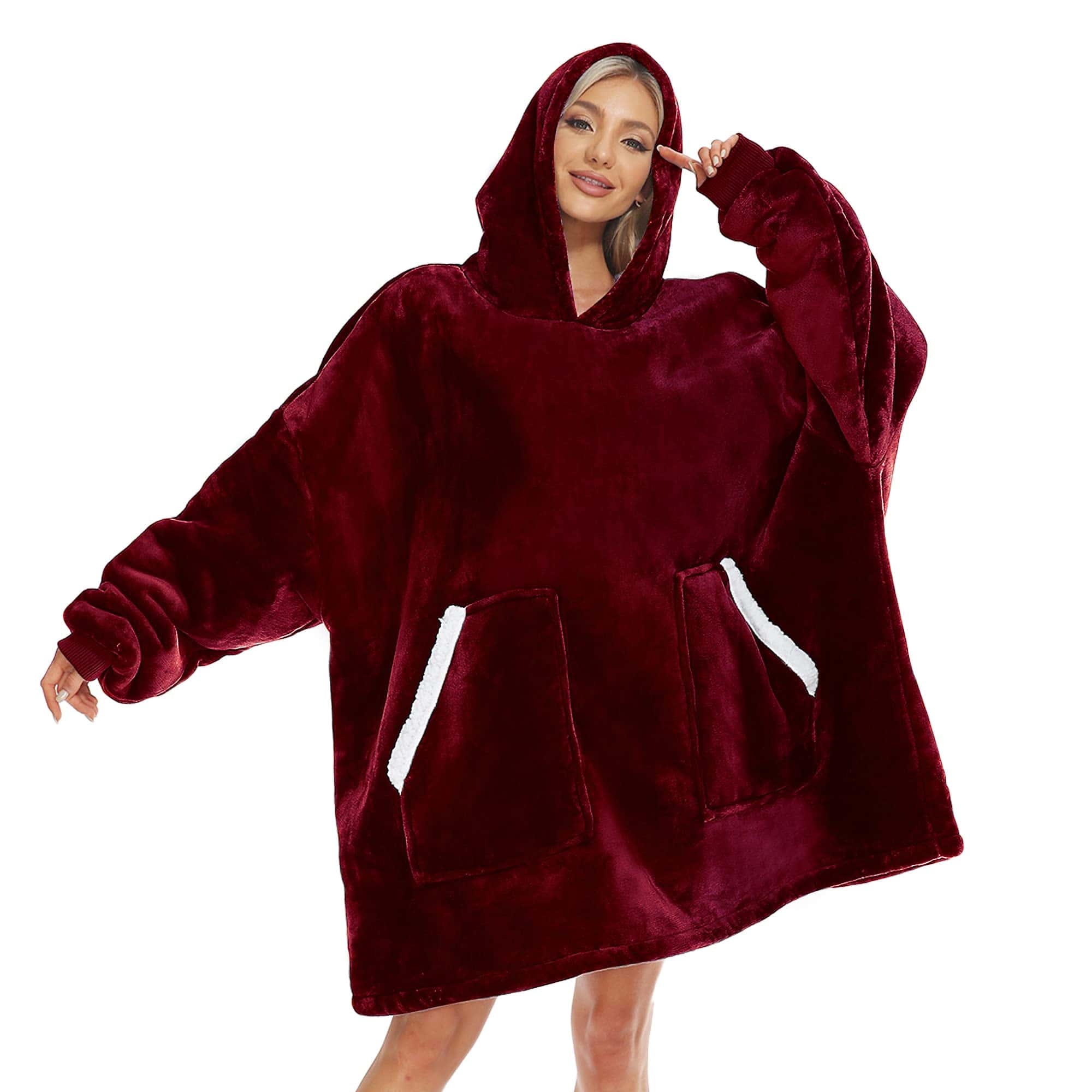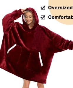 1. Manta gruesa con capucha cálida: Esta manta con mangas largas y 2 bolsillos gigantes utiliza un sherpa de alta calidad y súper suave que te mantendrá acogedoramente cálido en los días fríos.