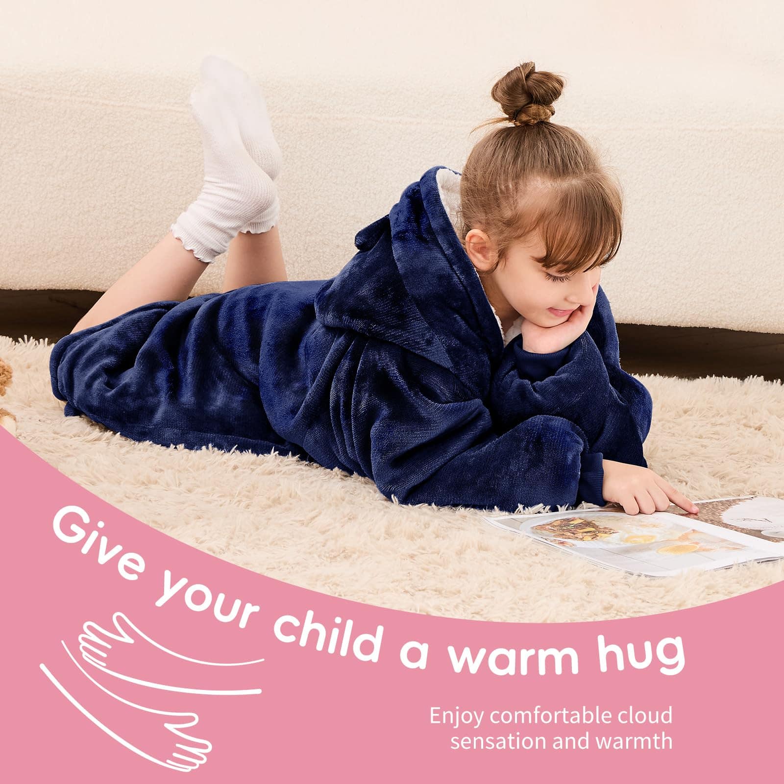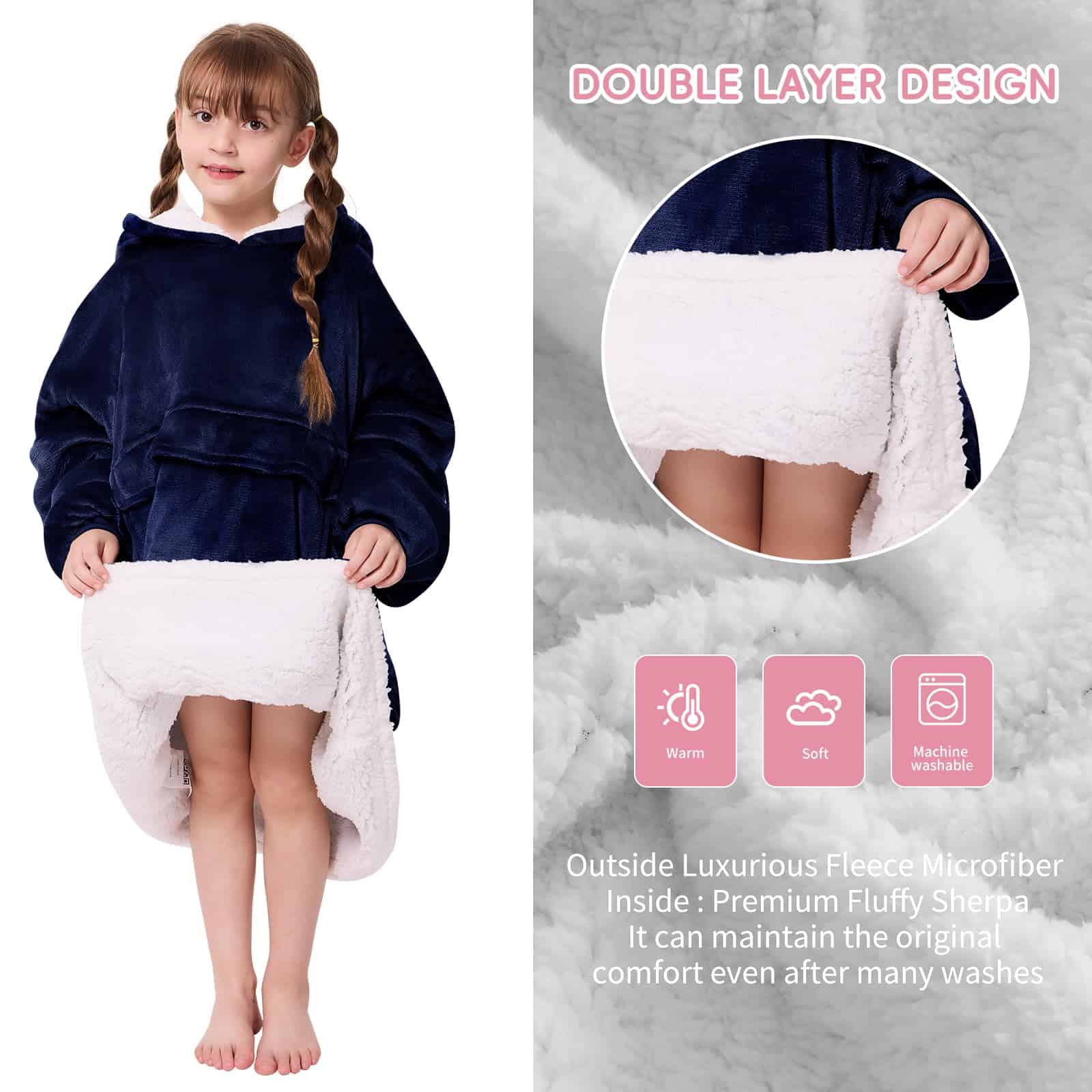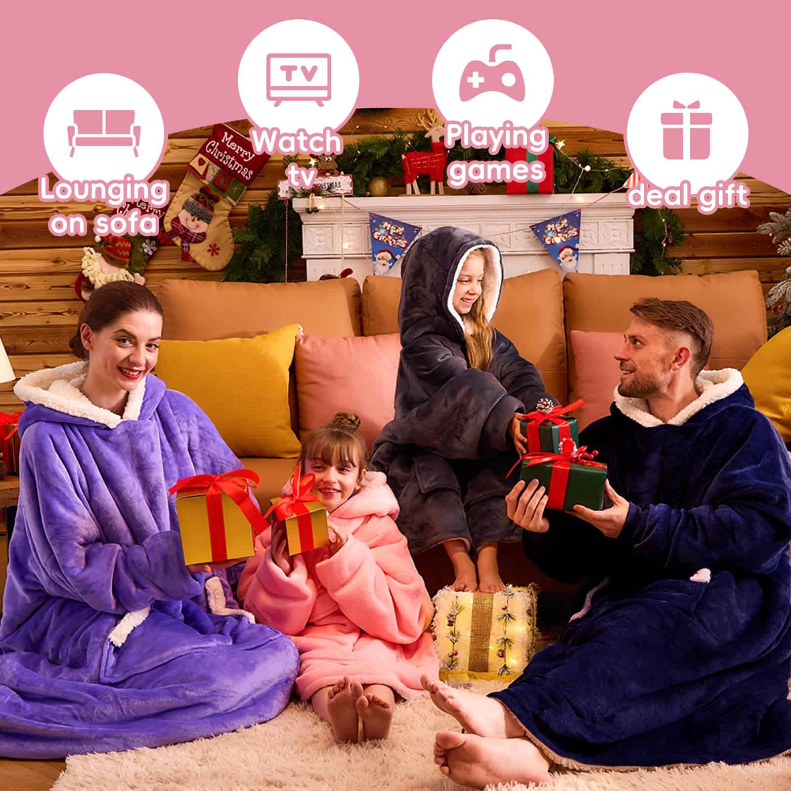 Yescool Kids Blanket hoodie es una manta wearable con capucha ideal para niños de 8 a 15 años. Es el regalo perfecto para cumpleaños, holidays, Navidad, Día del Niño, Día de Acción de Gracias, Pascua, regalos de equipo, temporada de fútbol, Año Nuevo, bodas, aniversarios, regalos de regreso a clases y graduación. Esta manta con capucha tipo sudadera mantendrá a tus hijos calientes en invierno mientras les permite seguir usando sus manos libremente. Con costuras ajustadas y durables, es perfecta para niños enérgicos. La manta es lo suficientemente grande como para cubrir completamente los cuerpos de los niños en el sofá o permitirles dormir cómodamente en ella. El diseño incluye premium flannel y forro de sherpa pesado para una calidez superior. La sudadera manta tiene mangas y un bolsillo frontal gigante para mayor comodidad, y su cuello grande facilita que los niños se la quiten sin problemas. Fácil de cuidar, se puede lavar a máquina en frío y secar en secadora a fuego lento. Disponible en varios colores, elige la que más le guste a tus hijos. ¡Les encantará su nueva manta con capucha sudadera!