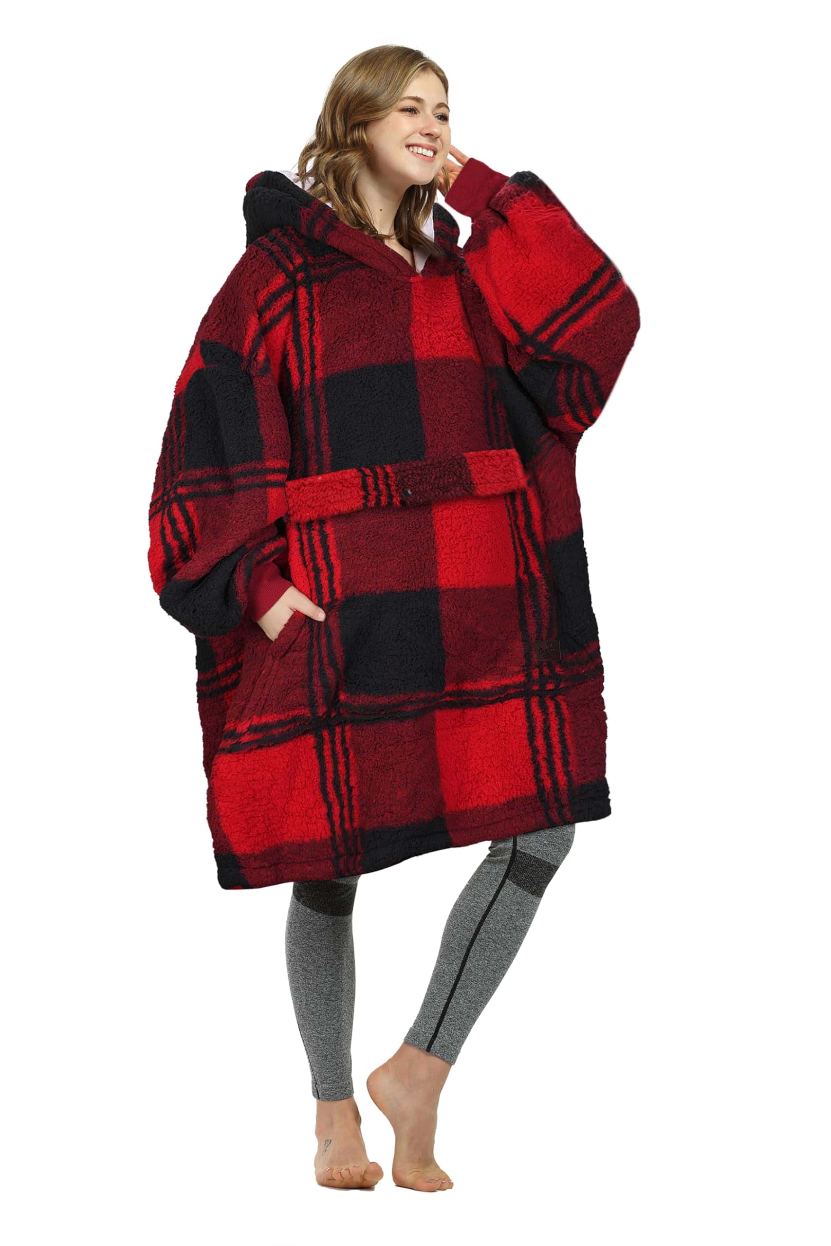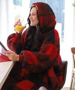 Manta con capucha tipo suéter en cuadros rojos Cataluña,