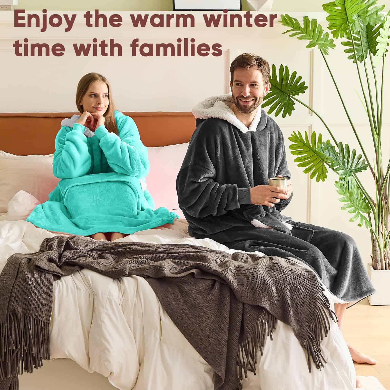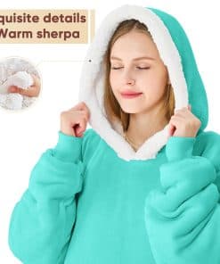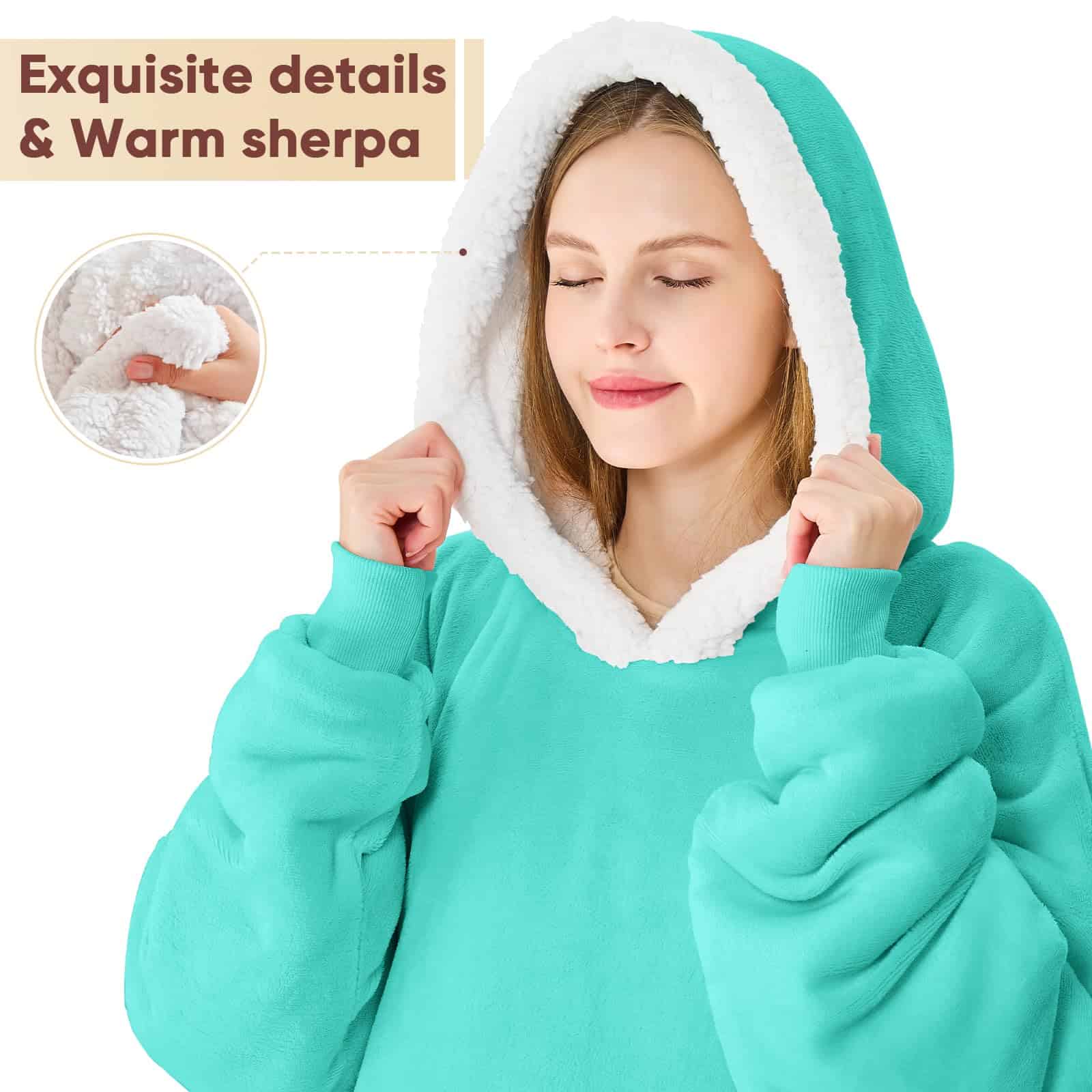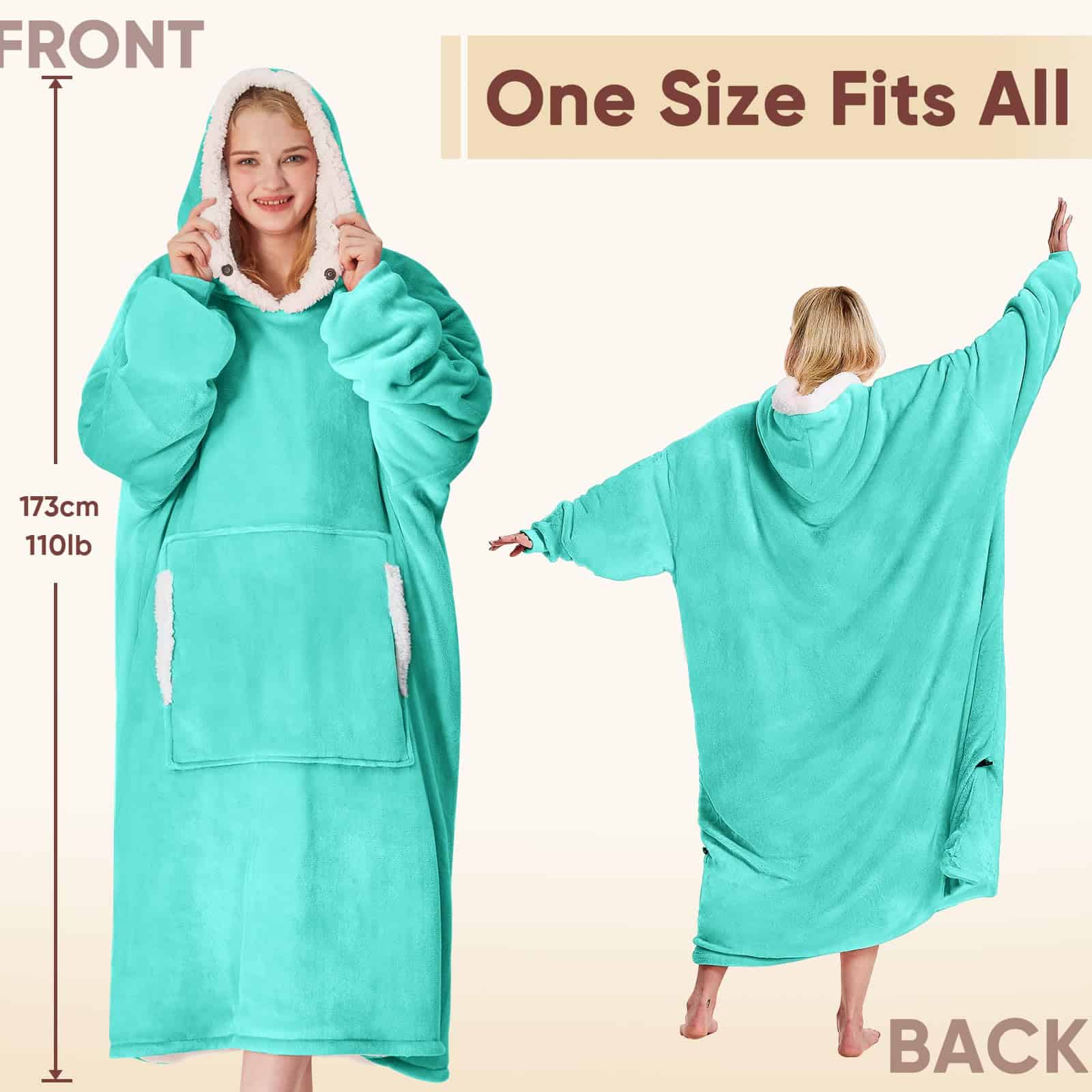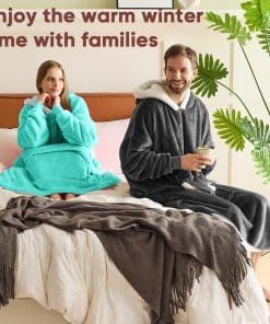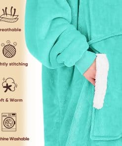 1. FÁCIL DE VESTIR Y SUDADERA CÁLIDA: ¿Estás cansado de ponerte varias capas de ropa en una mañana de invierno? ¿Te quejas a tus amigos de que el frío te impide levantarte temprano? La manta con capucha extragrande que te permite vestirte rápidamente y calienta tu cuerpo en segundos te dará la respuesta. La sudadera con manta con forro de franela te brinda un toque suave, la manta con capucha de 200 GSM sherpa es lo suficientemente cálida como para ser como un edredón calefactor móvil para ayudarte a atravesar el clima frío.