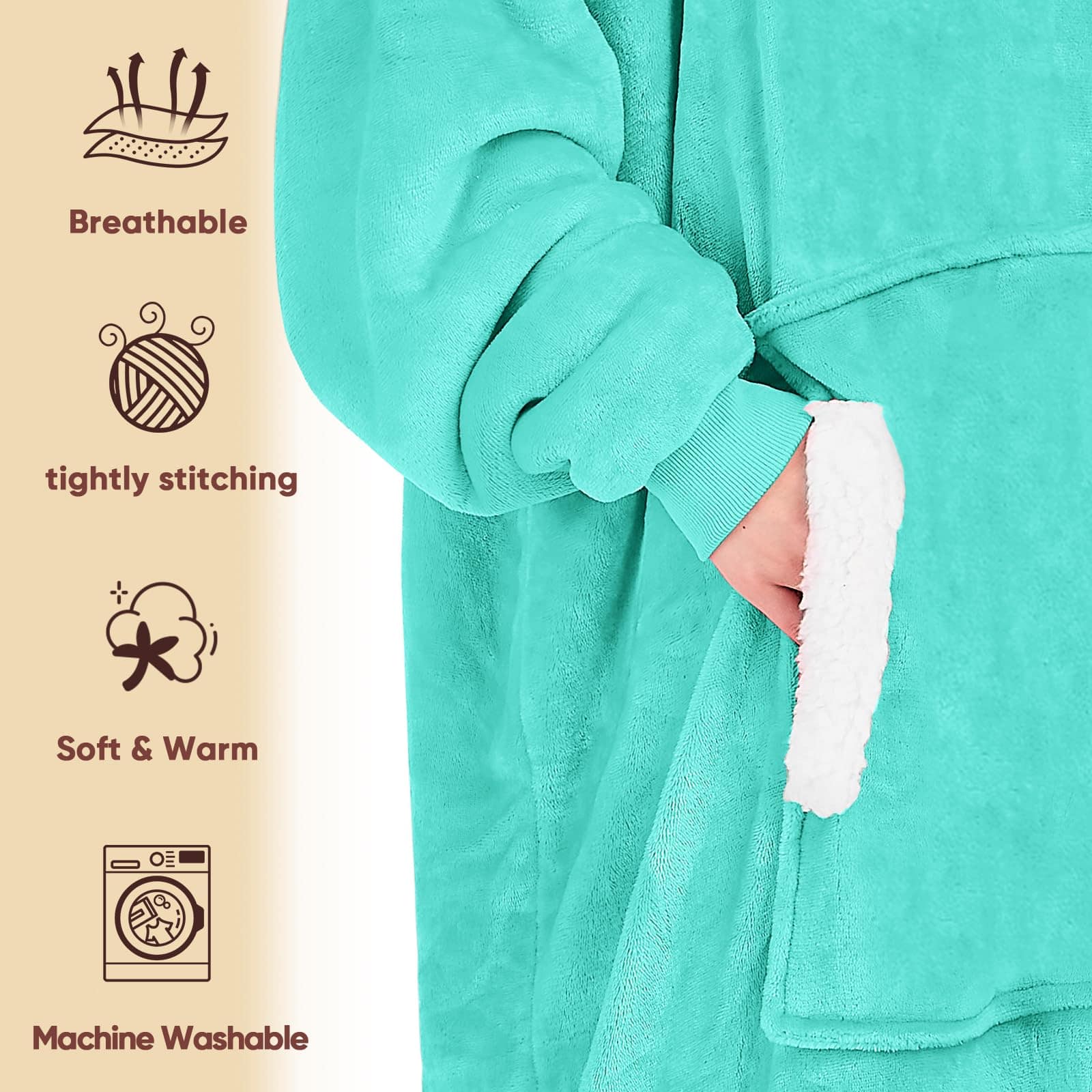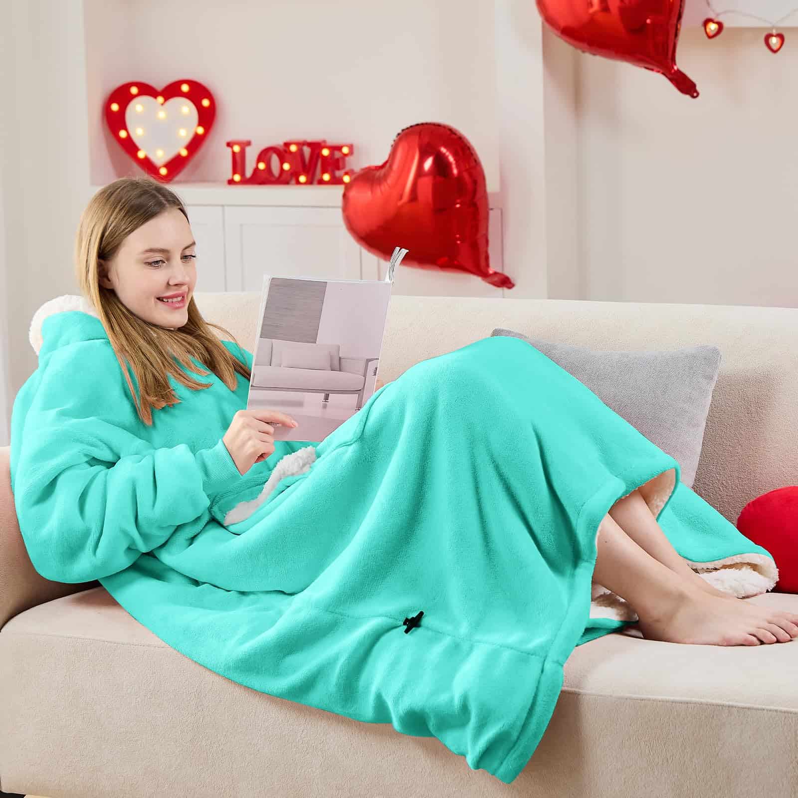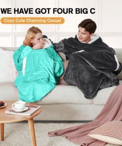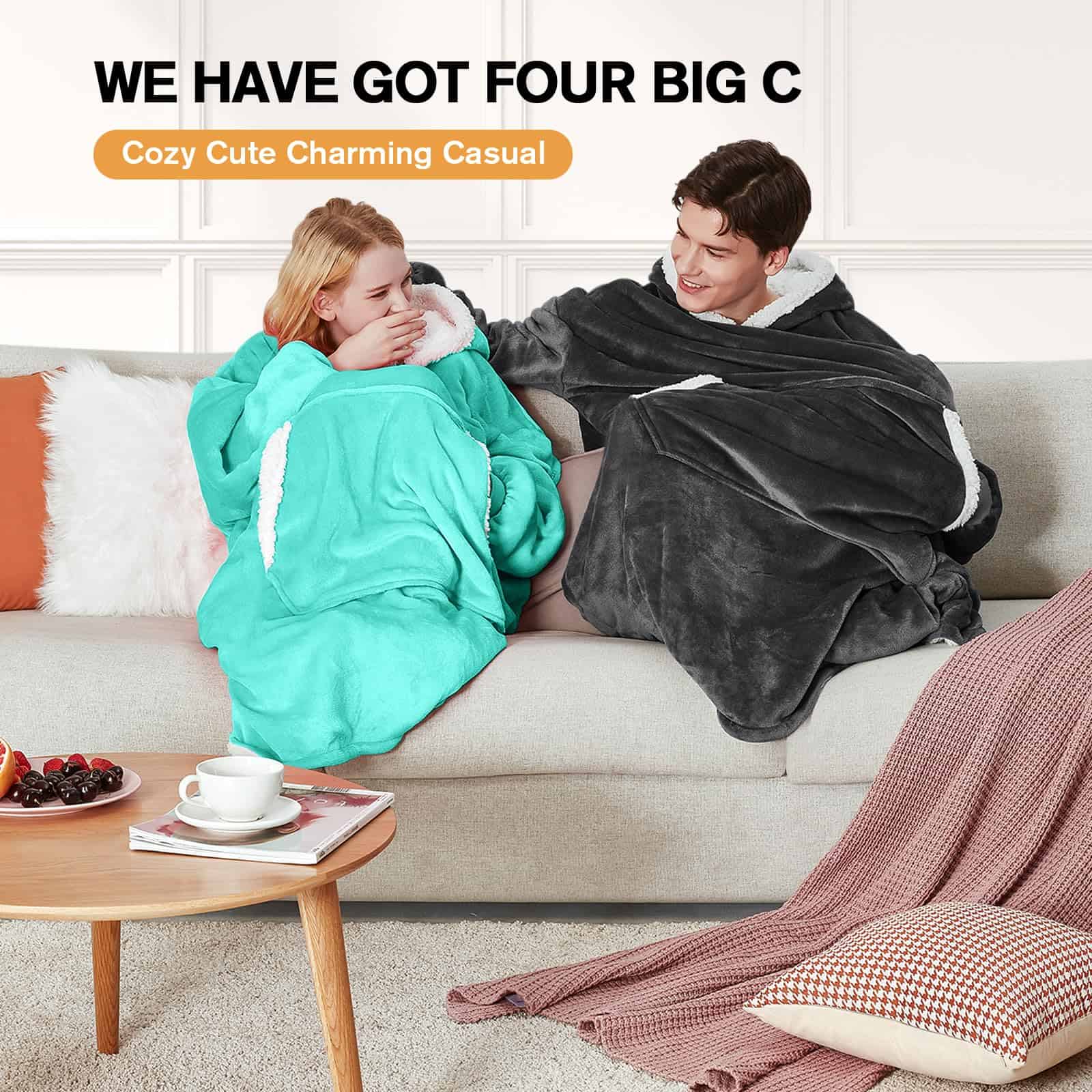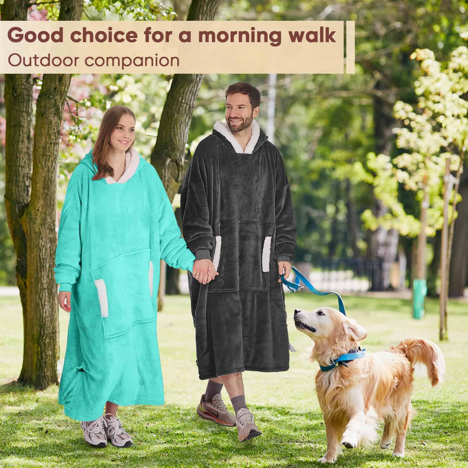1. FÁCIL DE VESTIR Y SUDADERA CÁLIDA: ¿Estás cansado de ponerte varias capas de ropa en una mañana de invierno? ¿Te quejas a tus amigos de que el frío te impide levantarte temprano? La manta con capucha extragrande que te permite vestirte rápidamente y calienta tu cuerpo en segundos te dará la respuesta. La sudadera con manta con forro de franela te brinda un toque suave, la manta con capucha de 200 GSM sherpa es lo suficientemente cálida como para ser como un edredón calefactor móvil para ayudarte a atravesar el clima frío.