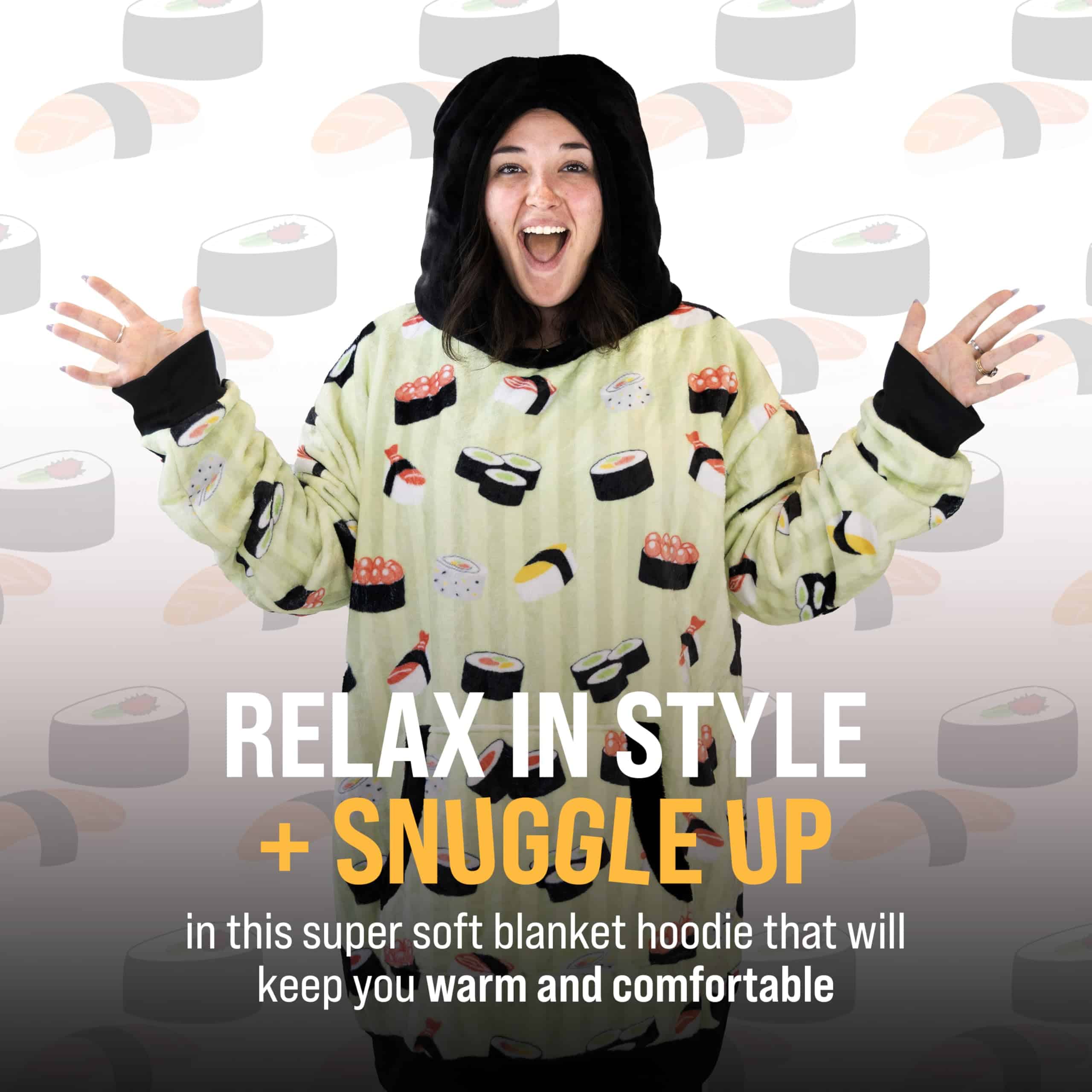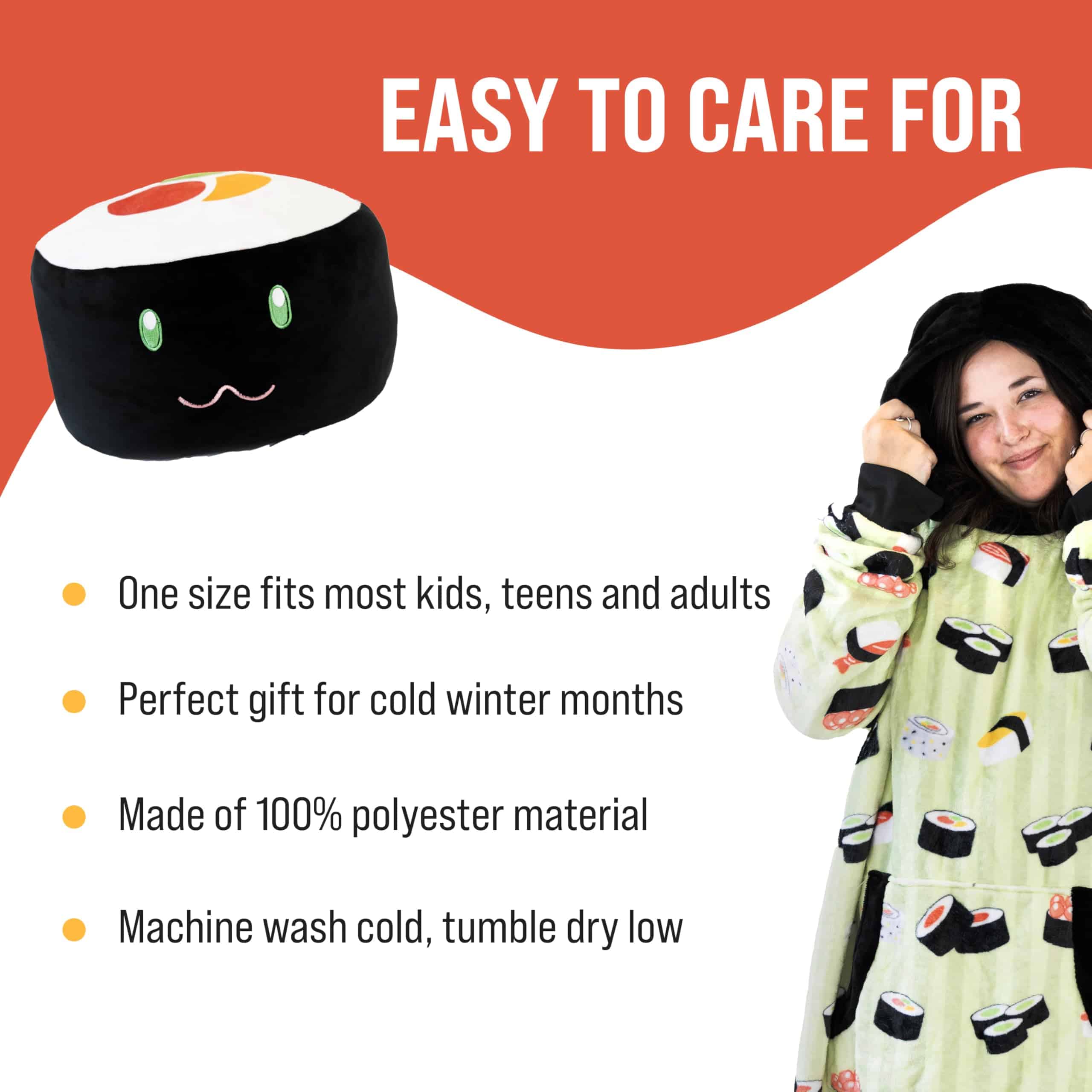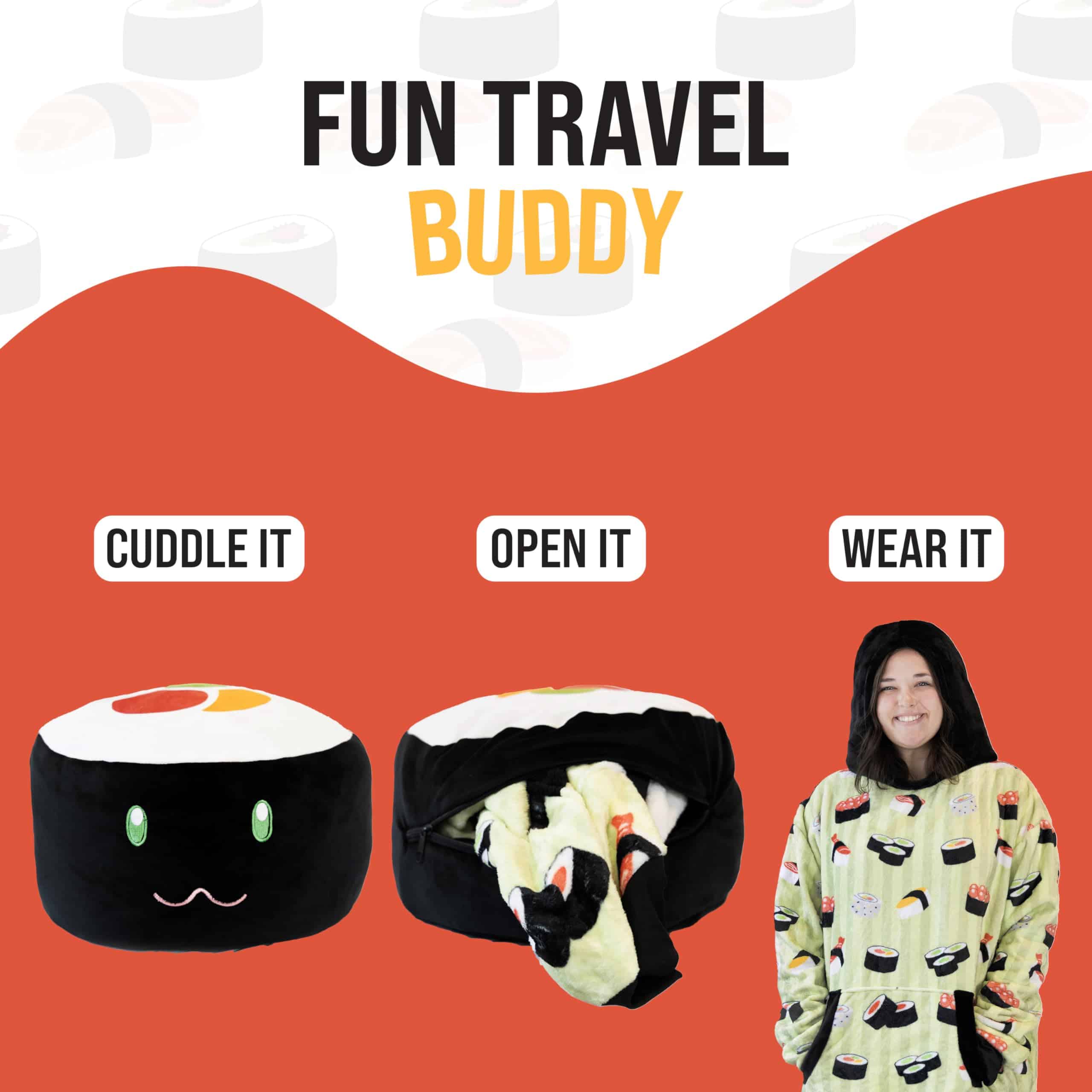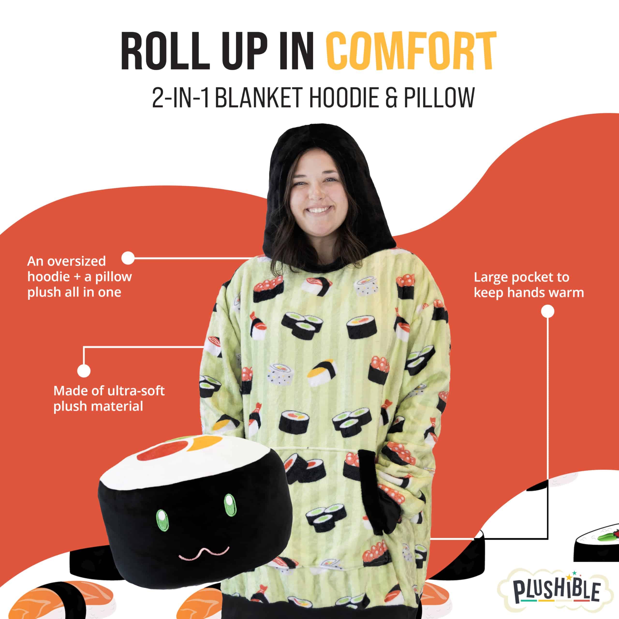 Manta con capucha y forma de sushi, Nori la Sushi, 2 en 1