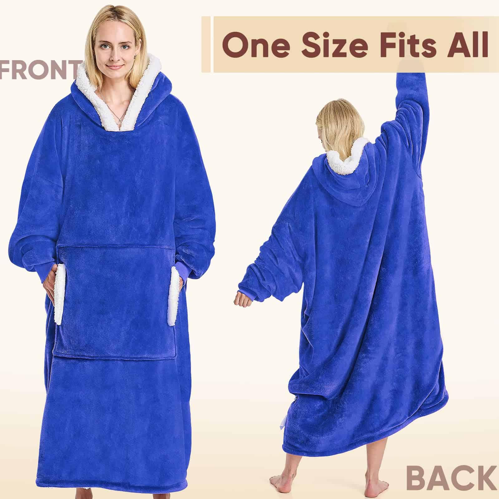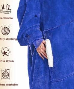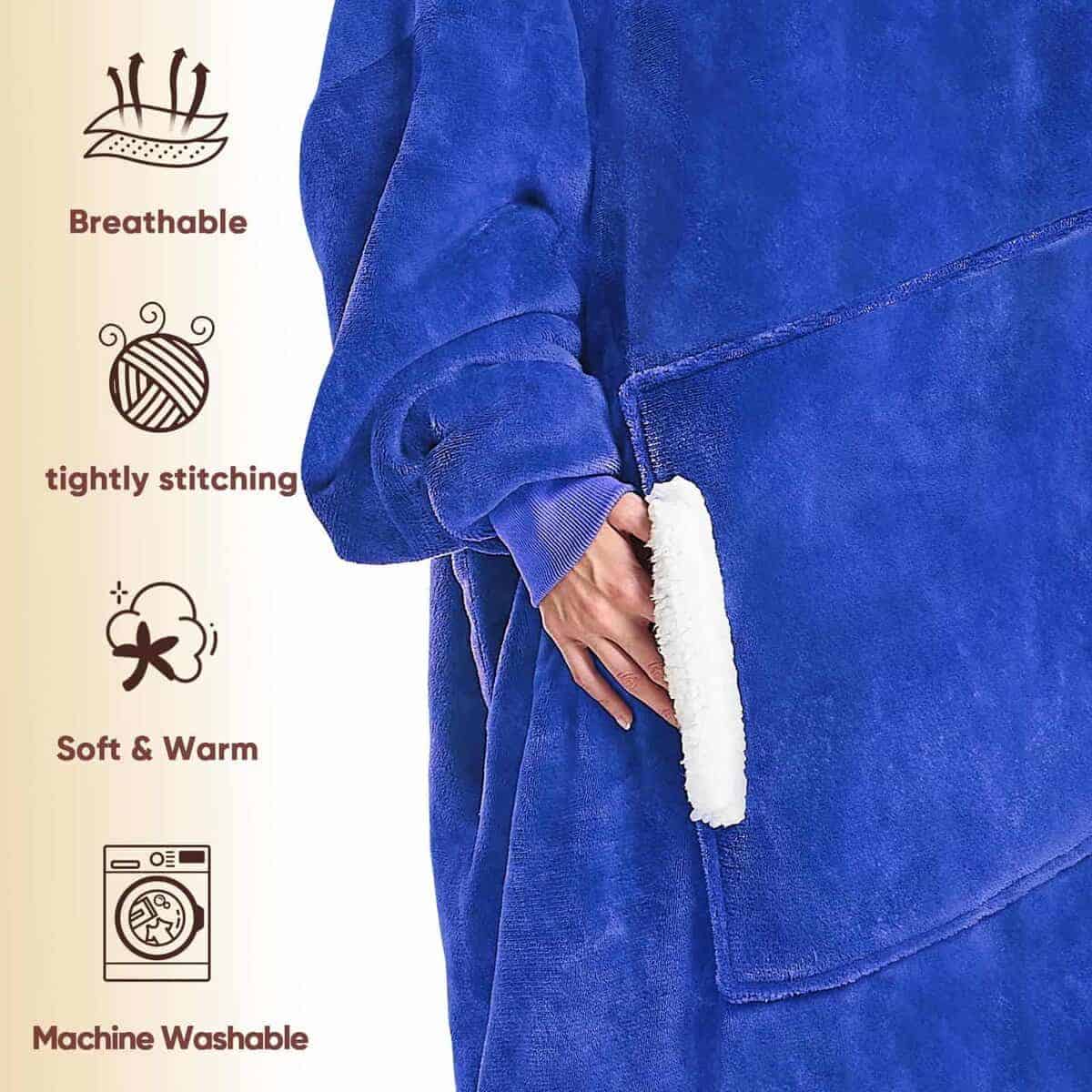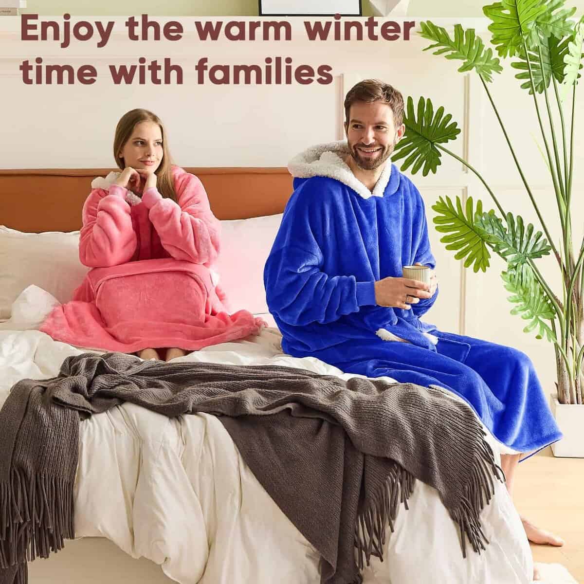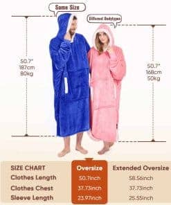 3. OVERSIZED & CUSTOMIZED HOODIE No te preocupes por el tamaño de la manta wearable. Nuestro abrigo con capucha extragrande con un diseño personalizado es adecuado para ser una manta con capucha para adultos de casi todas las formas y tamaños. Disponible en rosa, azul marino, gris y verde azulado, puedes elegirlas para ti y tu familia. Además, la manta grande con una franja ancha de 30 a 35 pulgadas puede cubrirte por completo cuando doblas las piernas hacia un lado o tiras las rodillas hacia el pecho para sentarte en el sofá, brindando suficiente calor.