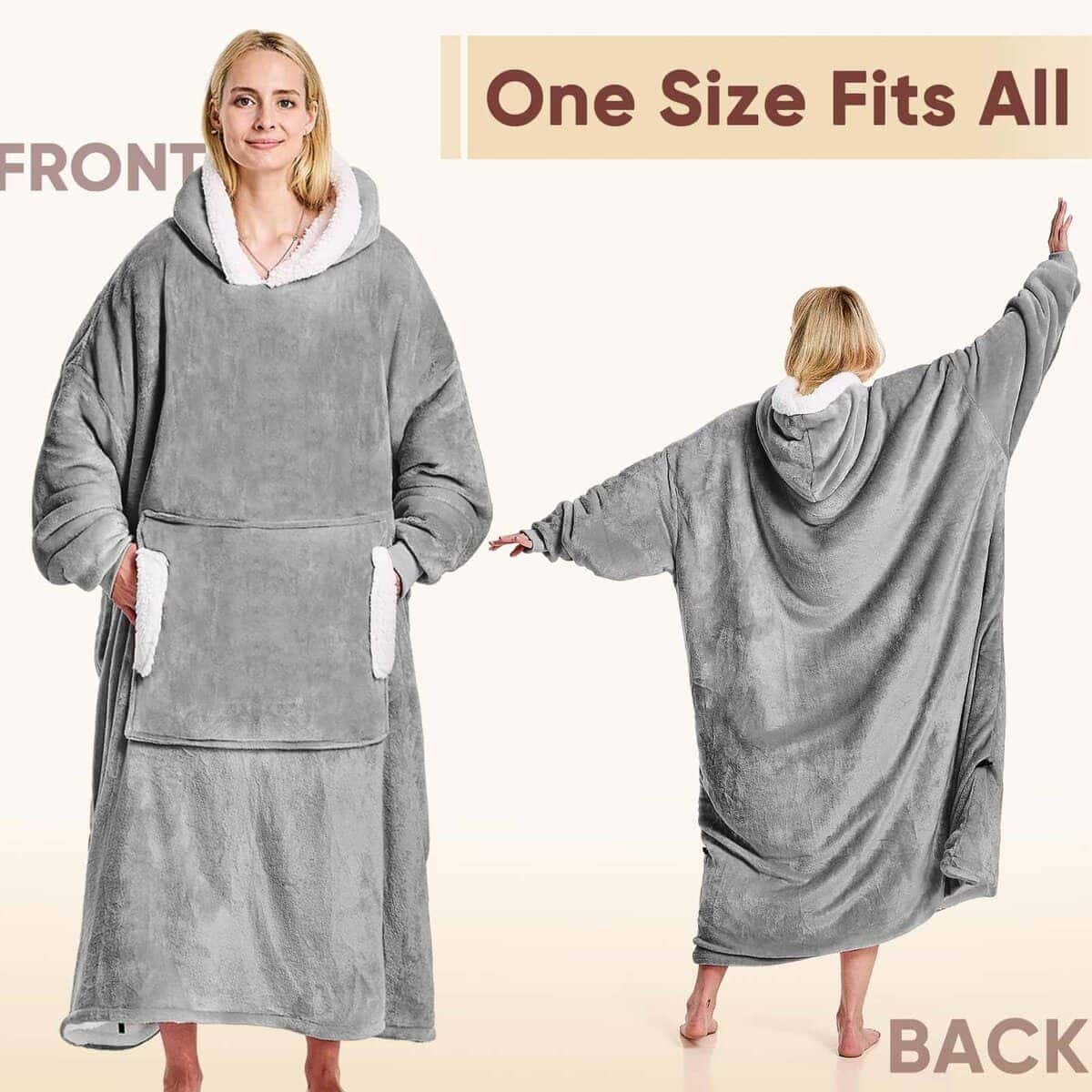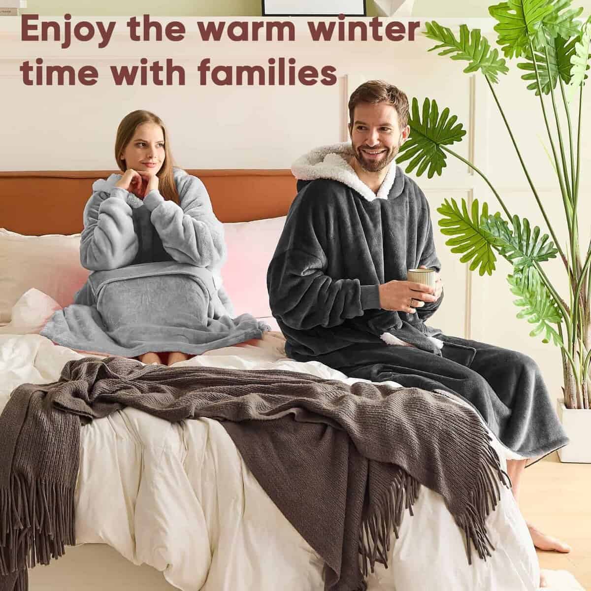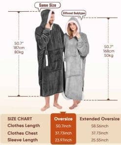 3. EXTRAGRANDE Y PERSONALIZADA SUDADERA: No te preocupes por el tamaño de la manta wearable. Nuestra sudadera extragrande con un diseño personalizado se adapta a ser una sudadera manta para adultos de casi todas las formas y tamaños. Disponible en rosa, azul marino, gris y turquesa, puedes elegirlos para ti y tu familia. Además, la manta con capucha grande con un dobladillo ancho de 30 – 35 pulgadas puede cubrirte por completo cuando doblas las piernas hacia un lado o tiras de las rodillas hacia el pecho para sentarte en el sofá, dándote suficiente calor.