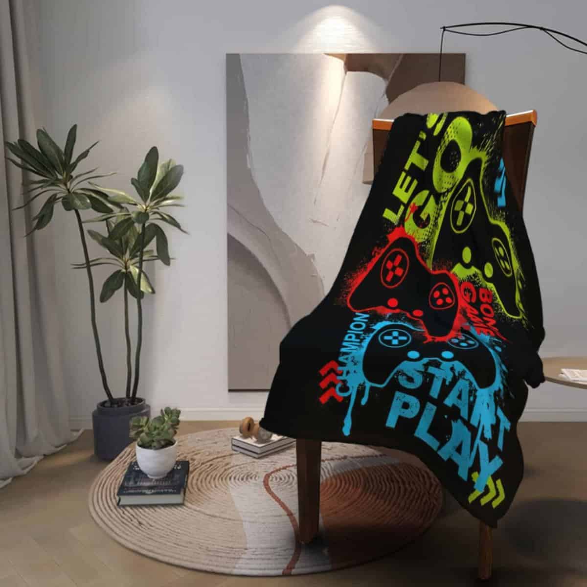 Ninguna habitación de juegos está completa sin esta excelente decoración, y esta manta de juegos para controlador encaja perfectamente. Combínala con pósteres de juegos, papel tapiz de juegos o incluso almohadas temáticas de juegos para crear el paraíso de juegos definitivo. Ya sea que estés decorando una habitación de juegos para un jugador, esta manta de controlador de juegos es un suministro indispensable.