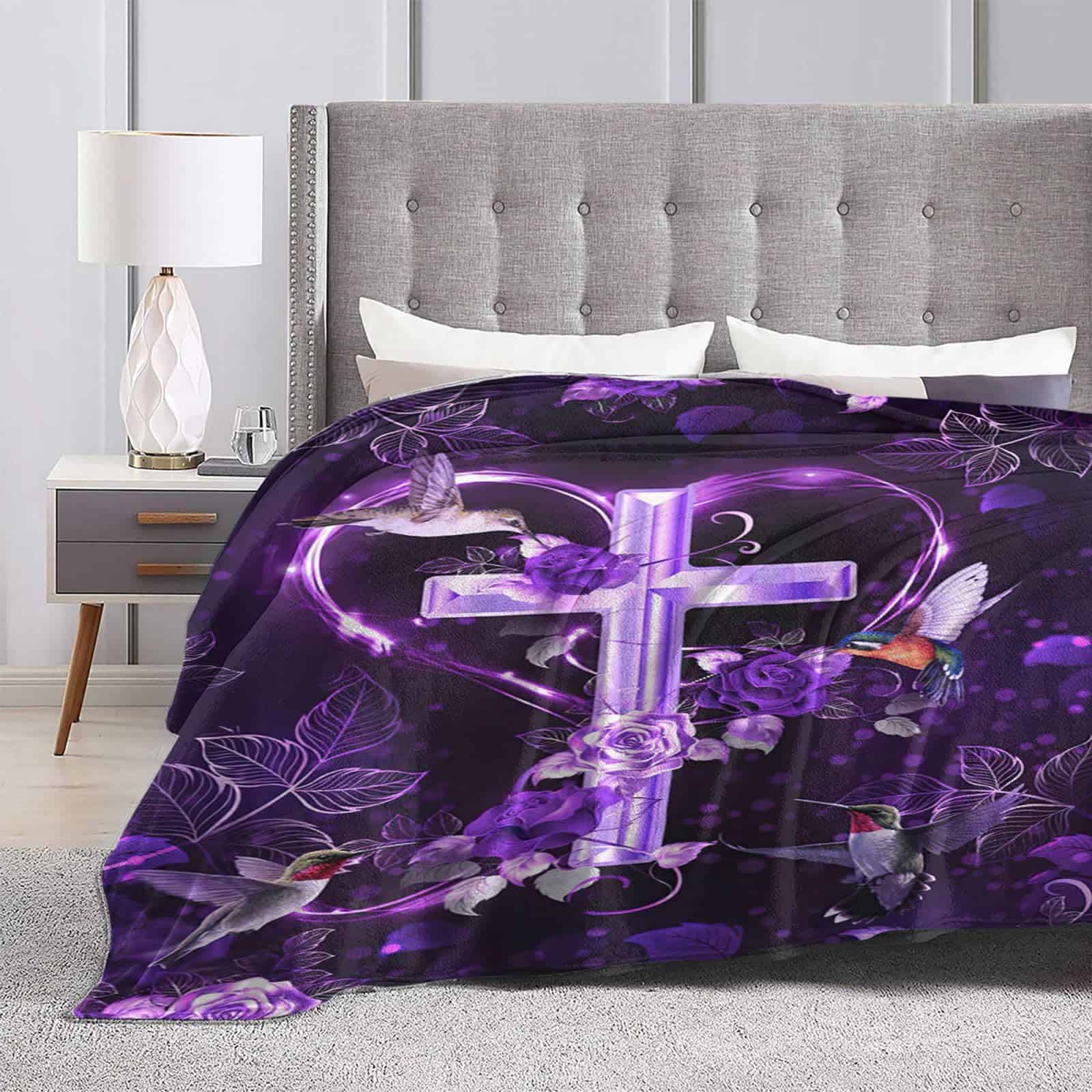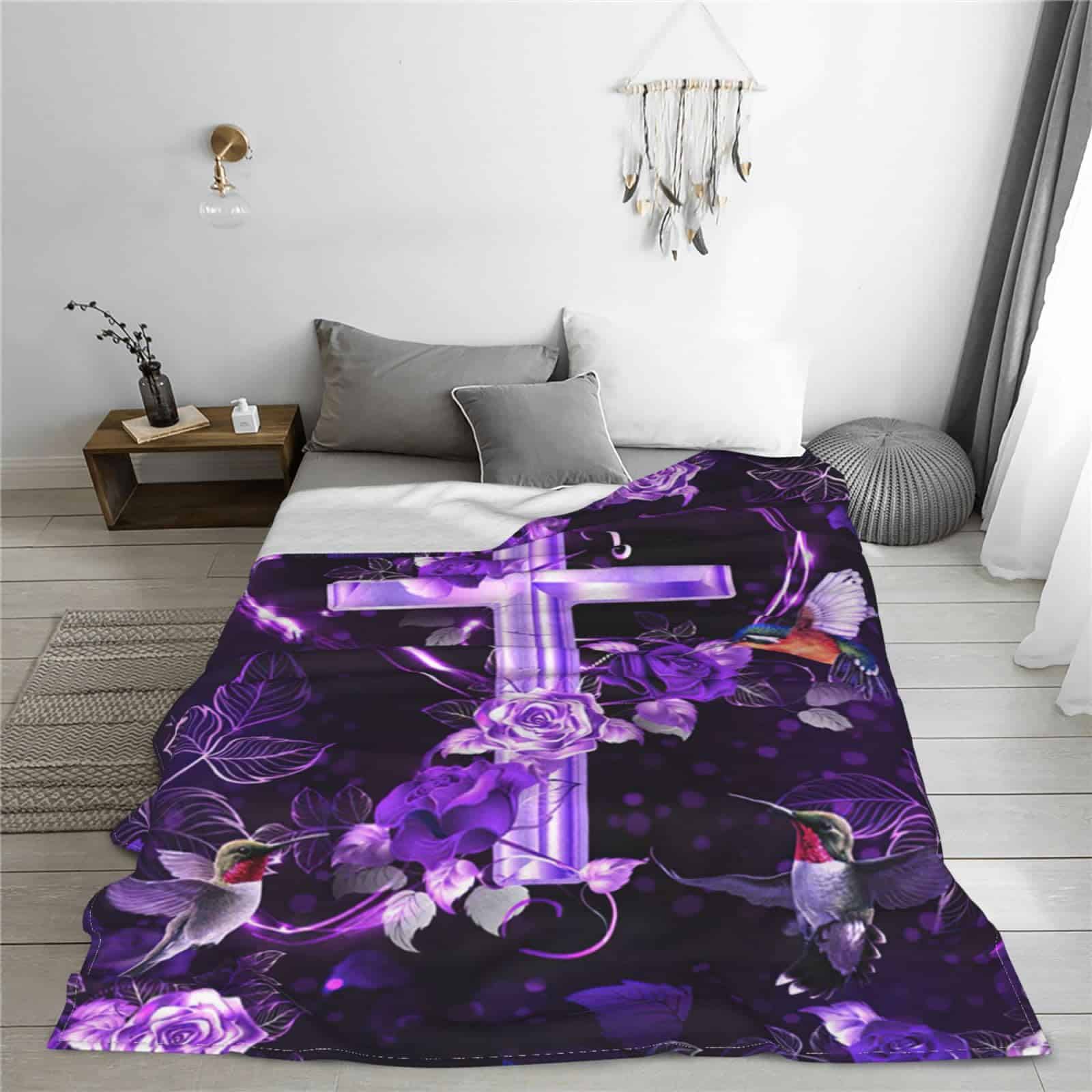 Manta Cruz Púrpura Decorativa Cristiana Religiosa de Fe con