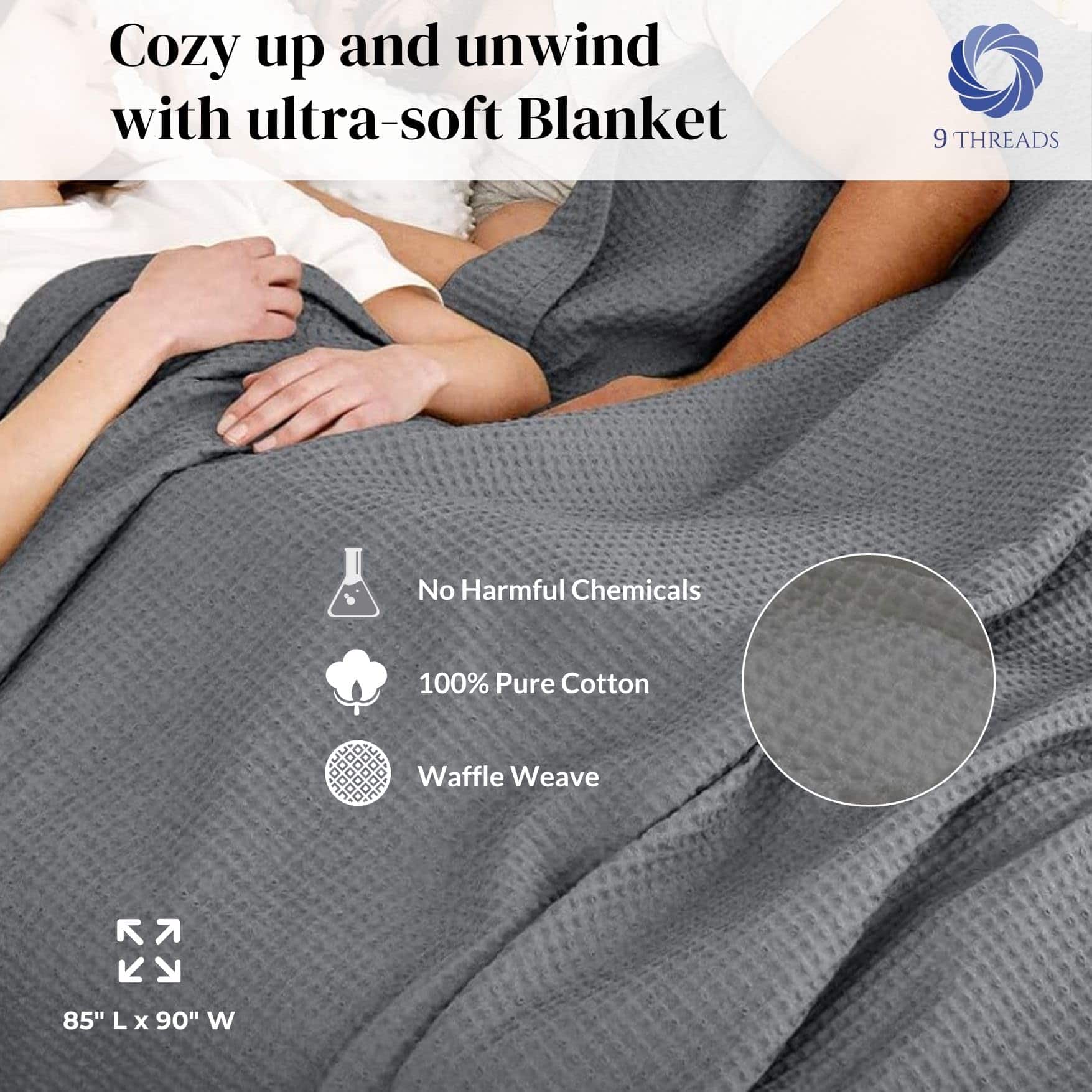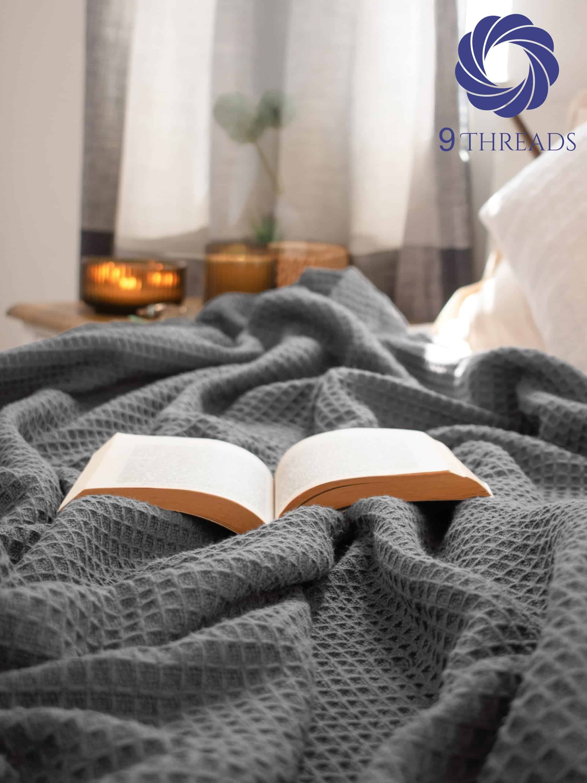 Manta de 100% algodón en color gris oscuro tejido en gofre