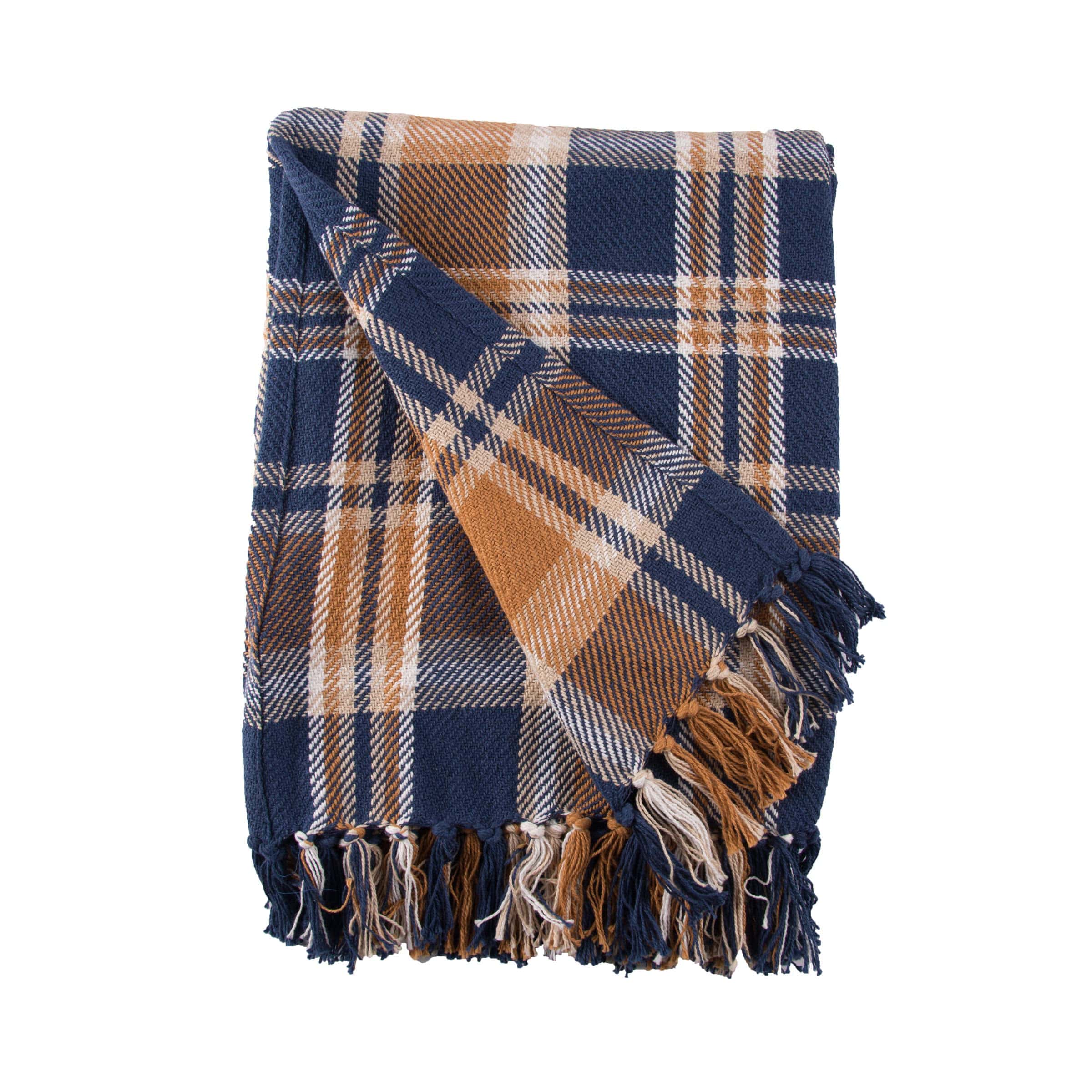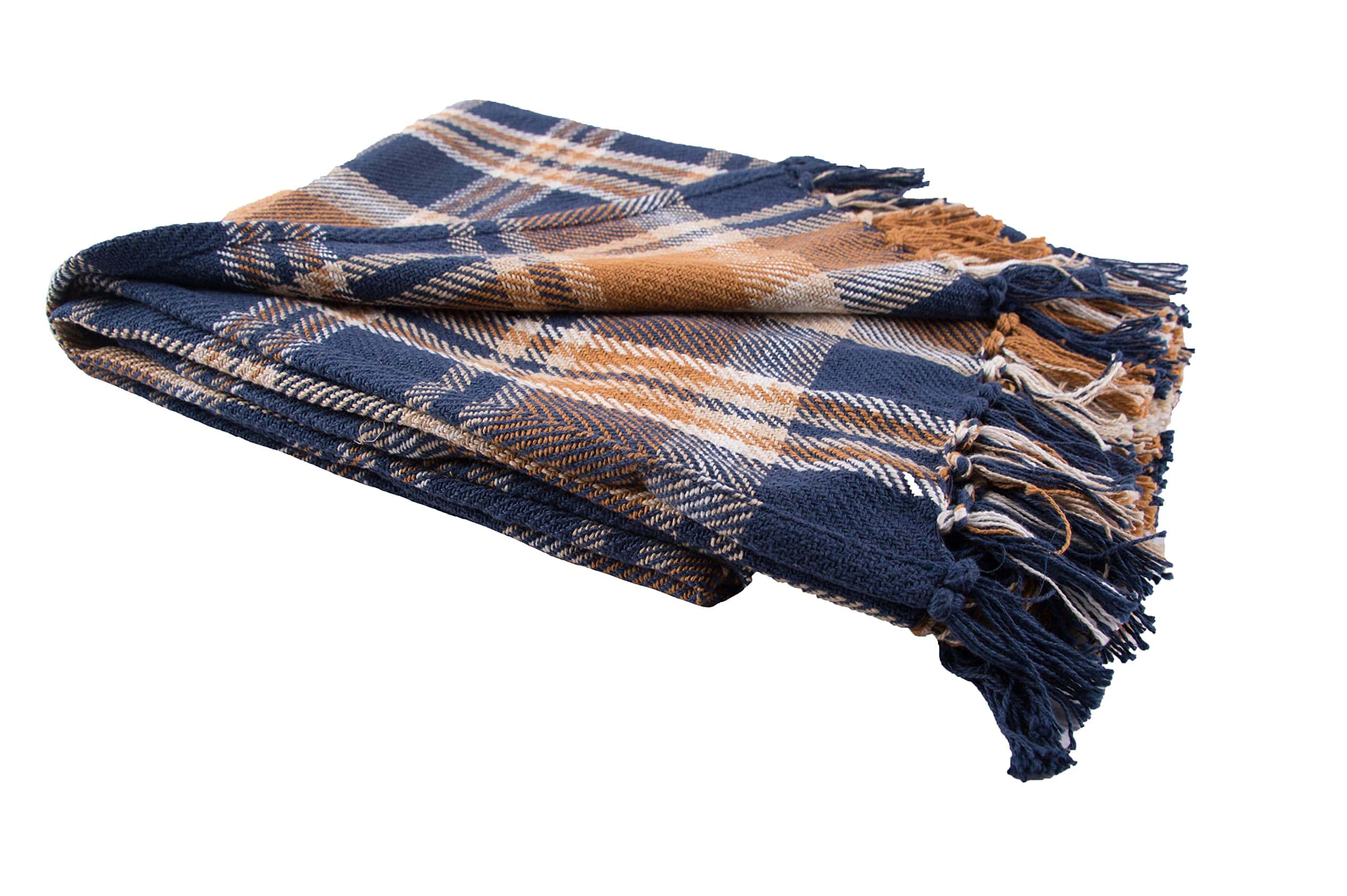 Manta de acento tejida a cuadros de 50″ x 60″ en azul