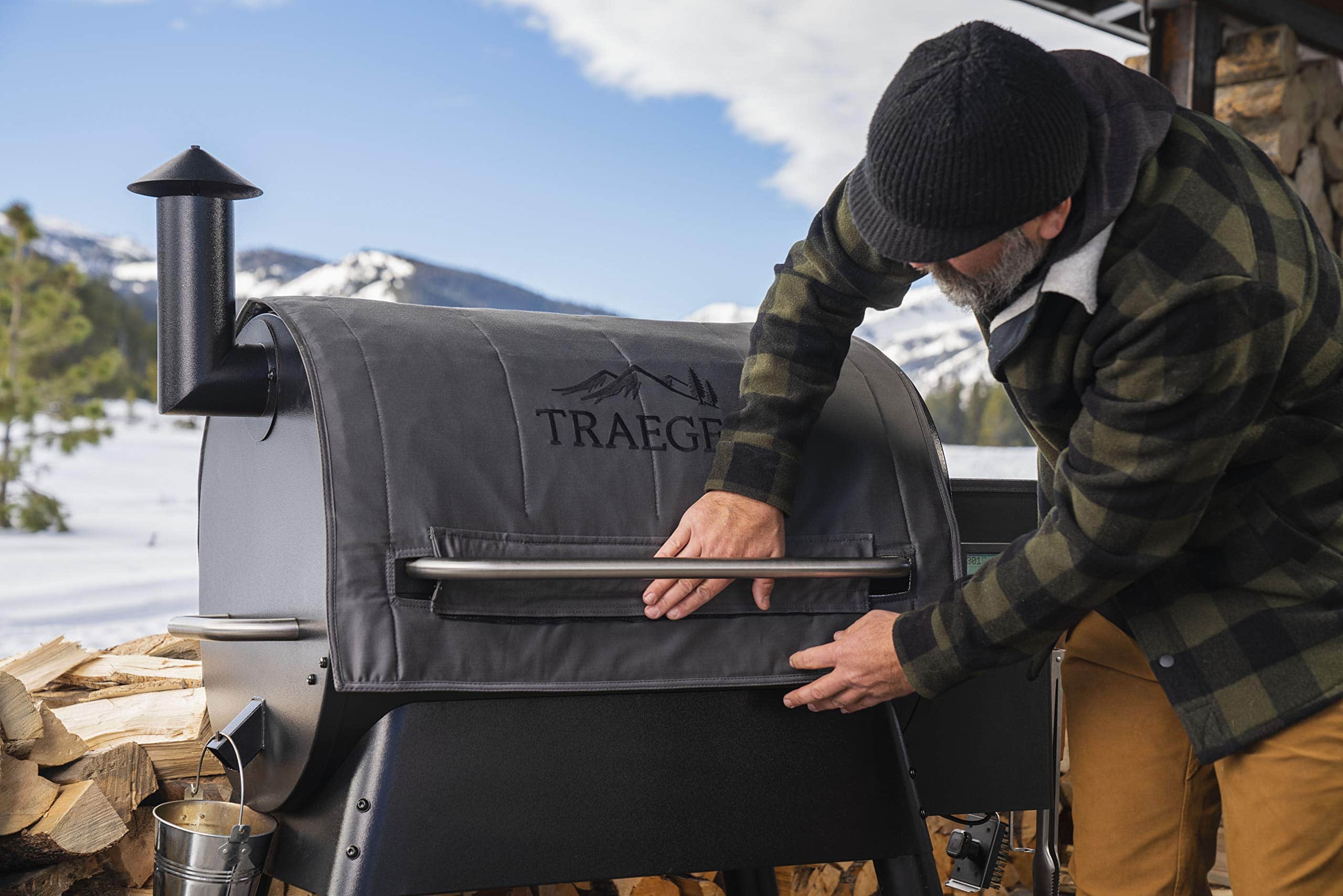 No es necesario dejar de asar a la parrilla cuando nieva, simplemente coloca la Manta de Aislamiento para Parrilla para mantener tu parrilla Traeger funcionando eficientemente durante todo el invierno. Proporciona protección contra el frío para mantener temperaturas consistentes y reducir el consumo de pellets.