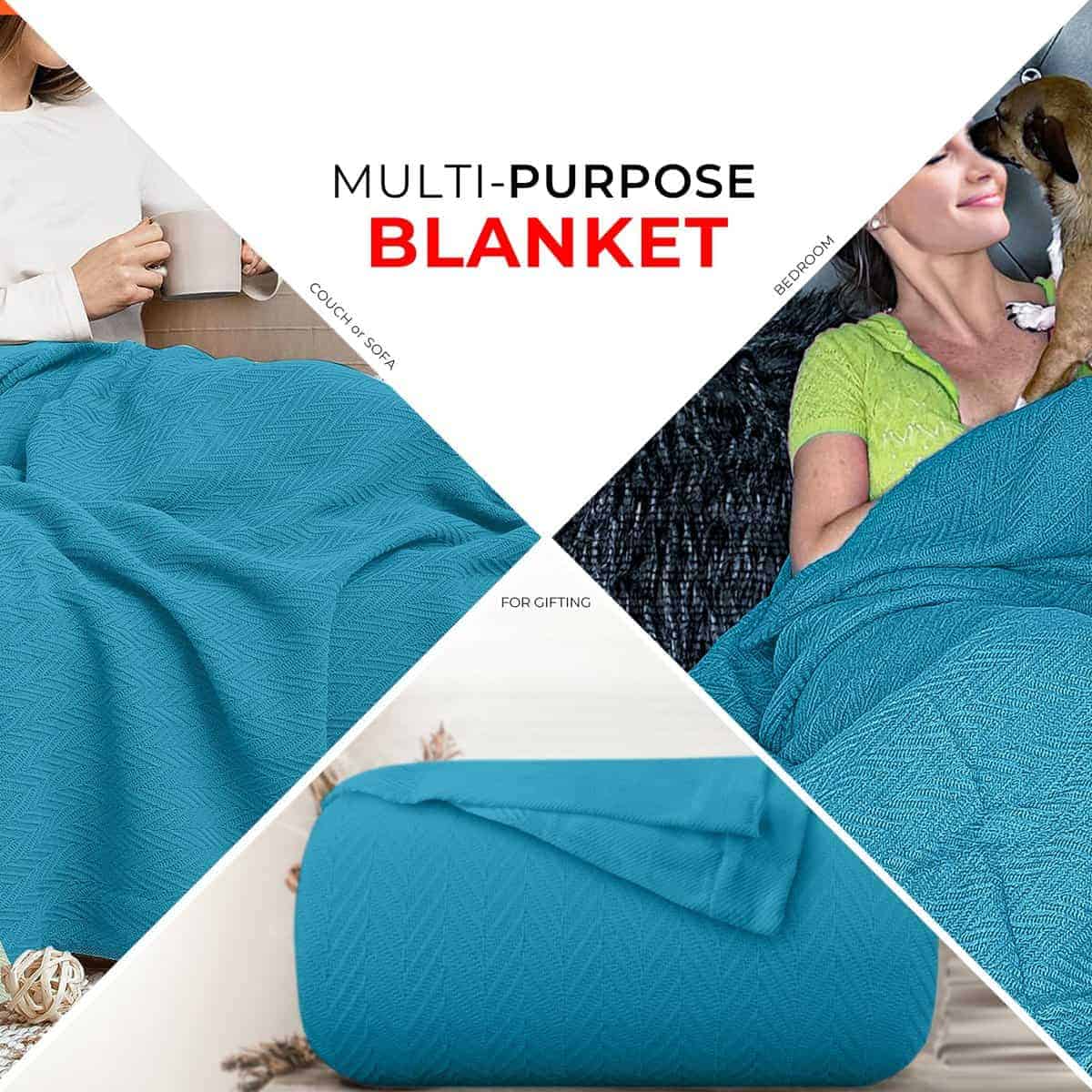 3. Manta de tejido en espiga de algodón 100%: Estas mantas tamaño twin / twin xl están tejidas con un diseño único de tejido en espiga con una textura tridimensional distintiva para aquellos que prefieren una calidad premium y lujo con distinción. Coche, sofá o dormitorio, esta elegante y perfecta manta de peso puede ser usada en cualquier lugar en cualquier momento.