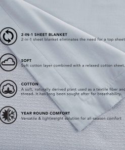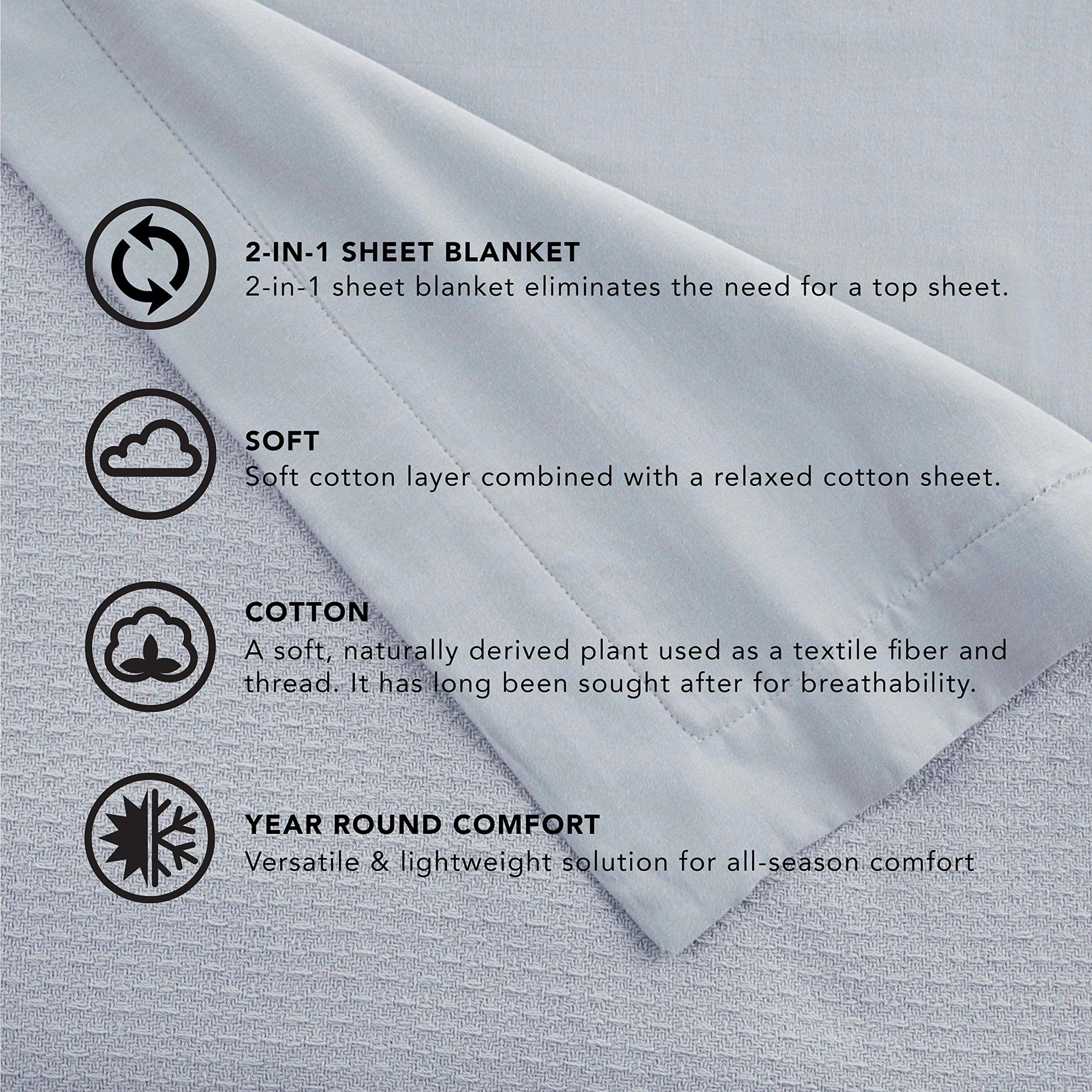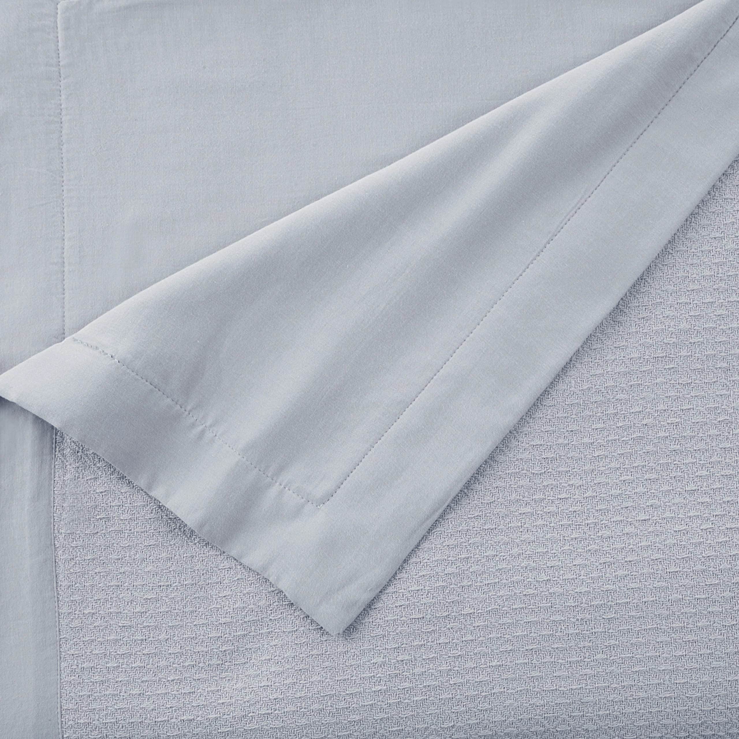 Disfrute de la conveniencia de una sábana suave superpuesta con una manta. La Manta de Hoja Vellux es versátil y ofrece cobertura ligera para aquellos que prefieren dormir sin sábana superior. Úsela como una capa adicional en su cama, o úsela en lugar de un edredón durante los meses más cálidos. Hecha con tela 100% algodón y adornada con 2 de cinta tejida satén, esta manta de hoja es convenientemente lavable a máquina y está disponible en una gama versátil de colores: Blanco, Gris Claro, Azul Claro, Gris Carbón y Beige. Twin de algodón 100% Mide 60 W x 90 L Full/Queen Mide 90 W x 90 L King Mide 90 W x 108 L