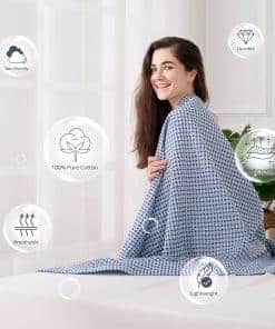 1. Comodidad durante todo el año: Fabricada con algodón de alta calidad con diseño de tela de gofre, esta manta es transpirable, absorbe la humedad, ligera y cálida. Puede usarse sola en climas calurosos o en capas para mayor calidez en condiciones más frías.