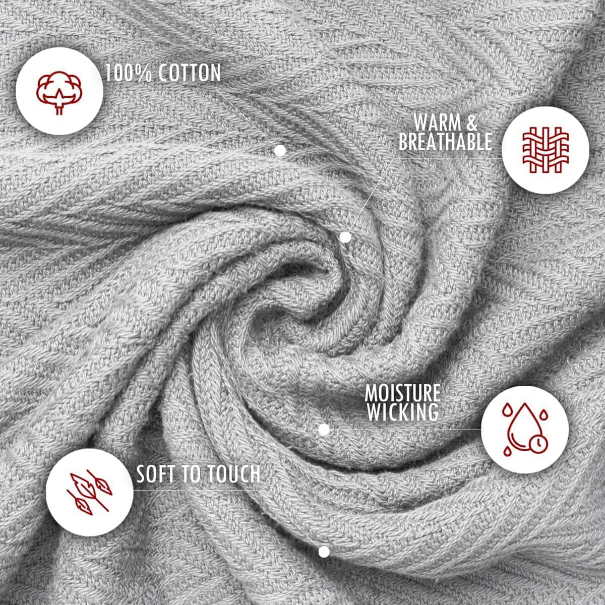 3. USO VERSÁTIL Ya sea colgada sobre tu sofá, extendida en tu cama, colocada al pie de tu cama o guardada en el armario, esta manta es el compañero perfecto para tu vida en casa. Nuestra manta de algodón tiene un peso ideal que te mantiene fresco en las noches calurosas de verano y cálido durante las noches frías de invierno, haciéndola perfecta para todas las estaciones.