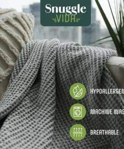 2. HIPOALERGÉNICA Y AMIGABLE CON LA PIEL: Naturalmente hipoalergénica, la manta de punto de gofre de bambú SNUGGLEVIDA es ideal para piel sensible. Su textura suave como la seda es suave con la piel, ofreciendo una experiencia suave y sin irritaciones.