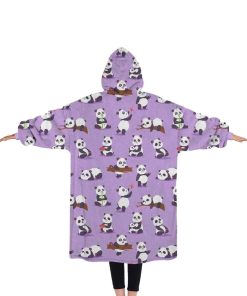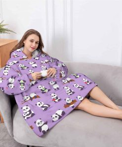 Manta de Bambú Púrpura con Panda, Manta con Capucha y