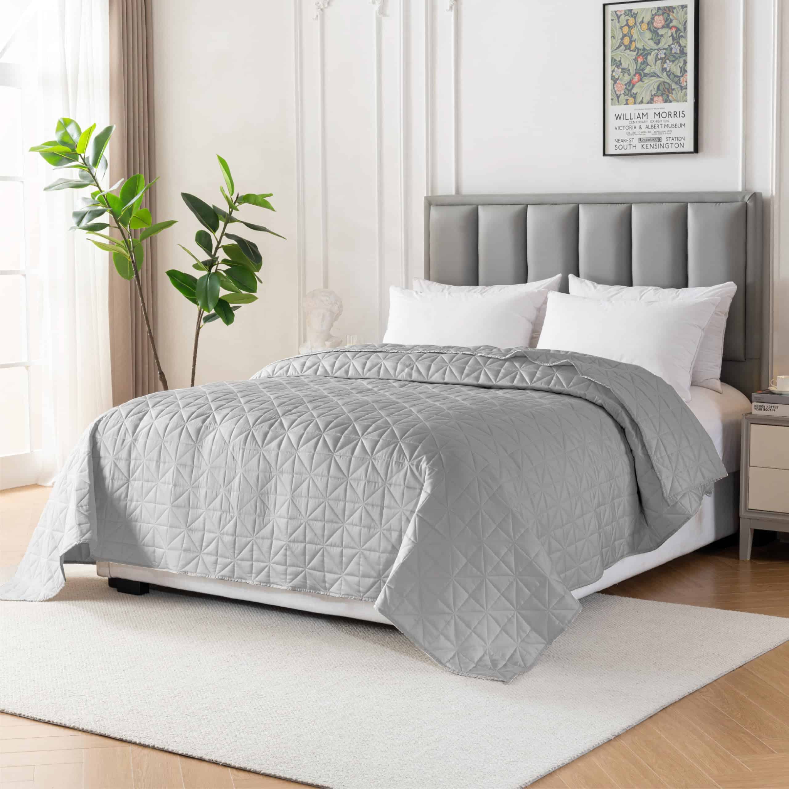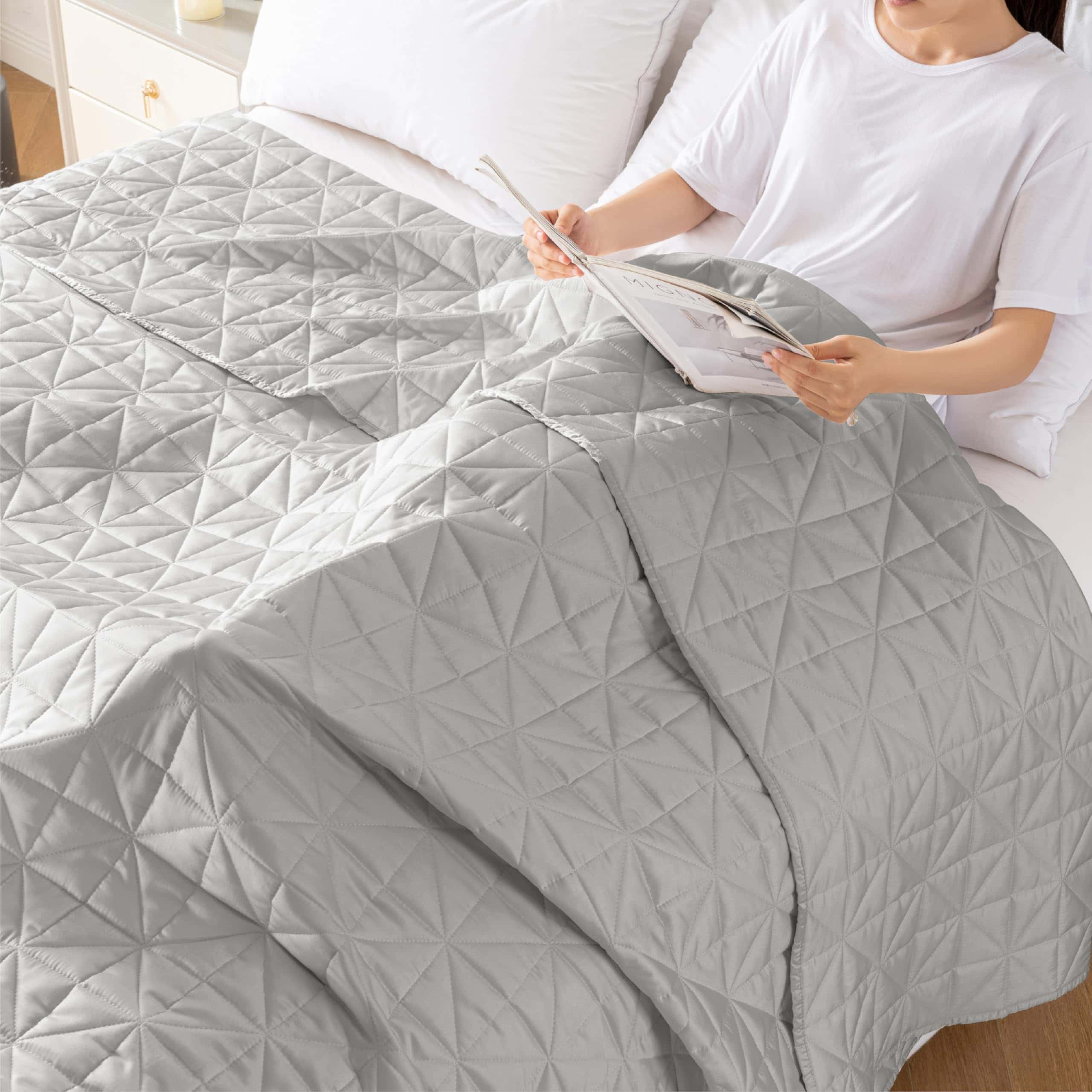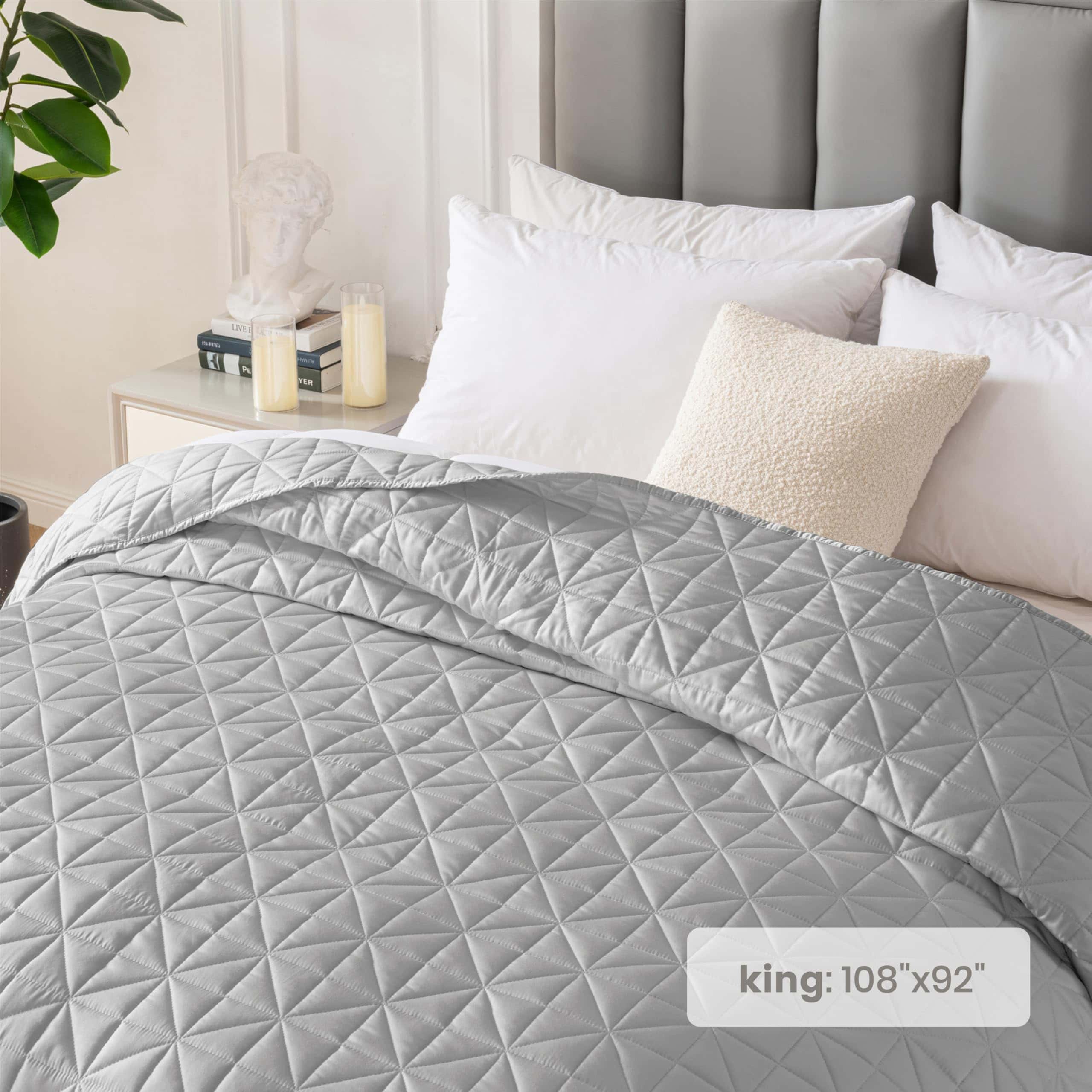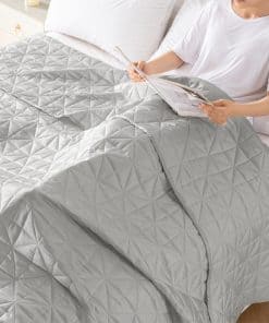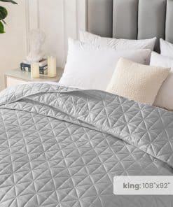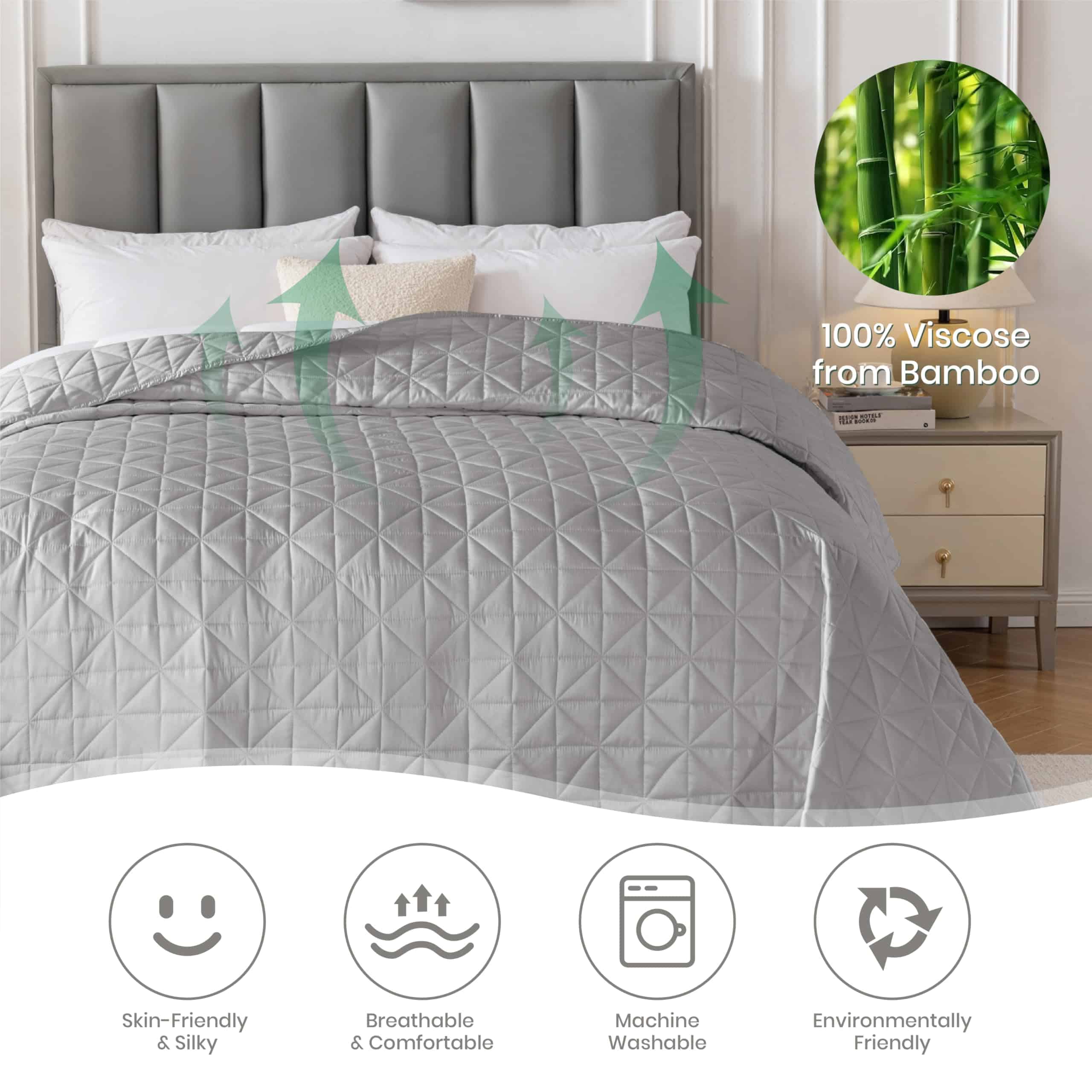 King size bedspread made of bamboo-derived viscose that is soft, with a good elastic texture and a silk-like touch. Cool to the touch, the bamboo blanket absorbs body heat and is skin-friendly, providing a comfortable sleep experience throughout the year. It is lightweight, allowing better air circulation inside the quilt, maintaining almost constant temperature and humidity. The lightweight design effectively reduces stuffiness and sweating, making it an excellent choice for people living in warm or humid climates. Easy care instructions: can be machine washed on gentle cycle or low-temperature drying, do not bleach, iron, dry clean; hang in a cool place. The bamboo duvet is suitable for various situations, making it perfect for snuggling on the sofa, deep sleep in bed, or taking a short break in an outdoor tent. The beautifully packaged cooling blanket makes a perfect gift for family and friends. Remember, any temporary wrinkles due to packaging will naturally disappear over time.