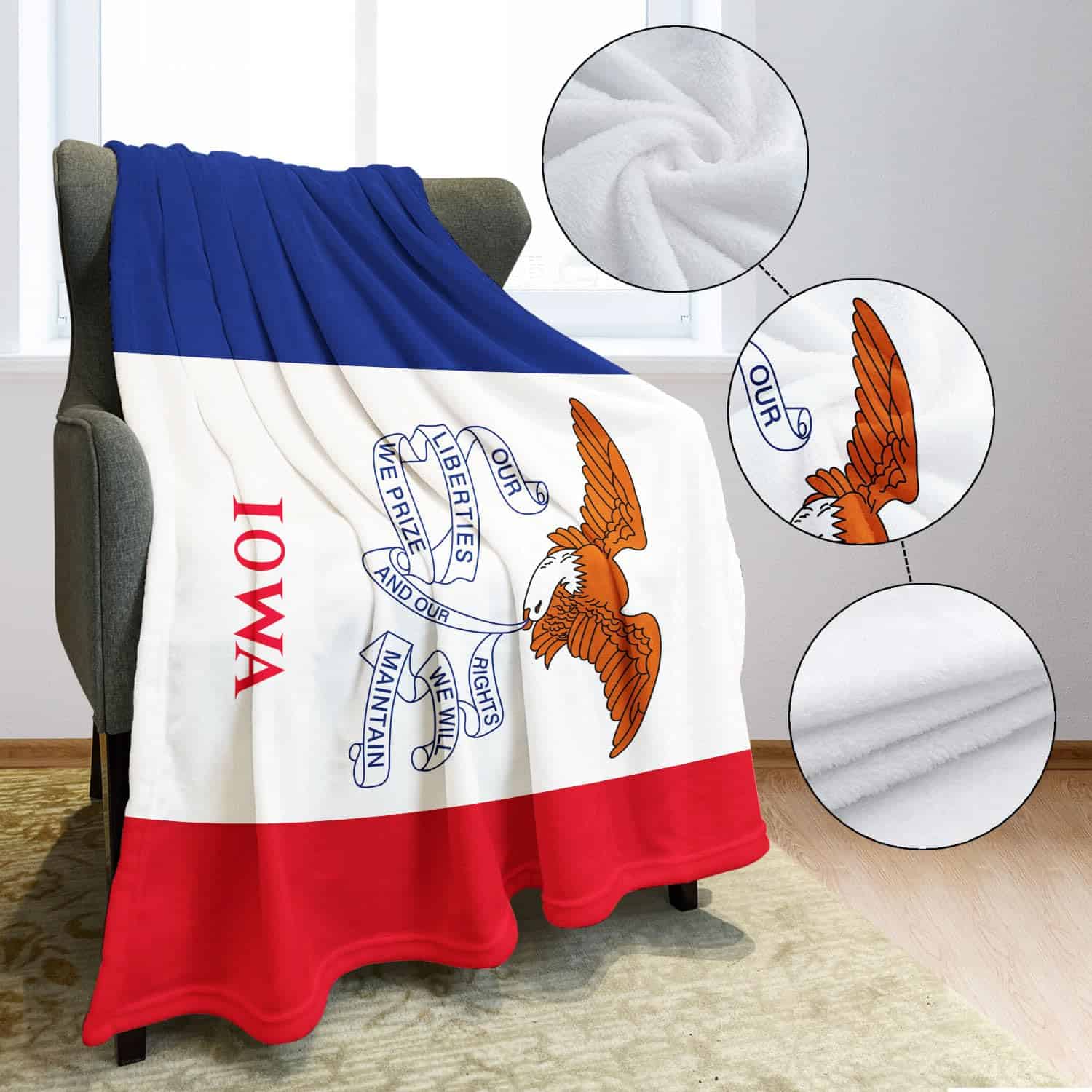 Manta de Bandera de Iowa de EEUU KLRIGR USA Suave y