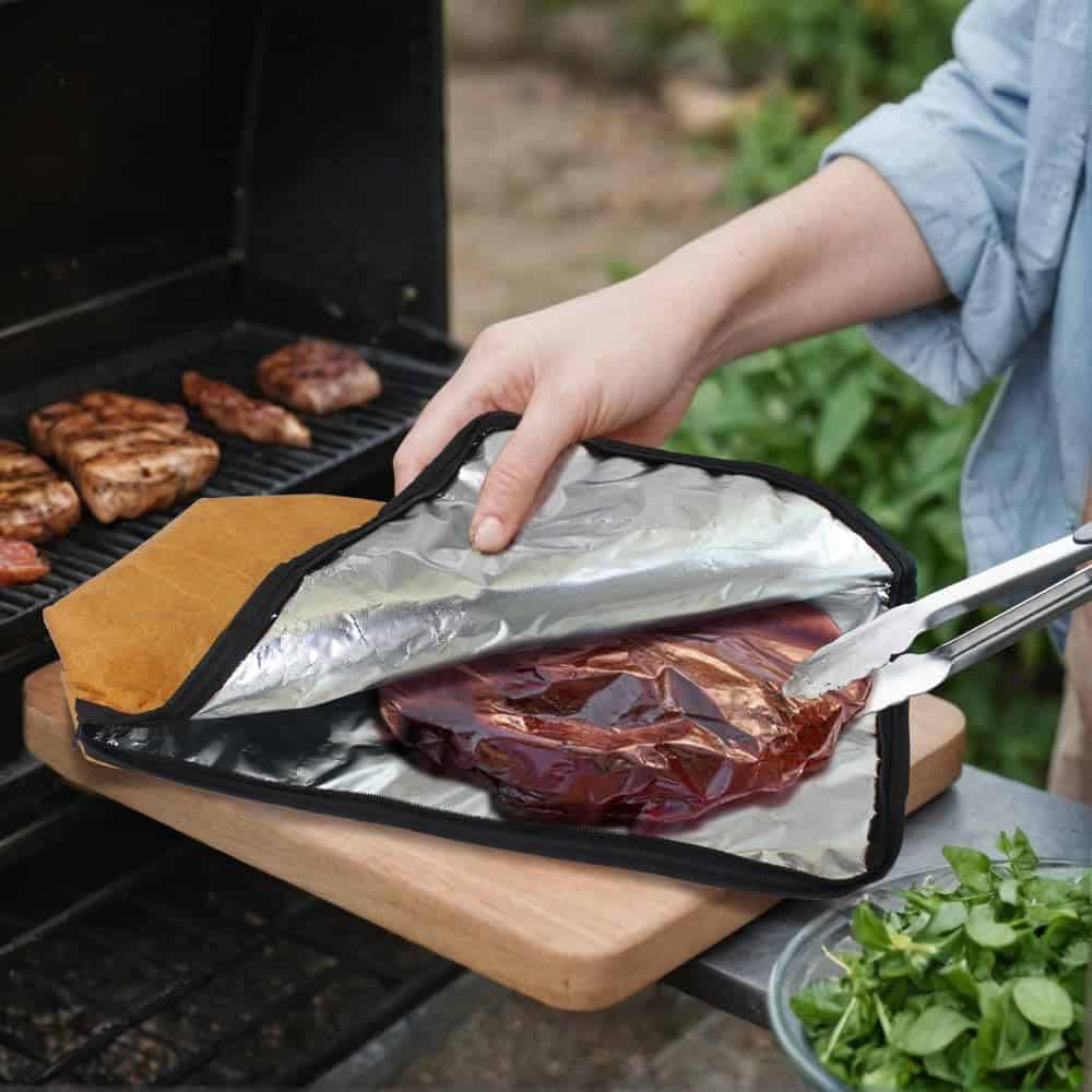 1. Eleve su experiencia en barbacoa: mientras humo y fuego realzan el sabor, un descanso adecuado con nuestra bolsa aislante de 5 capas asegura que su carne permanezca jugosa y tierna. Mantiene la temperatura perfecta y retiene la humedad, garantizando zun briskets, costillas y aves excepcionales todas las veces.