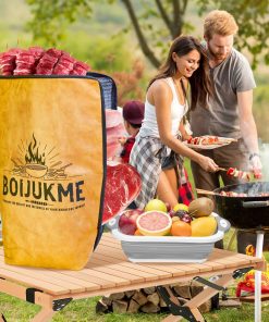La manta de barbacoa para reposar carne es un accesorio esencial para mantener la frescura y la calidad de sus ingredientes durante la preparación para la barbacoa. Con un tamaño generoso de 21.4x16x8 pulgadas, esta manta puede acomodar cortes grandes de carne, jamón, pavo, carne de res y otros ingredientes. Su diseño de tres capas garantiza una excelente conservación, con una capa exterior de papel de cera Dupont resistente al desgarro, una capa intermedia de algodón de perlas aislante para mantener la temperatura, y una capa interior de papel de aluminio que refleja el calor y evita que los alimentos se humedezcan, se oxiden y se echen a perder. Las cremalleras continuas en ambos lados hacen que sea fácil almacenar y recuperar los ingredientes cuando sea necesario. Esta manta de reposo para barbacoa es ideal para su uso en reuniones familiares, barbacoas al aire libre, o incluso para mantener ingredientes frescos durante sus viajes. Como bono adicional, se incluye una tabla de cortar plegable y sin olor para facilitar el procesamiento de los alimentos durante la preparación. Regale la manta de barbacoa Rest Ez como el regalo perfecto para los entusiastas de la barbacoa en su vida.