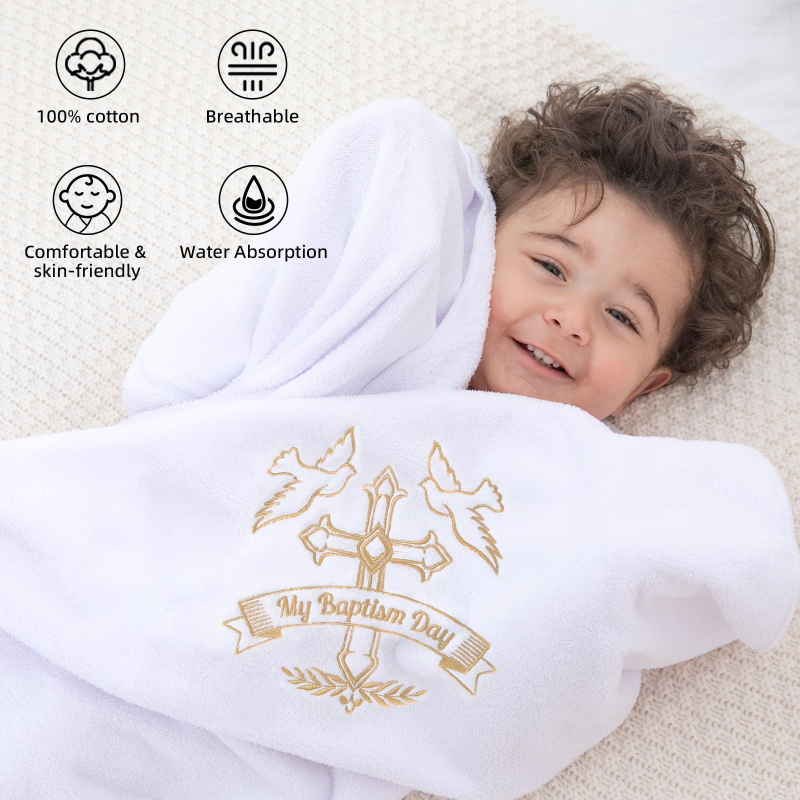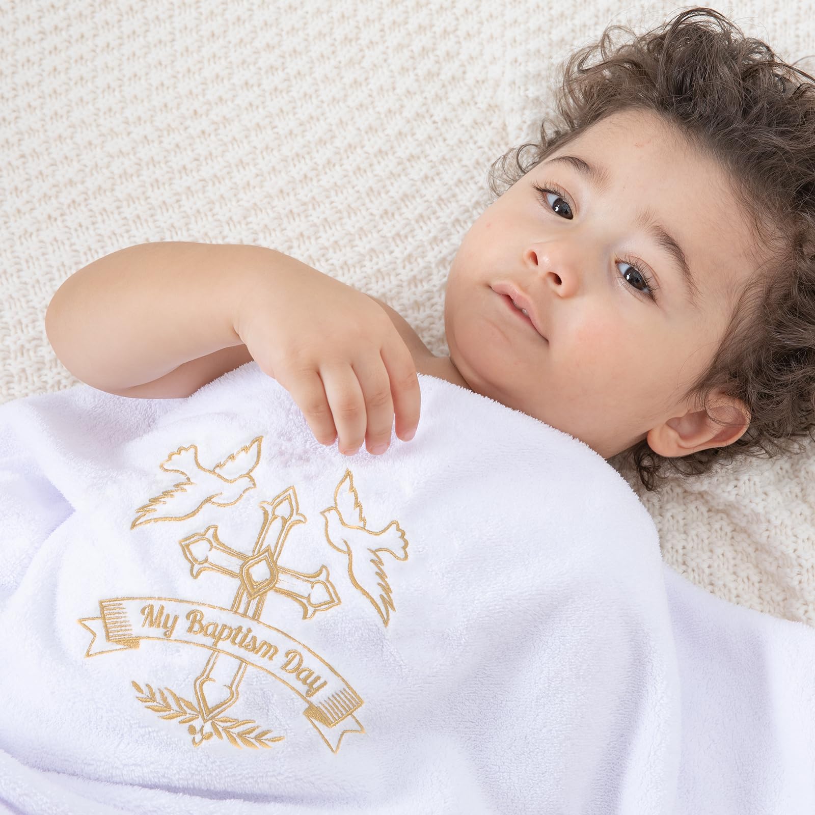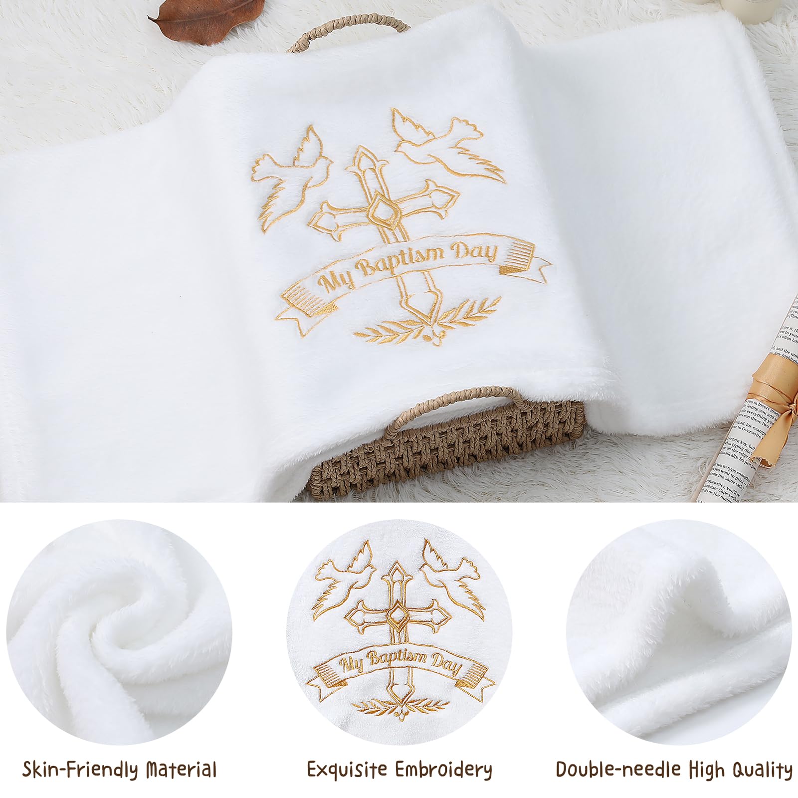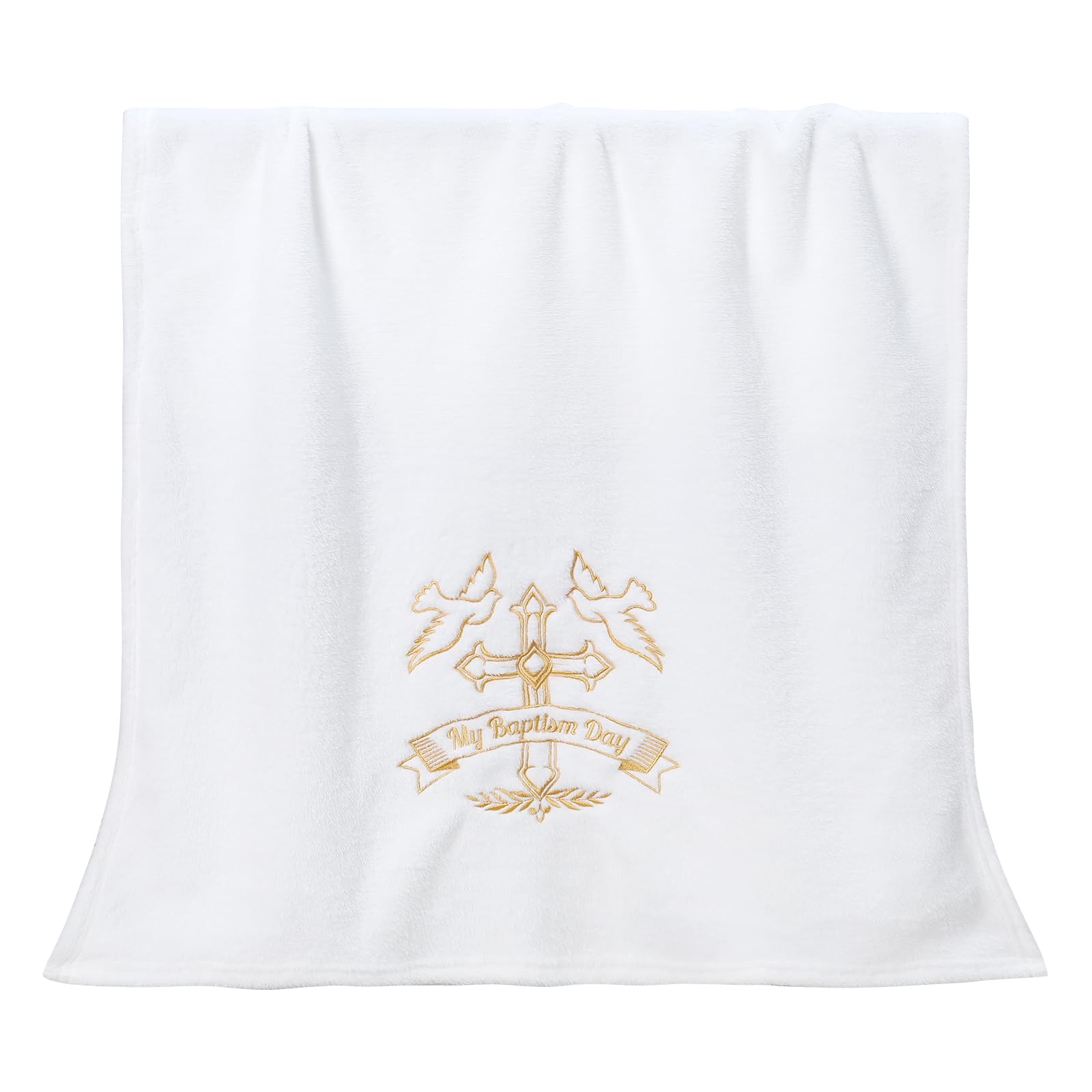 Manta de Bautizo para Bebé Vicimi hecha con coral fleece suave y cálido, ideal para mantener al bebé cómodo y caliente. Con un diseño bordado de una cruz, esta manta es perfecta para ceremonias de bautizo y dedicación. Con medidas de 52 x 30 pulgadas, es lo suficientemente grande para envolver al bebé con comodidad. Esta manta absorbente de agua es ideal para secar al bebé después del bautizo o la ceremonia de dedicación. Un regalo perfecto para bebés recién nacidos, esta manta también se puede usar como manta decorativa en la cuna, coche o al aire libre. Lavable a máquina para mayor comodidad y fácil mantenimiento.