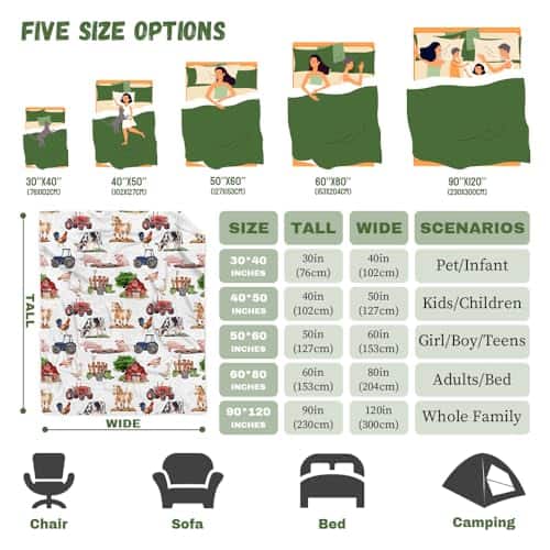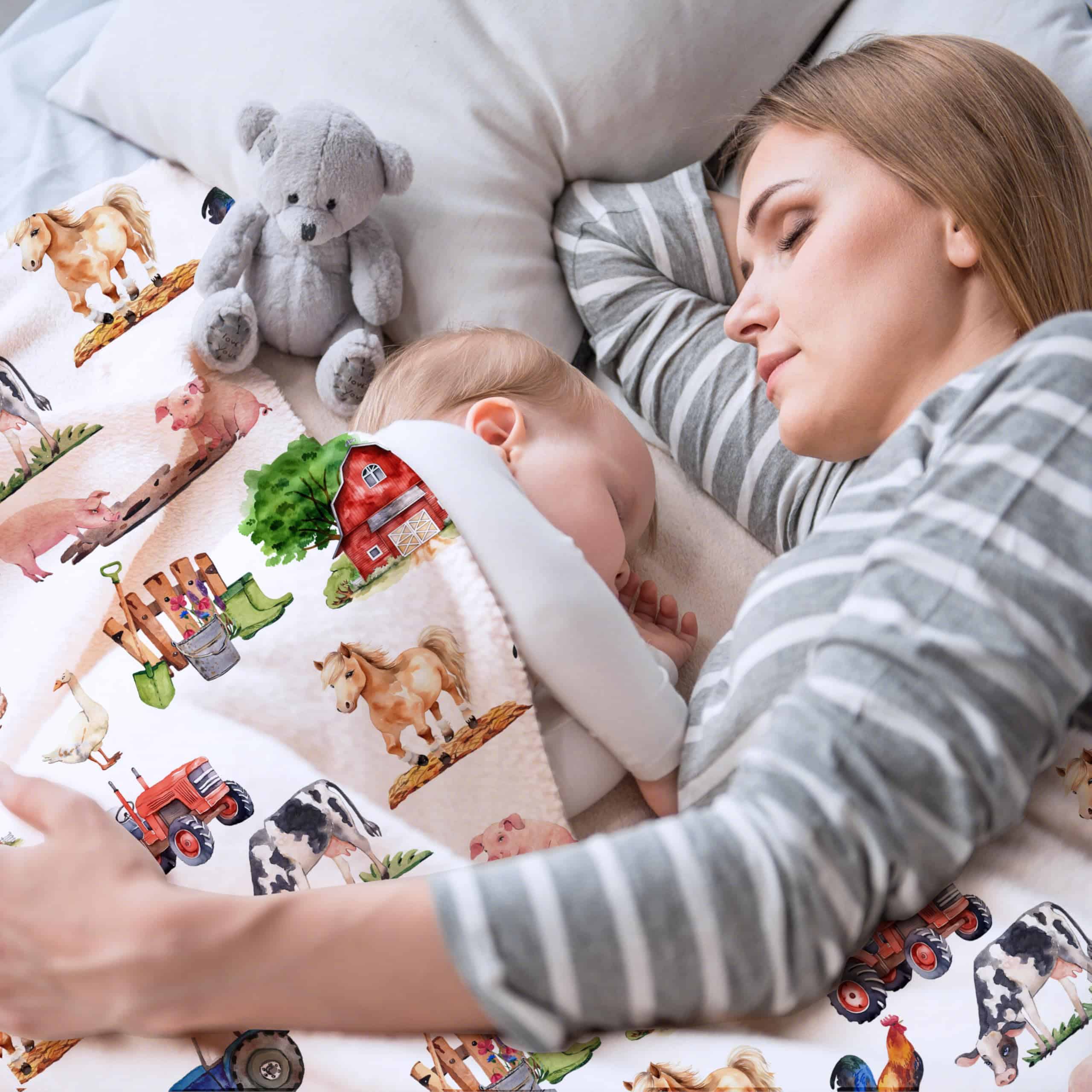 Manta de bebé con animales de granja Buyyet es una manta suave y acogedora que combina una tela premium con peluche, ideal para la piel delicada de tu bebé. Con diferentes tamaños disponibles, te permite elegir el tamaño adecuado para cada miembro de la familia. Esta manta versátil se puede utilizar en una variedad de situaciones, desde una colchoneta hasta un accesorio para el hogar, y puede ser el regalo perfecto para ocasiones especiales. Fácil de cuidar, duradera y resistente a los lavados, esta manta te acompañará durante mucho tiempo, brindándote calidez y comodidad en cualquier situación.