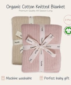 Manta de bebé de algodón orgánico tejido -Fog y Blush