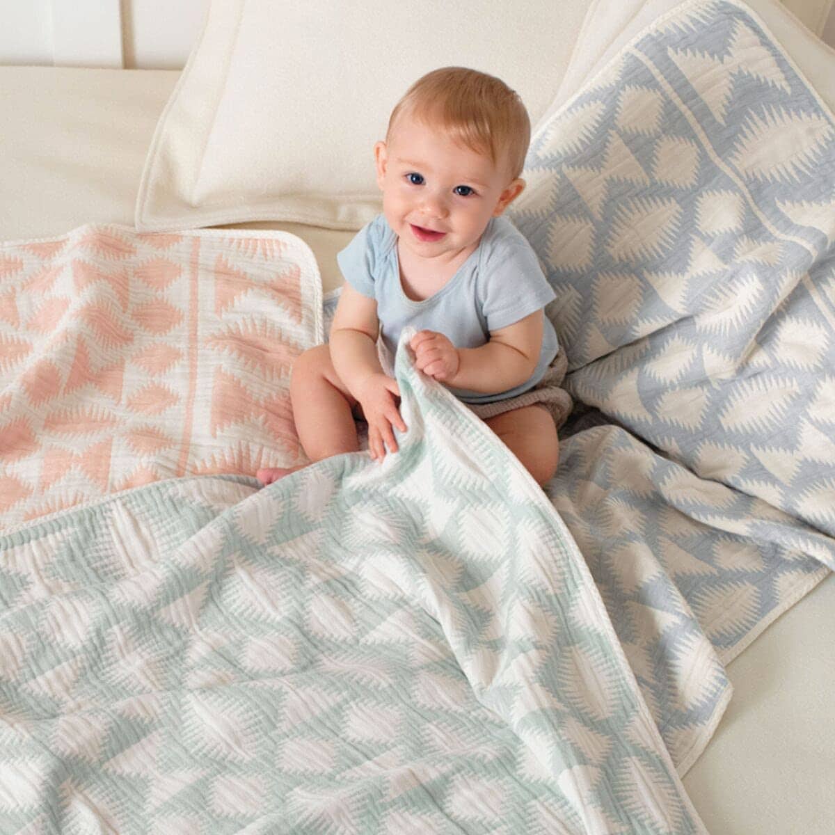 Una manta de bebé ligera de tamaño de cuna que es perfecta para envolver y abrazar. Hábilmente tejida en Europa solo para nosotros, es suave, transpirable y lavable a máquina. Esquinas redondeadas.
