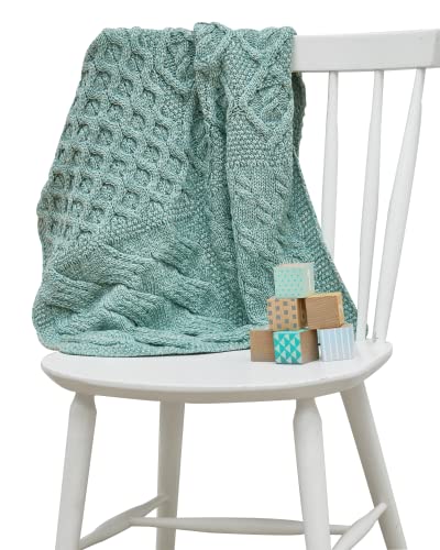 Una mezcla de puntos de diferentes tejidos le da a esta manta una sensación única y hecha a mano para un diseño que tu hijo atesorará durante años. Seis cuadrados diferentes, todos con diseños clásicos de punto incluyendo el cable de Aran, panal, diamante y puntos de musgo, se combinan para crear esta acogedora y cálida manta que está hecha de suave y cálida lana Merino. El tamaño perfecto para un recién nacido hasta un niño pequeño, esta manta es un favorito de la infancia que tu bebé recordará con cariño a lo largo de los años.