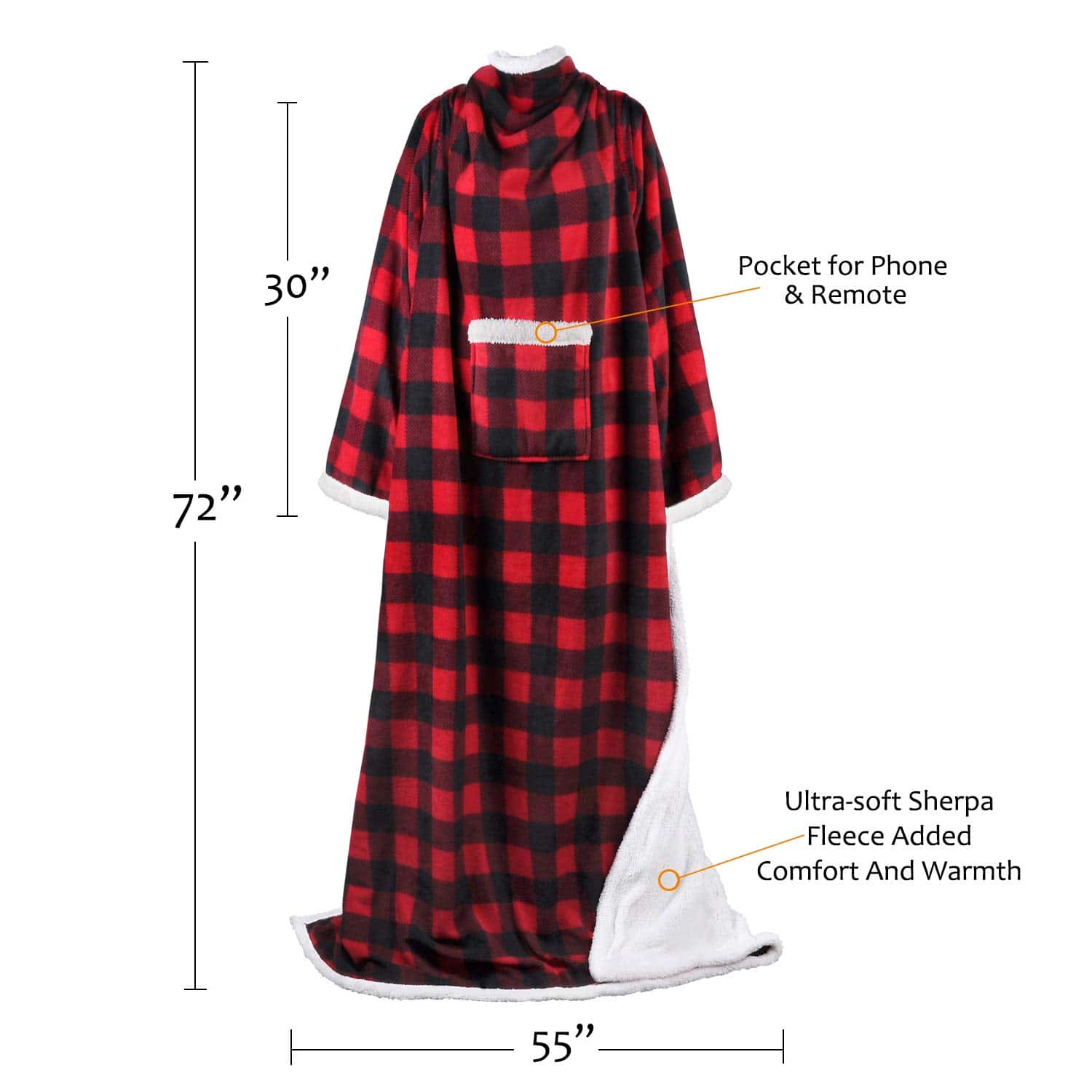 3. Mantas ideales de tamaño gemelo y disponibles en 16 colores: Manta cómoda para adultos de 55 x 72 pulgadas con mangas, abertura para los brazos grande, cabe en adultos de todos los tamaños para cubrir todo el cuerpo| Disponible en Gris, Azul, Marrón, Negro, Vino, Camel, Rosa, Cebra, Leopardo, Cuadros Rojos, Cuadros Verdes.