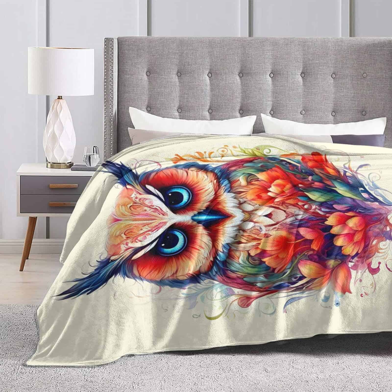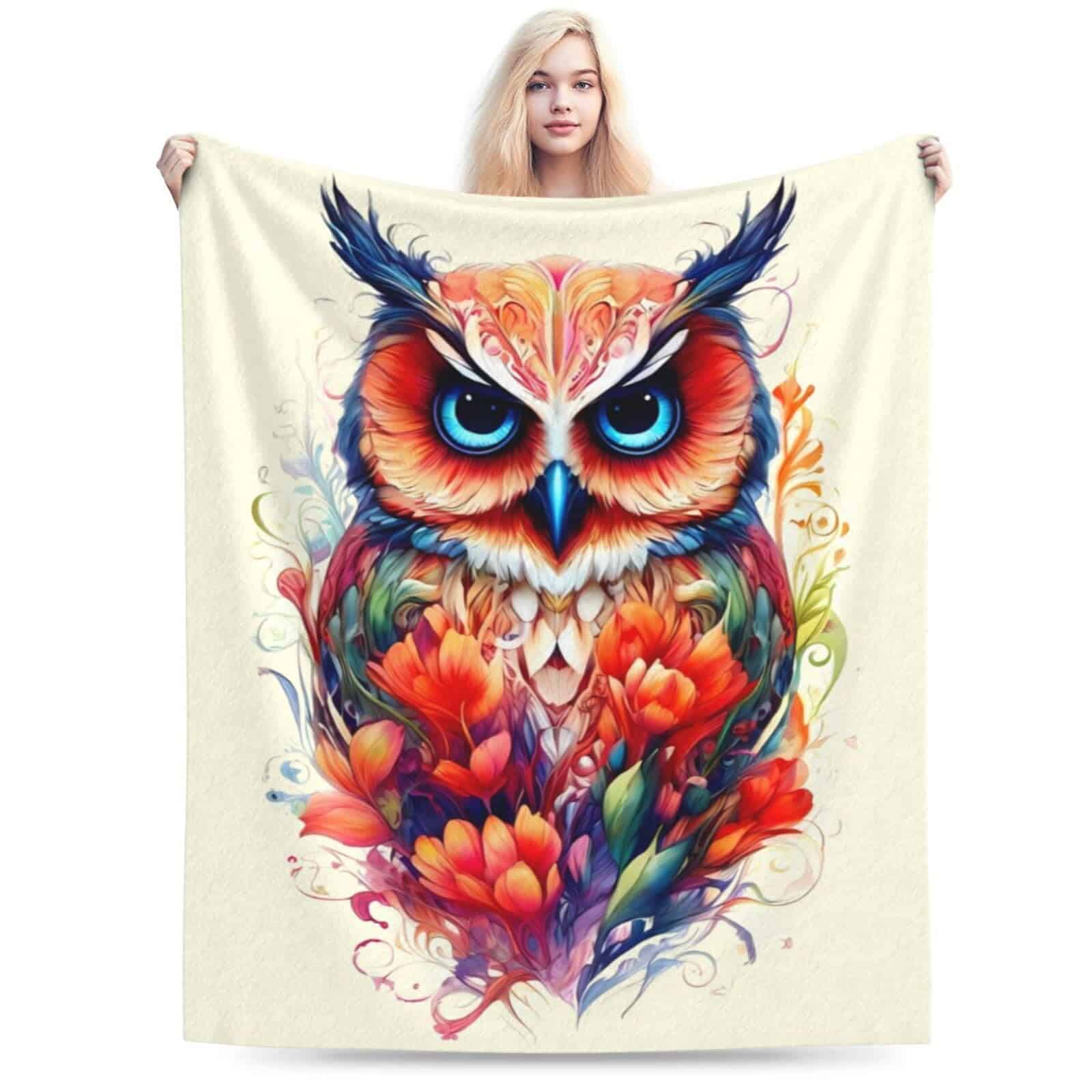 Dimensiones: 60 (L) x 50 (W). Diseño de impresión: Búho de Búho. Material: Franela de poliéster.