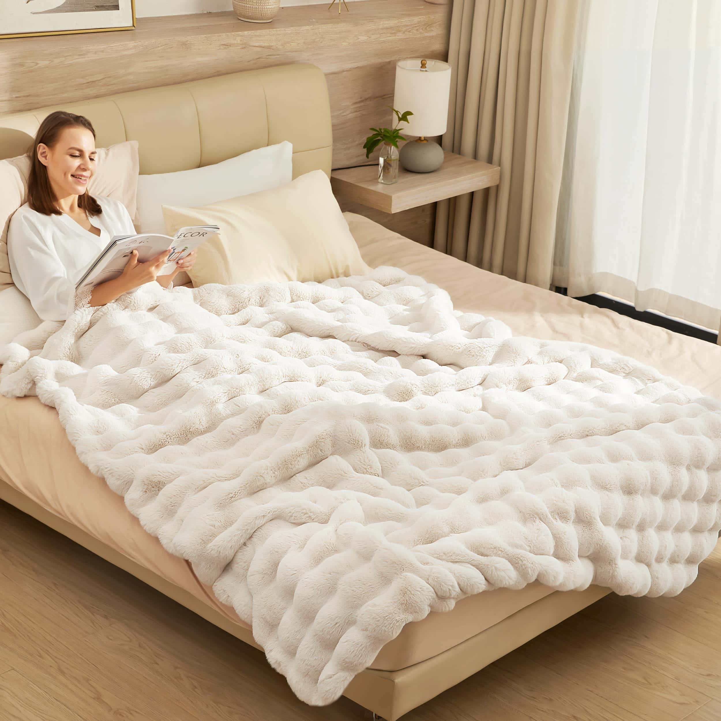 Manta de Burbujas de Piel Sintética PLUUSHUU, Manta