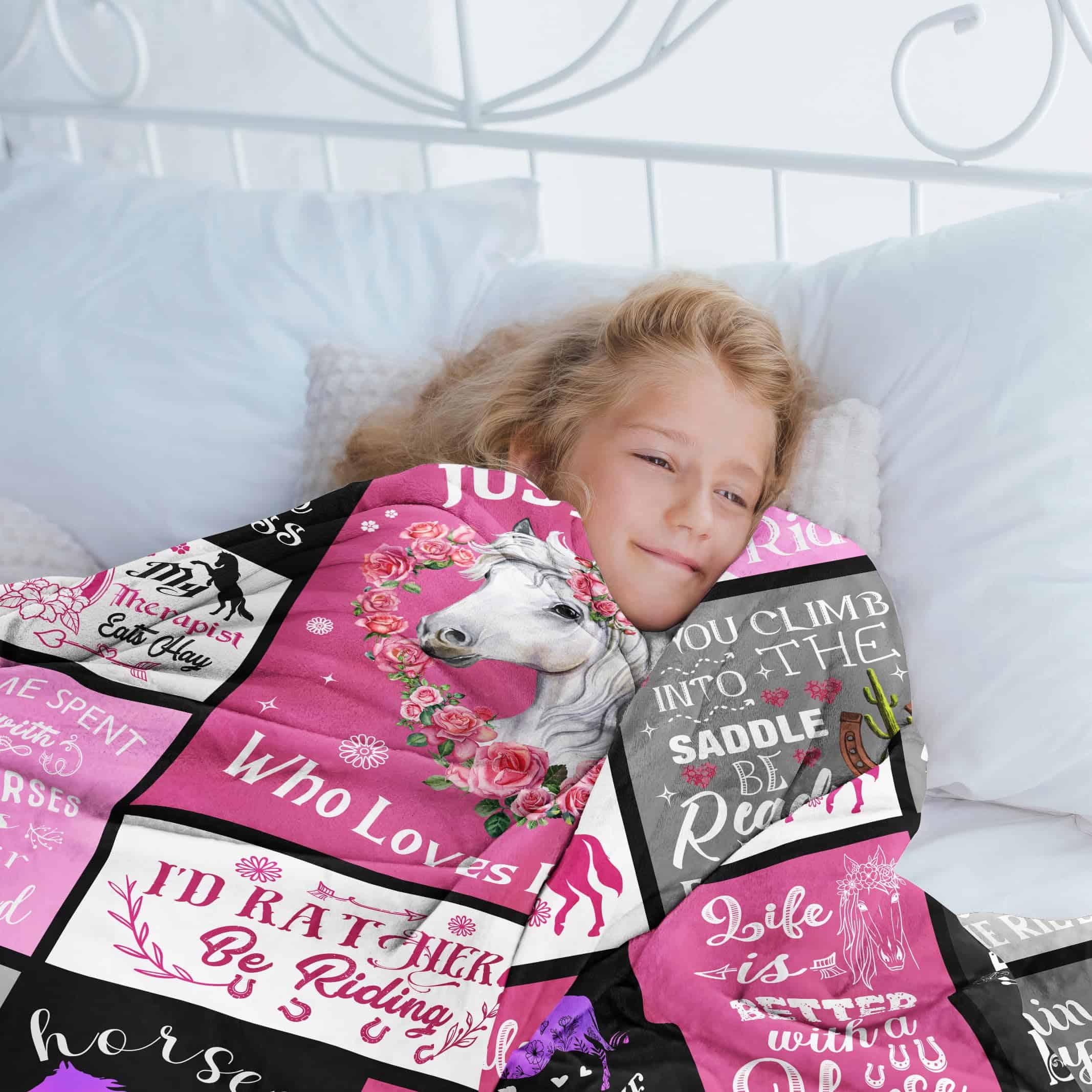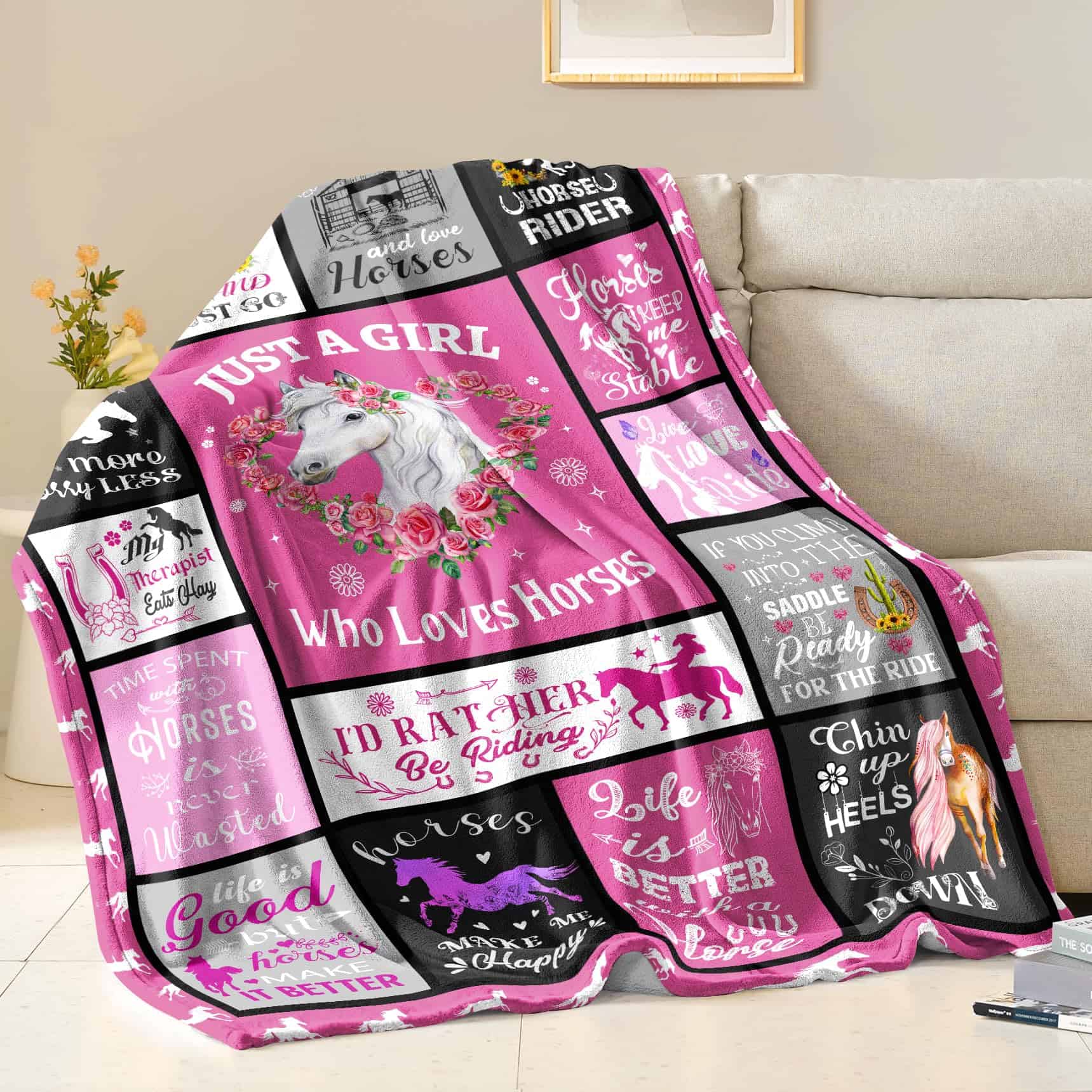 Regalo Inolvidable de Caballo para Niñas Nuestra manta es el obsequio perfecto para tu hija, nieta, hijastra, sobrina, amiga o compañeras de clase para su cumpleaños, graduación, o Navidad. Este regalo único asegura que nunca olvidarán estos días importantes. Destaca como uno de los mejores regalos para amantes de caballos y es una elección considerada para regalos para niñas amantes de caballos.