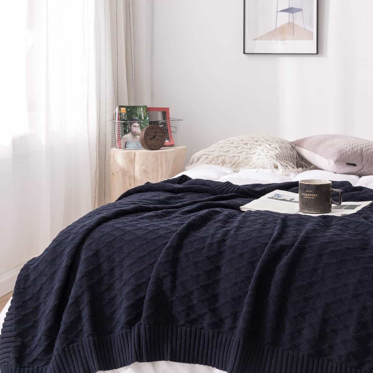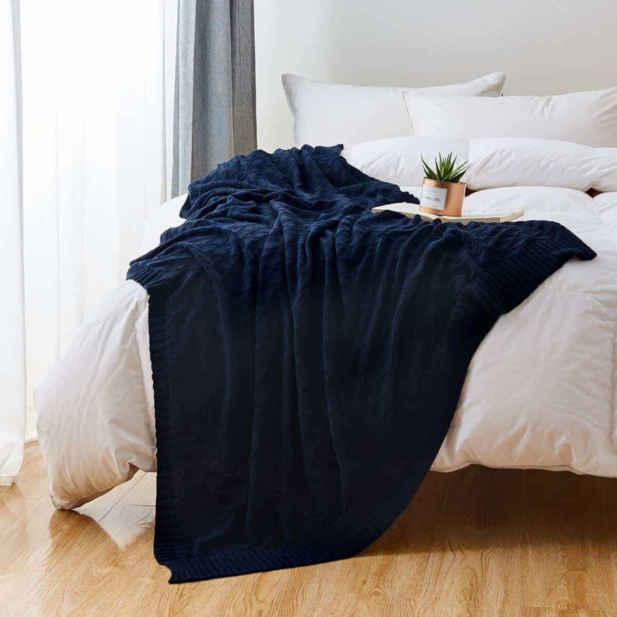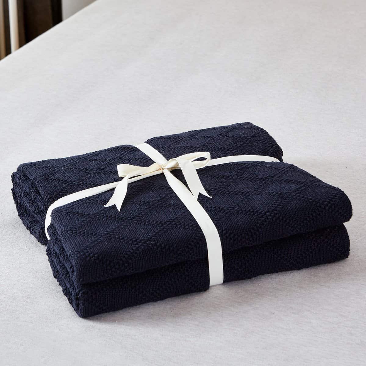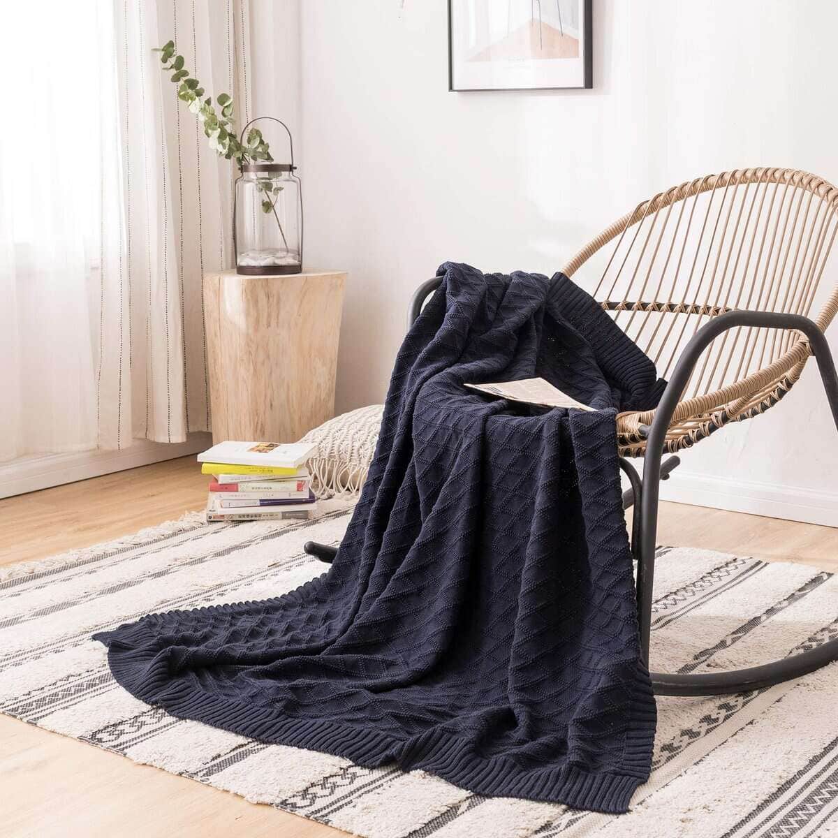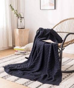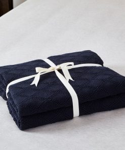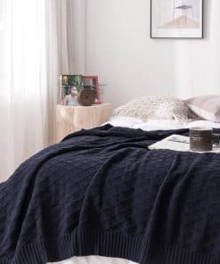 Manta de Cable de Punto Azul Marino 100% Algodón con Bolsa
