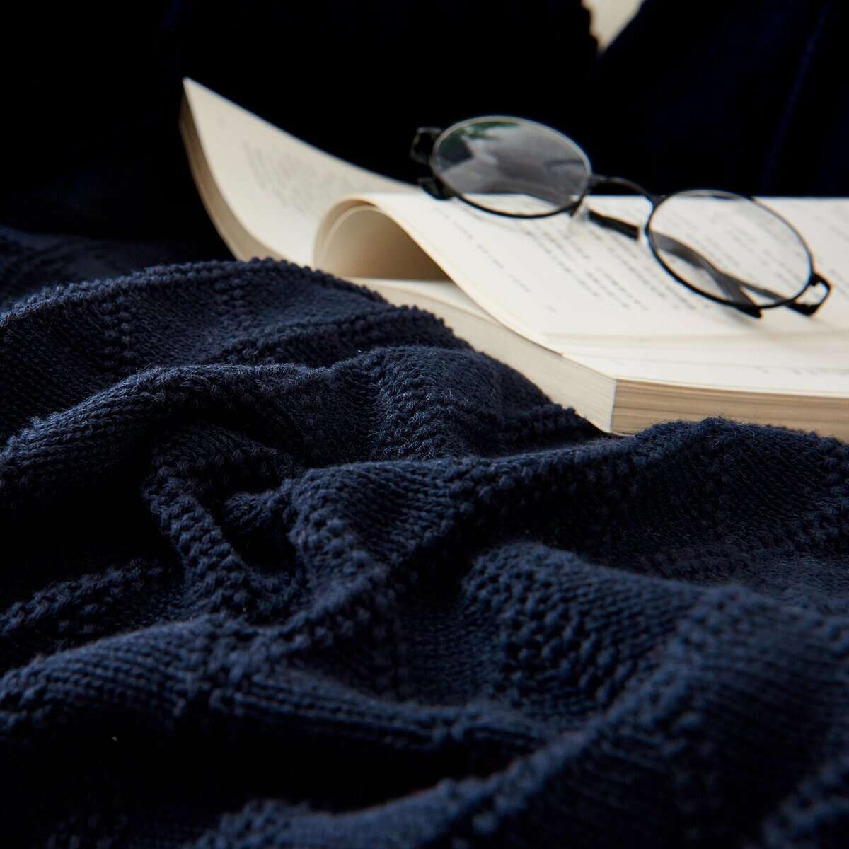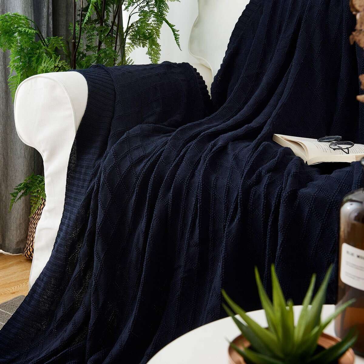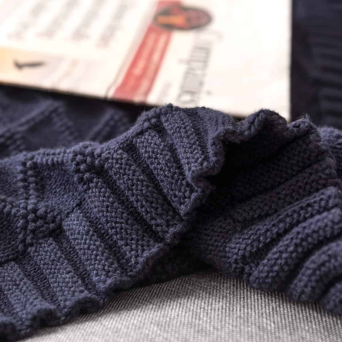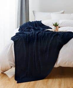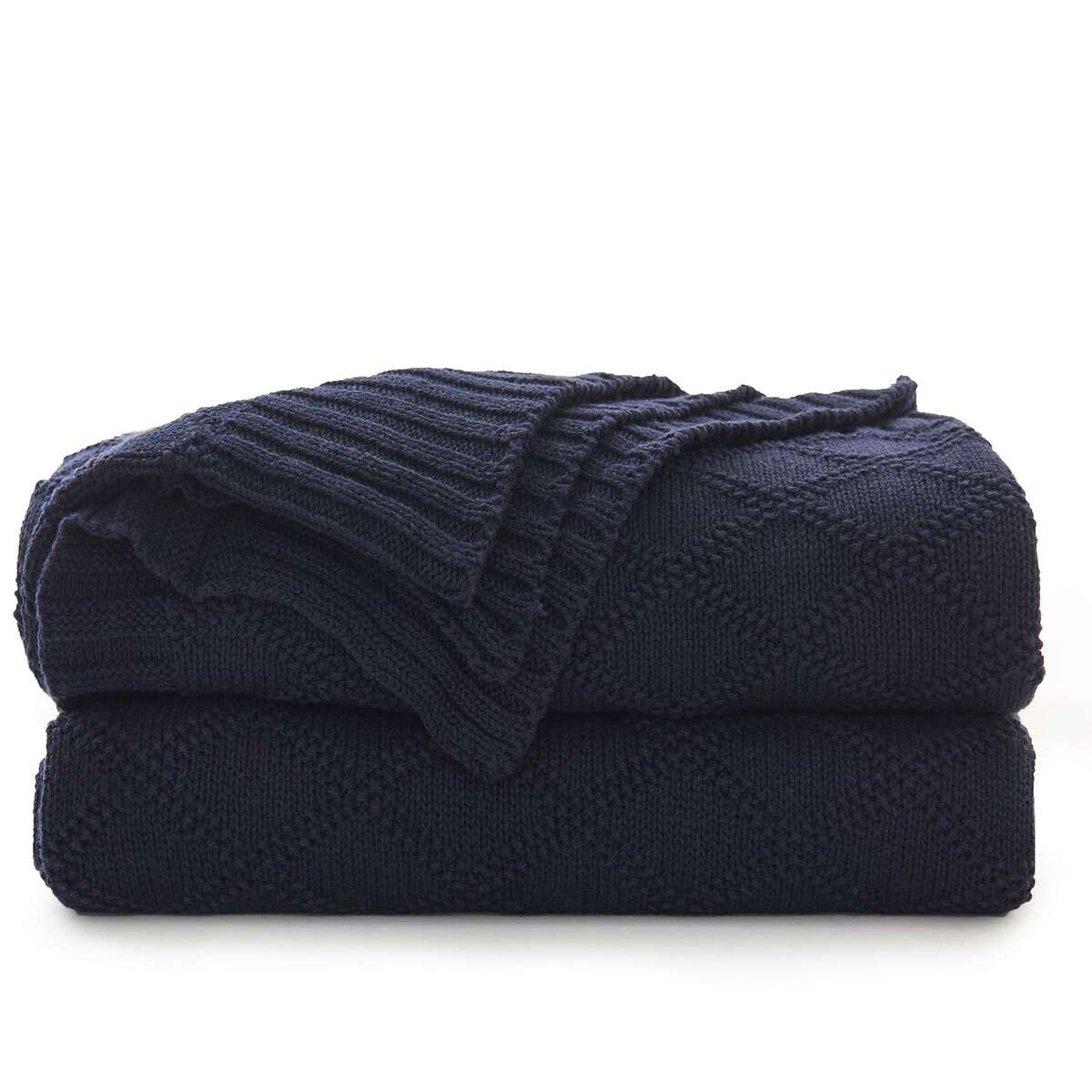 Manta de Cable de Punto Azul Marino 100% Algodón con Bolsa