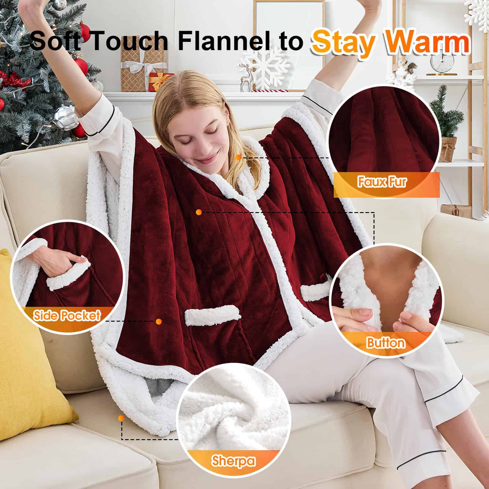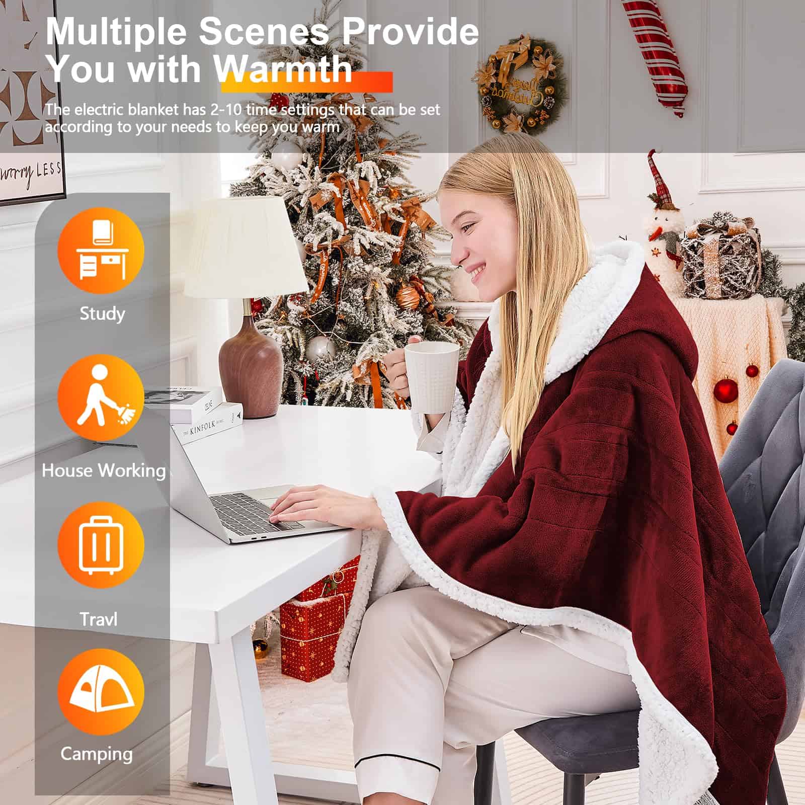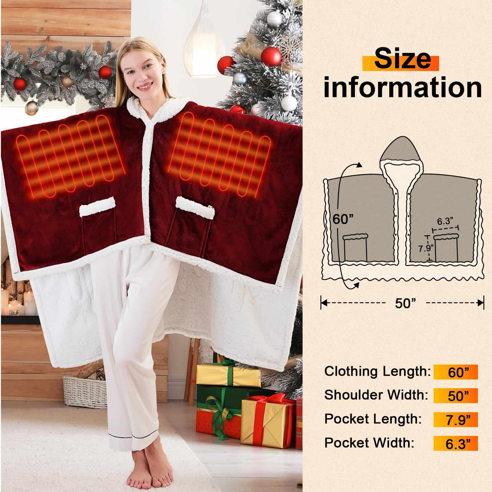 5. Un Regalo Cálido que Expresa tus Pensamientos – Esta manta abrigo calefactable es una elección ideal para amigos y familiares, ya sea en el Día de San Valentín, cumpleaños, Día de la Madre, Acción de Gracias, Año Nuevo o festividades, puede expresar tu profundo cariño. No solo es un artículo cálido y práctico, sino también un regalo cariñoso. Hay una variedad de colores y estilos disponibles para elegir, asegurando que cada ser querido pueda recibir su regalo de Navidad favorito, para que este invierno ya no sea frío.