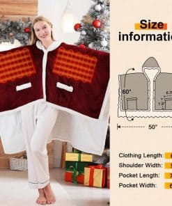 1. Descubre tu Compañero de Invierno – manta calefactable poncho con bolsillo de greenoak, midiendo 50″ x 60″, para un calor y comodidad sin igual. Además de mantenerte cálido, esta manta calefactable portátil cuenta con un práctico bolsillo frontal para mantener tus manos calientes y llevar objetos pequeños como tu teléfono, refrigerios o controles remotos.