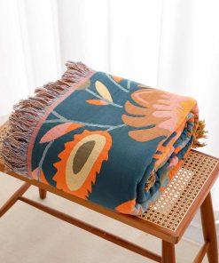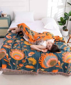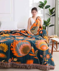 Manta de cama boho de algodón 100% ultra suave colcha rústica – Manta de otoño estampada con pájaros y flores Decoración de granja Manta grande para cama