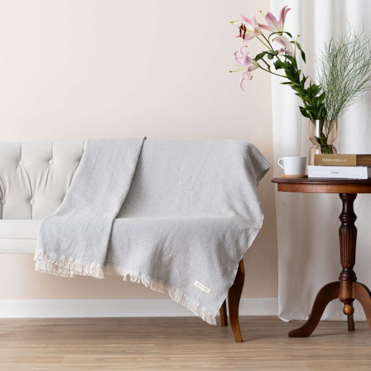 Manta de Cama con Diseño Chevron de Algodón DREAMY RIKKA,
