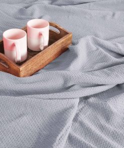 Manta de cama de algodón 100%, manta térmica -Light Grey