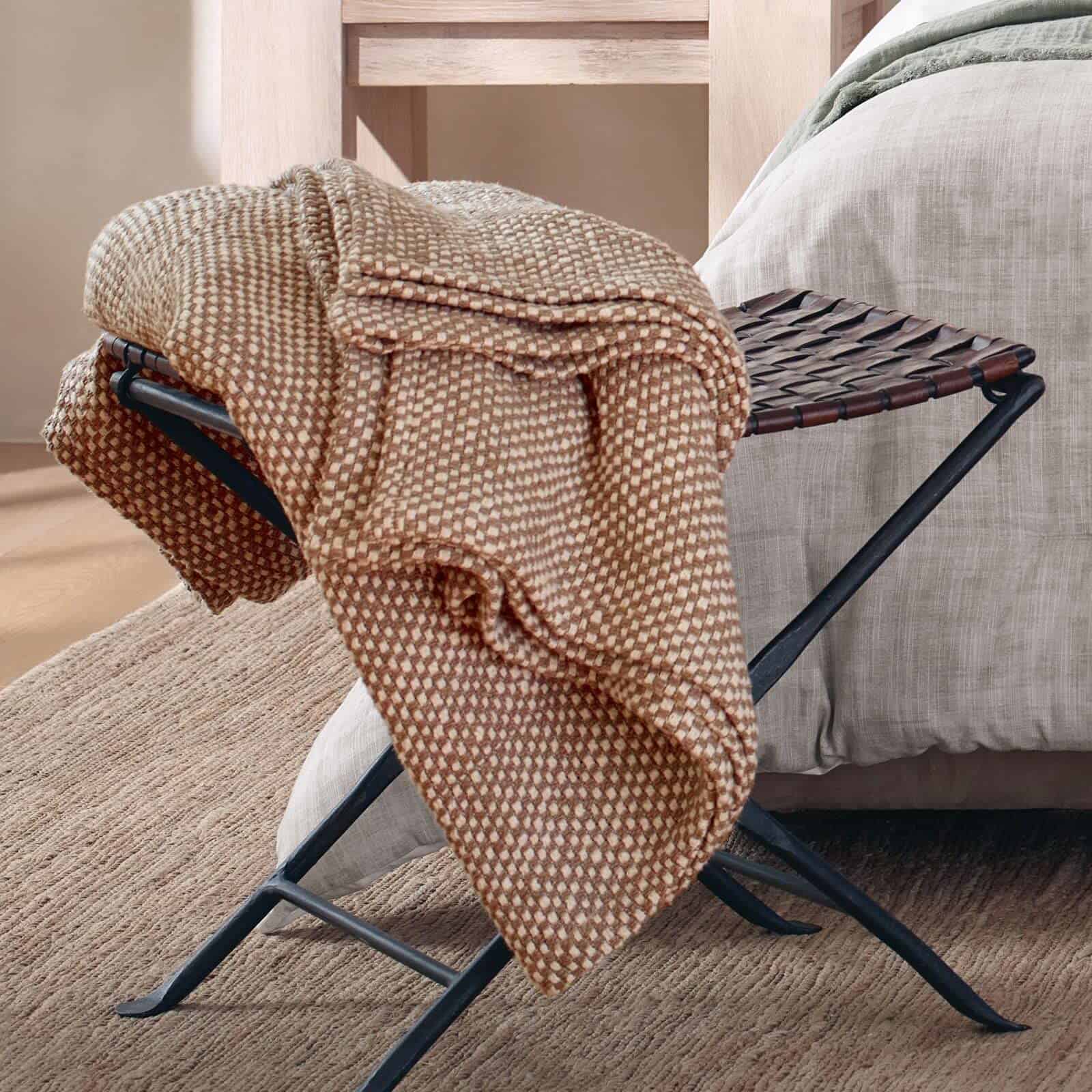 Manta de Cama de Dos Tonos de Tejido de Canasta 100%