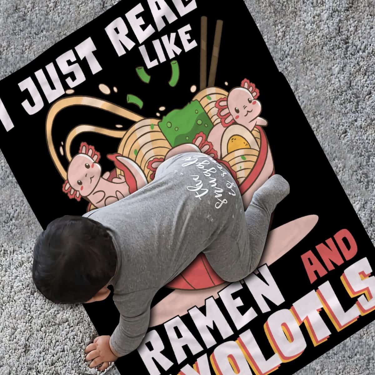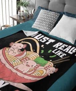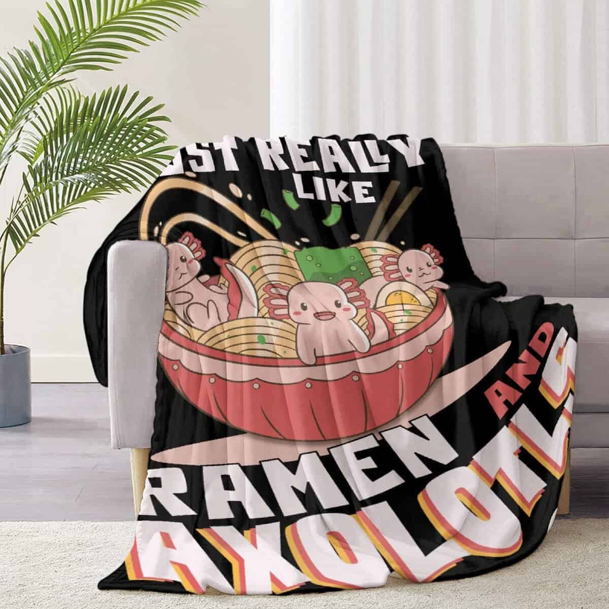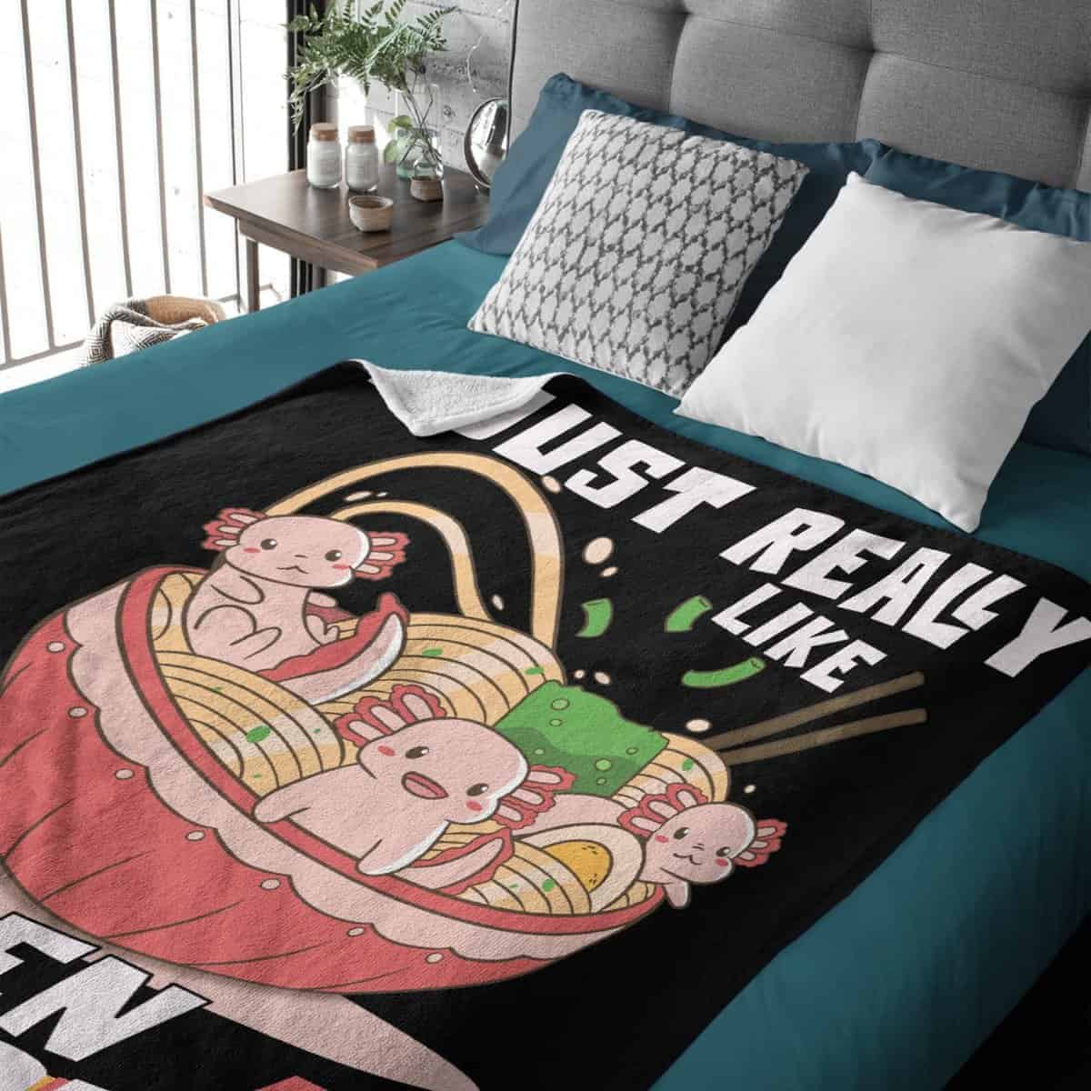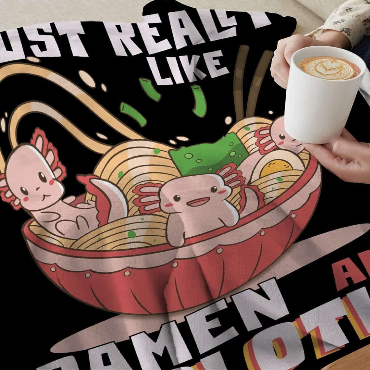 Manta de Cama Suave I Just Really Like Ramen and Axolotls –