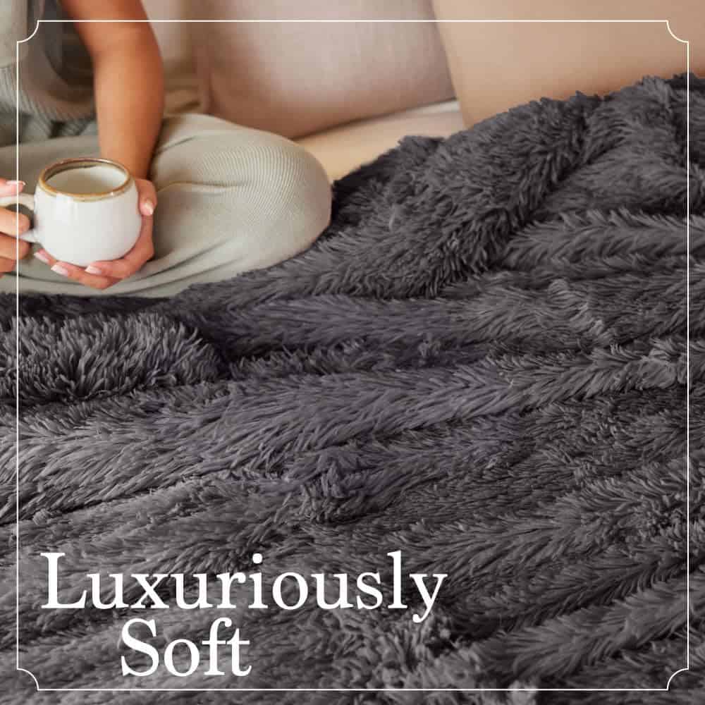 1. SUAVE SHAG DE LUJO: acurrúcate con esta manta de shag ultra suave y acogedora; diseñada con shag suave y sherpa esponjoso para la máxima experiencia en comodidad lujosa; un regalo perfecto para cualquier ocasión.