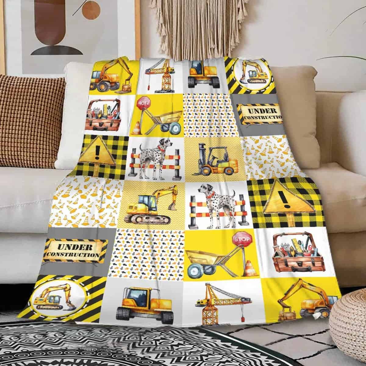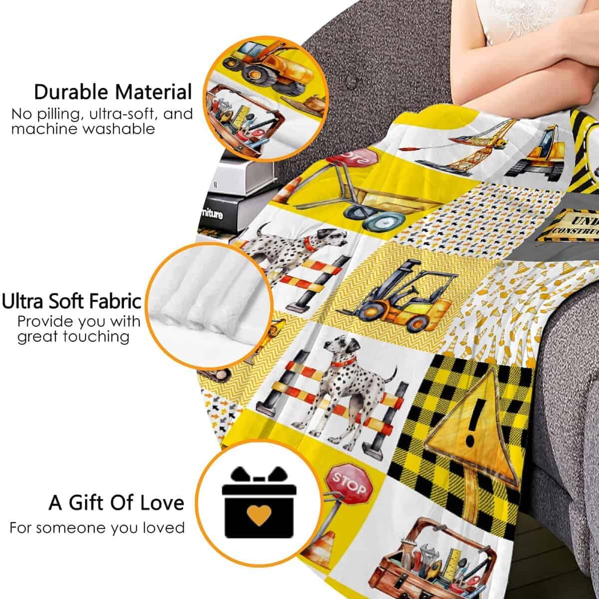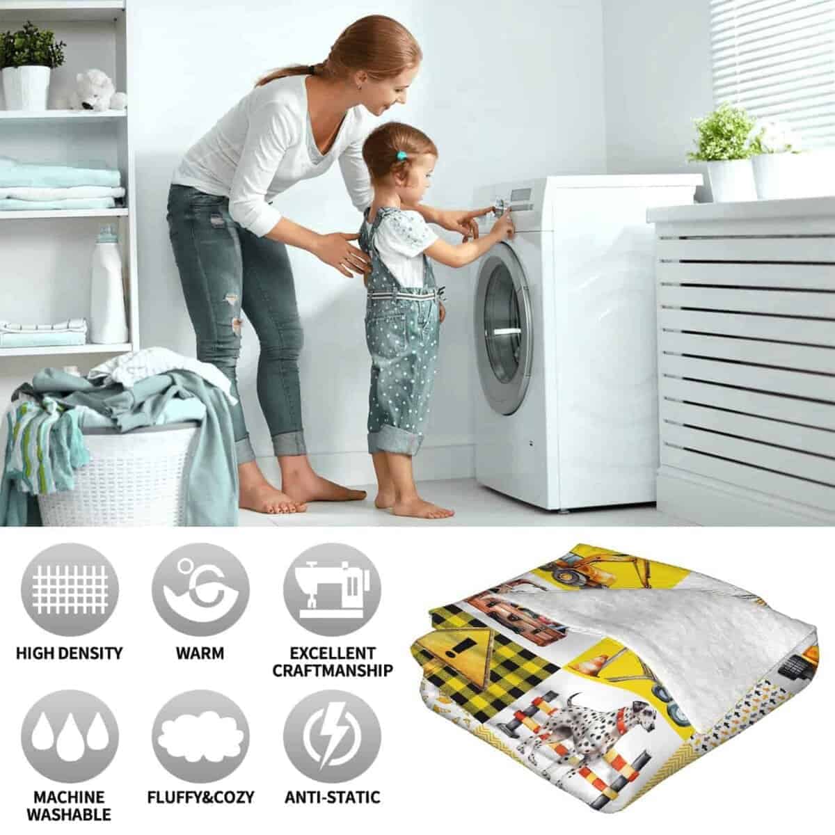 4. Cuidado Fácil: Lave esta manta de camión de construcción antes de usarla. Lave a máquina en ciclo suave con agua fría o lave a mano, seque en secadora a baja temperatura cuando sea necesario, no se desprende, nunca se desvanece ni se encoge. La manta de tiro se mantiene igual que nueva después del lavado.
