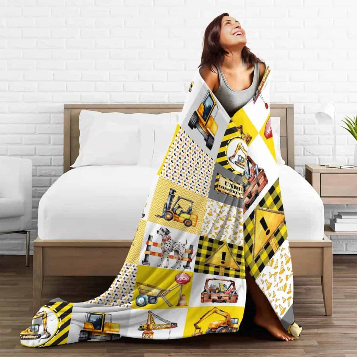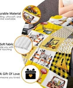 3. Regalo Óptimo: Todas las personas pueden usar esta manta de franela de camión de construcción en sofá cama oficina estudio. Perfecto para regalos en cumpleaños de amigos, Día de la Madre, Día del Padre, Navidad, Halloween. Esta manta súper suave puede llevar calidez a sus amigos, por lo tanto, puede resaltar su relación con amigos y familiares.