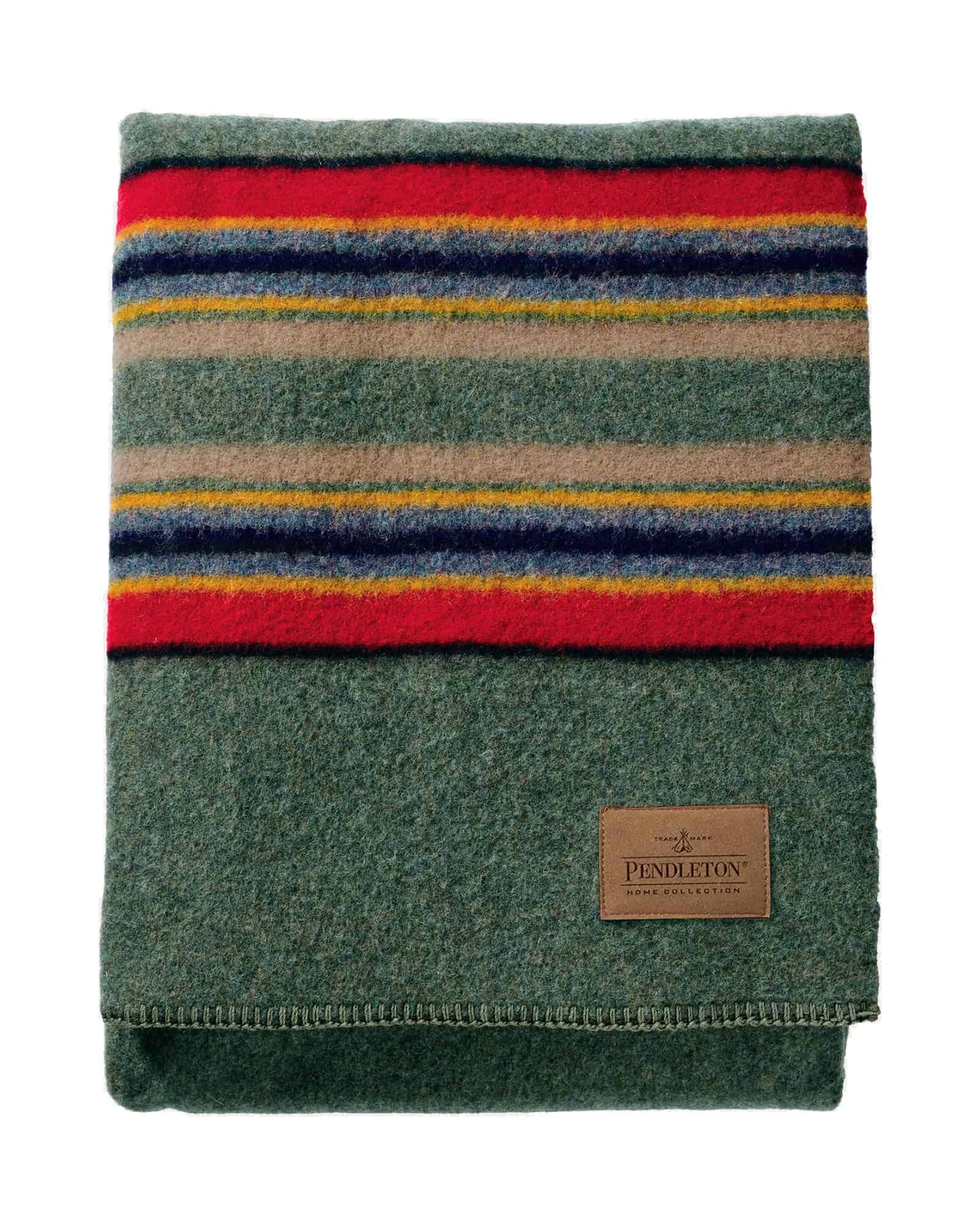 Manta de tamaño Queen en verde Heather de PENDLETON, tejida de lana virgen pura en nuestras fábricas americanas para ofrecer años de excepcional comodidad. Ya sea que duerma en interiores o al aire libre, nuestras populares mantas de campamento lo mantienen cálido y acogedor en todas las condiciones climáticas. Para mantener la calidad del tejido, se recomienda la limpieza en seco. Inspiradas en las mantas a rayas degradadas que los vaqueros utilizaban al montar campamento al final de un largo día en la pradera. Con tela de colores ricos y rayas minimalistas, estas mantas clásicas resisten la prueba del tiempo y se adaptan a cualquier decoración.