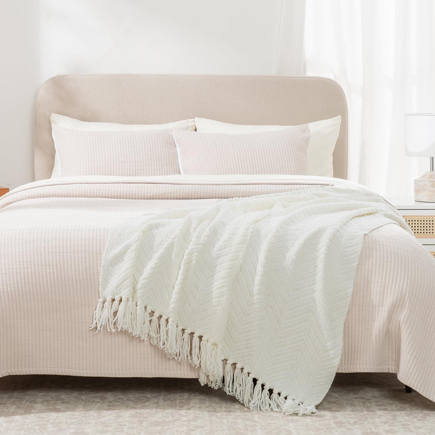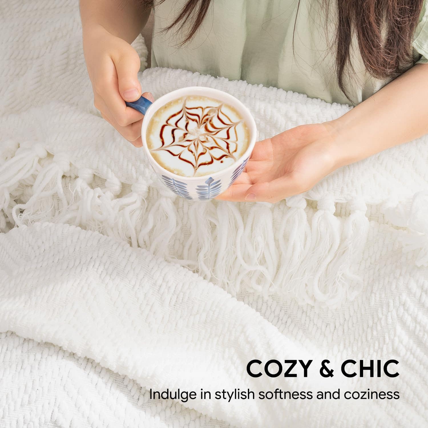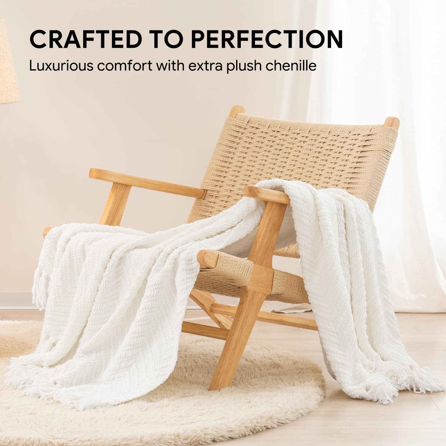 4. Hecha para Durar – Fabricada con tejidos de alta calidad que resisten la decoloración y una mano de obra impecable, nuestra manta blanca crema garantiza una durabilidad superior, asegurando colores vibrantes que se mantienen vivos incluso después de innumerables lavados. Además, esta suave manta de chenilla está certificada según el estándar 100 de Oeko-tex, por lo que es segura para que tú y tu familia la usen en la vida diaria.