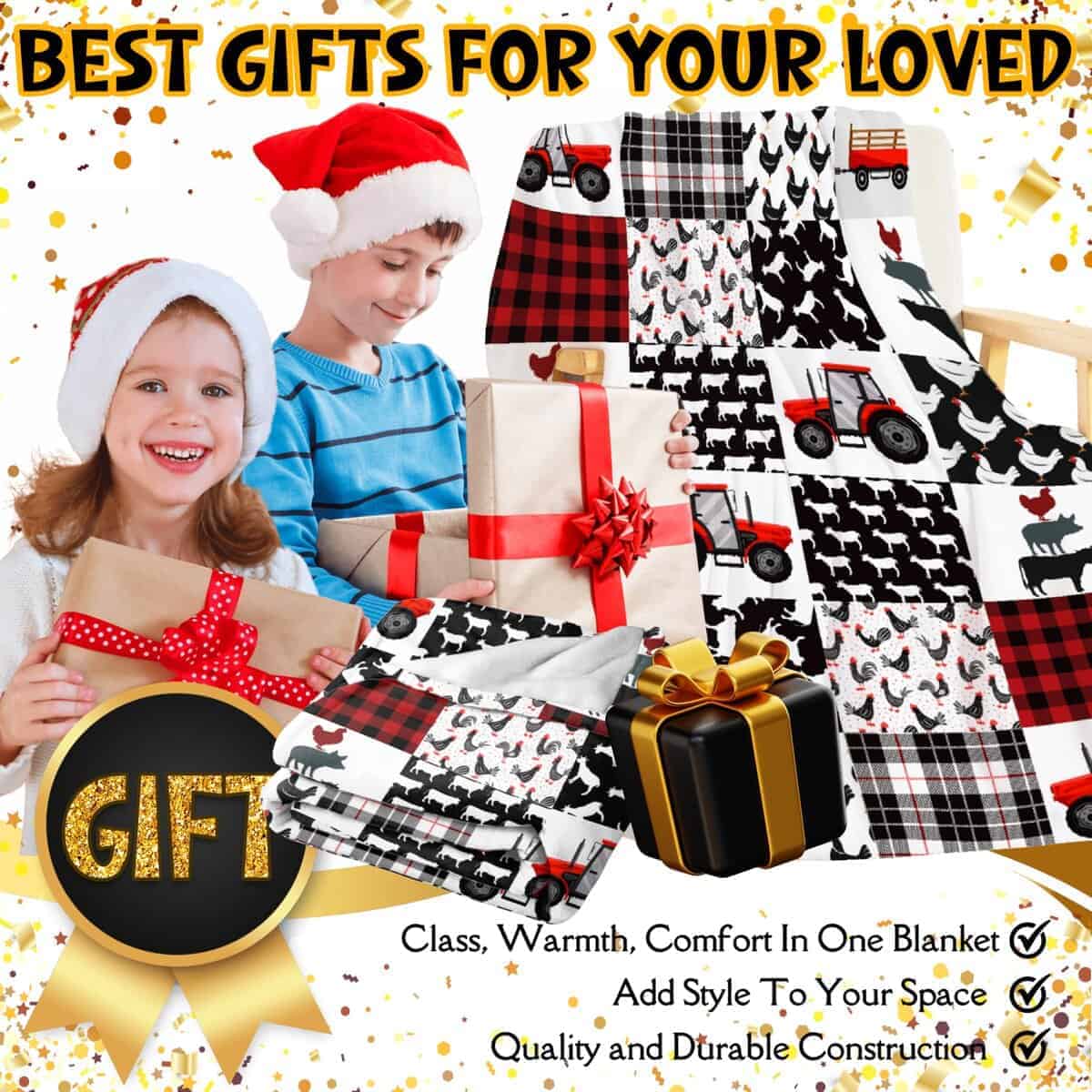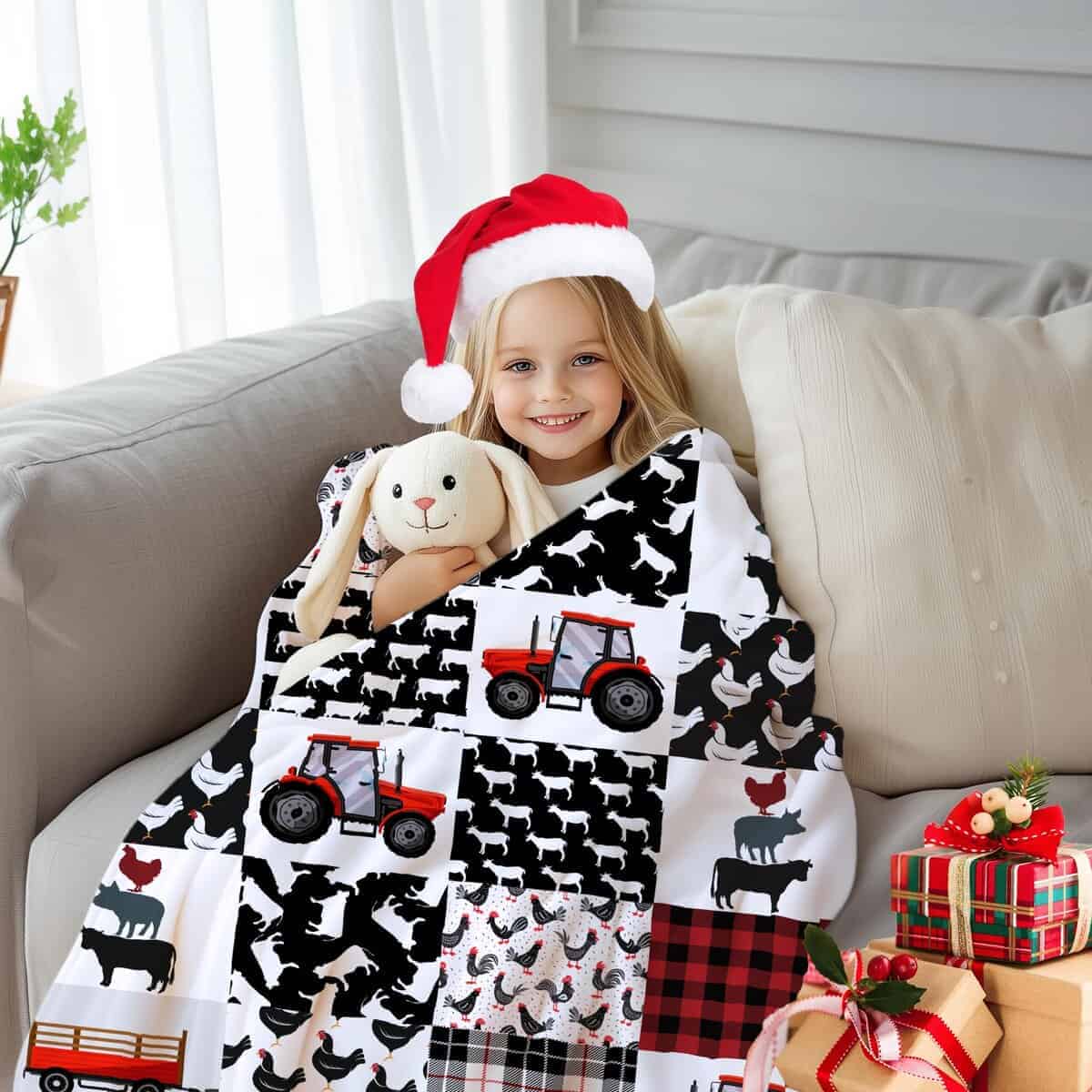 4. Mejor regalo Este lanzamiento de tractor de granja es un gran regalo para cualquier niño o niña que le gusten los tractores, las granjas, los animales en general, puede hacer que el destinatario sienta calor y amor. Cada manta estará bellamente envuelta, para sorprender a tus amigos o miembros de la familia en Navidad, Halloween, Acción de Gracias, Pascua, Día del Niño, Cumpleaños u otras ocasiones. Absolutamente les encantará.