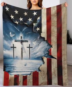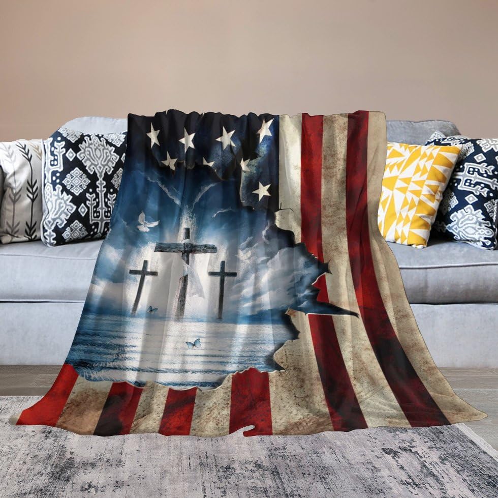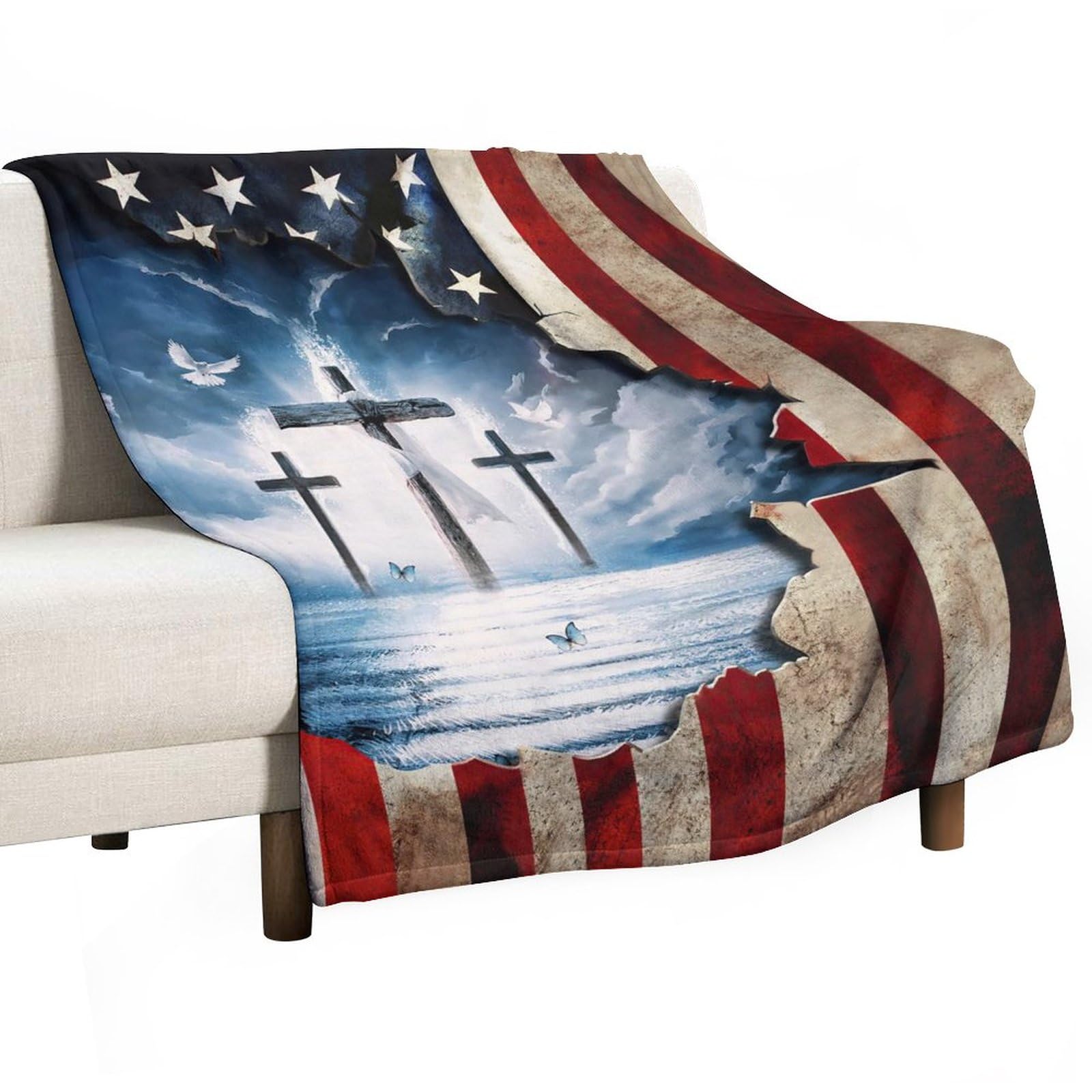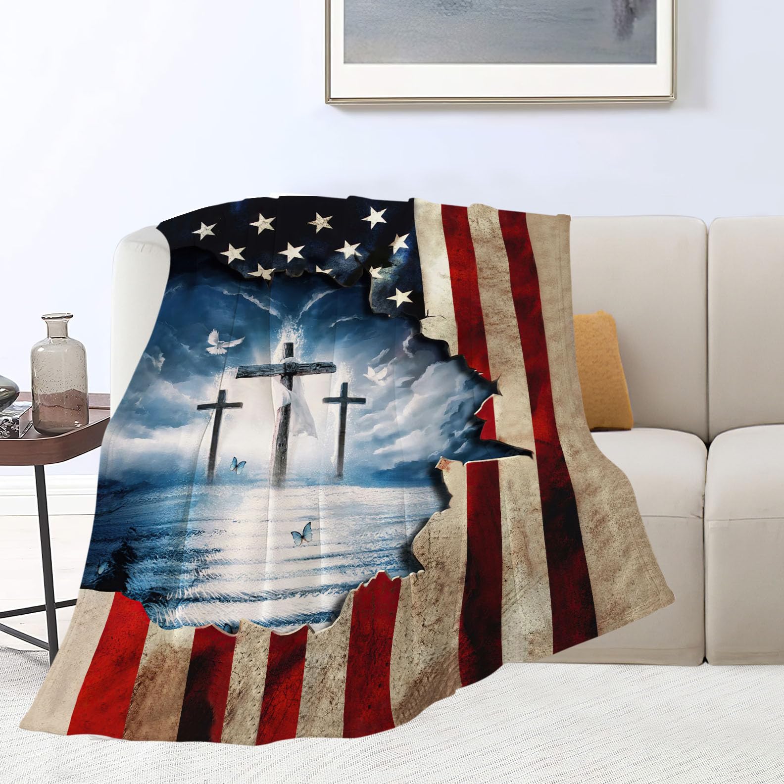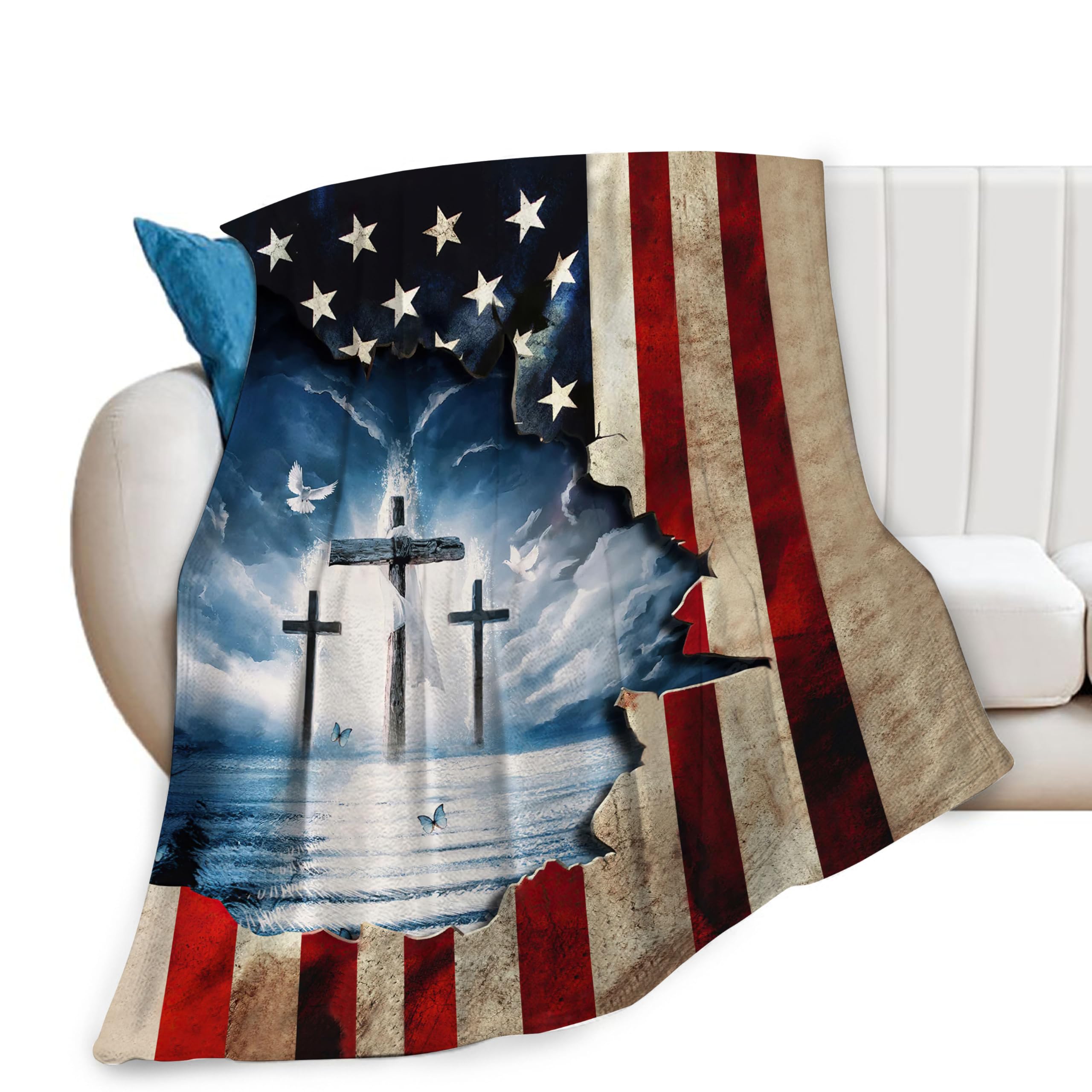 Manta de Cruz Cristiana con Bandera de EE. UU. Decoración