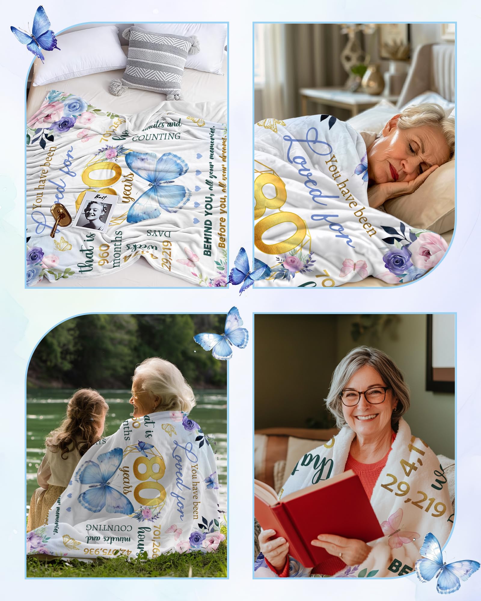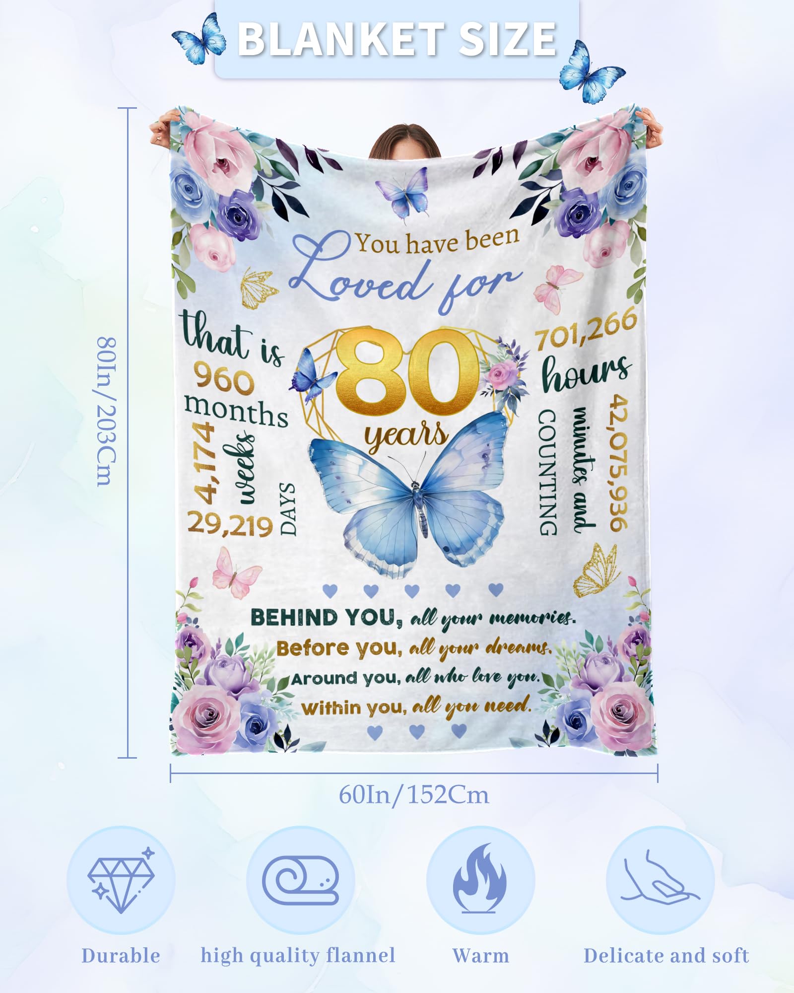 Manta de cumpleaños de mariposa para mujeres – Regalo de 80
